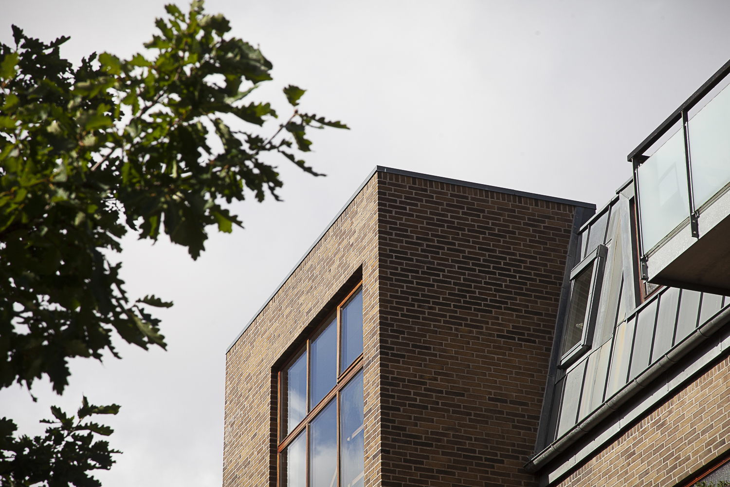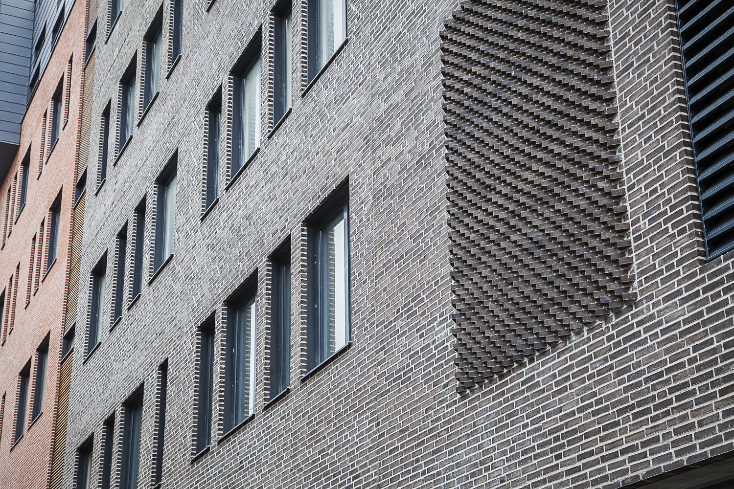 Budget och de omkringliggande befintliga och planerade kvarteren har självklart påverkat det arkitektoniska uttrycket. Men byggherren för projektet valde dock att satsa på tegel, "vilket jag blev väldigt glad över", säger Mikael. Det ger ett tidlöst uttryck som känns, inte bara för arkitekten utan även för gemene man.
