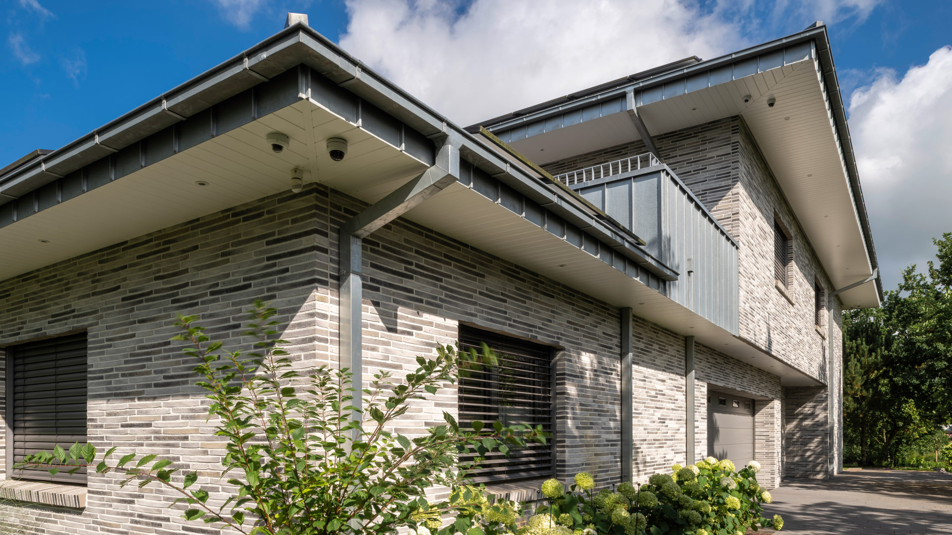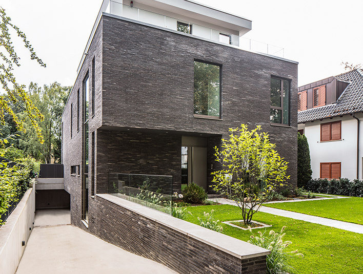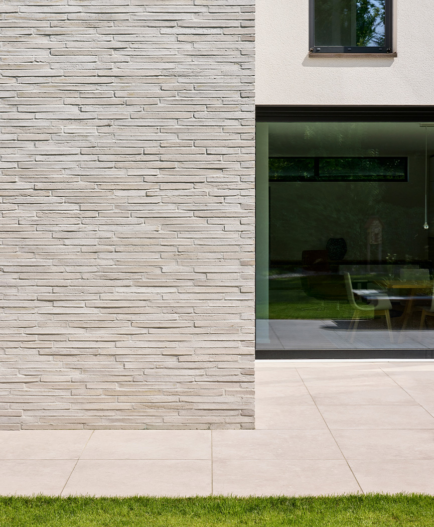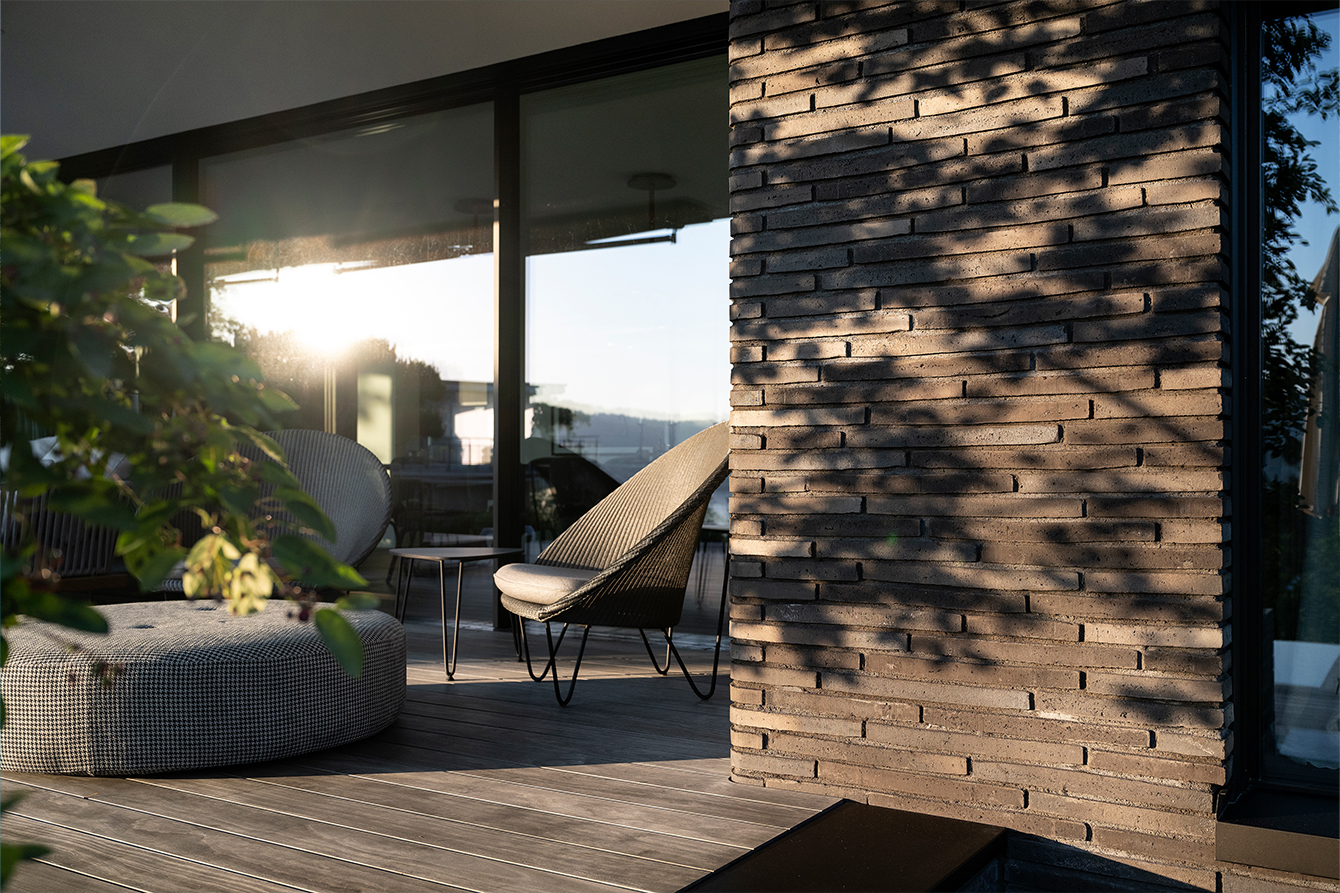 Med Villa K. har byggherrarna i Saarlouis, Tyskland, förverkligat en riktig dröm. Den omsorgsfullt utformade byggnaden utstrålar tidlös elegans, inte minst tack vare den avskalade designen. Den långformatiga tegelstenen ULTIMA RT153 användes i detta projekt även som beklädnad på en köksvägg inomhus.