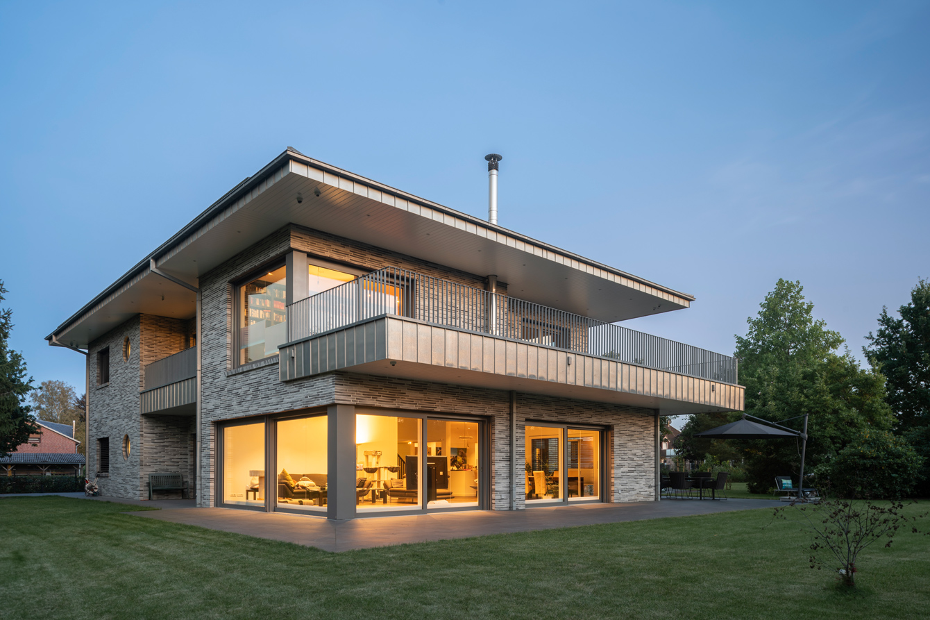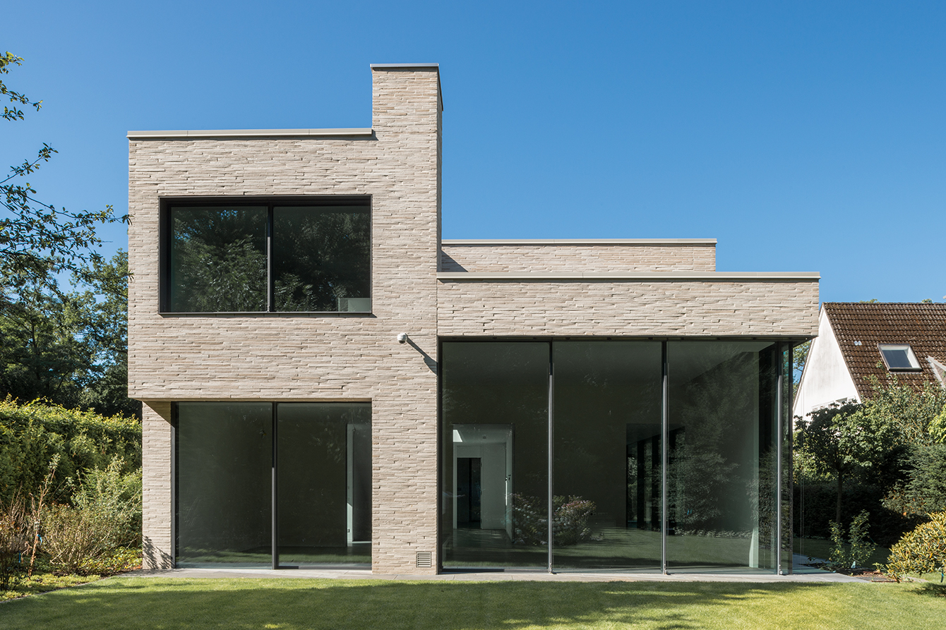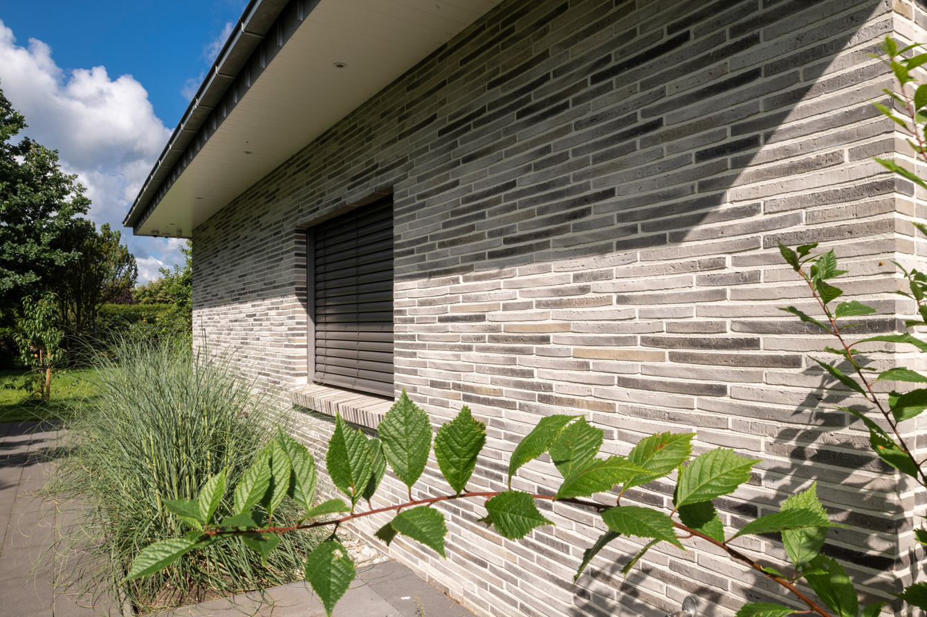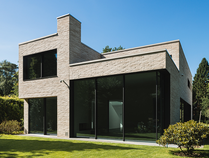 Med Villa K. har byggherrarna i Saarlouis, Tyskland, förverkligat en riktig dröm. Den omsorgsfullt utformade byggnaden utstrålar tidlös elegans, inte minst tack vare den avskalade designen. Den långformatiga tegelstenen ULTIMA RT153 användes i detta projekt även som beklädnad på en köksvägg inomhus.