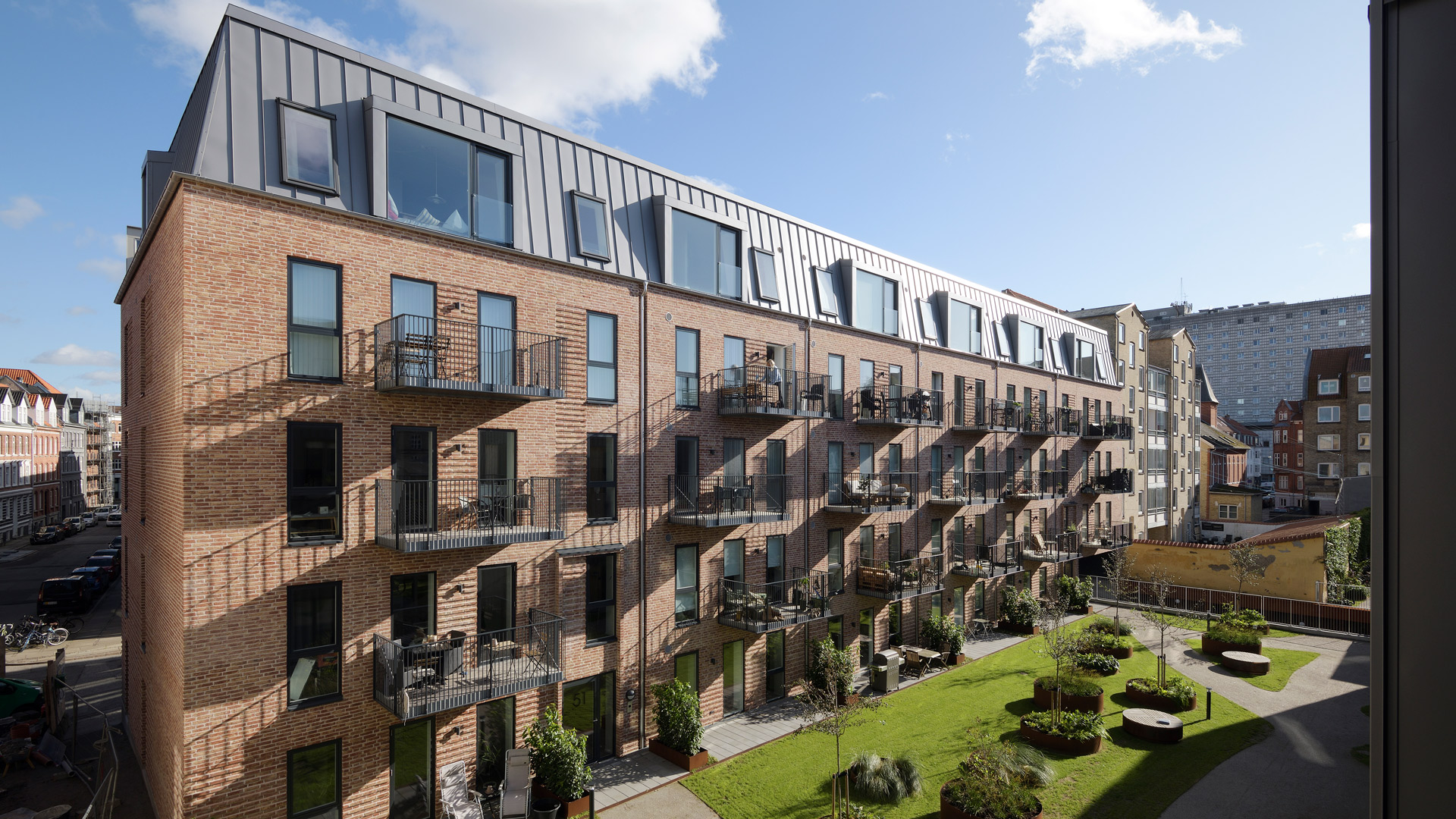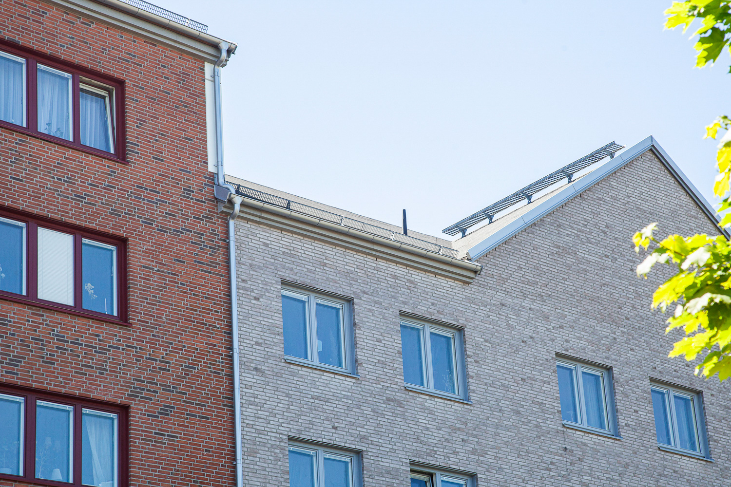 At the corner of Øgadekvarteret in Aalborg, this property in Bornholmsgade got a big-scale make-over in accordance with Danish building traditions. 34 new dormers adorn this beautiful tiled red roof ridge made in the Danish roofing classic: Højslev's wing roof in a small Danish format.