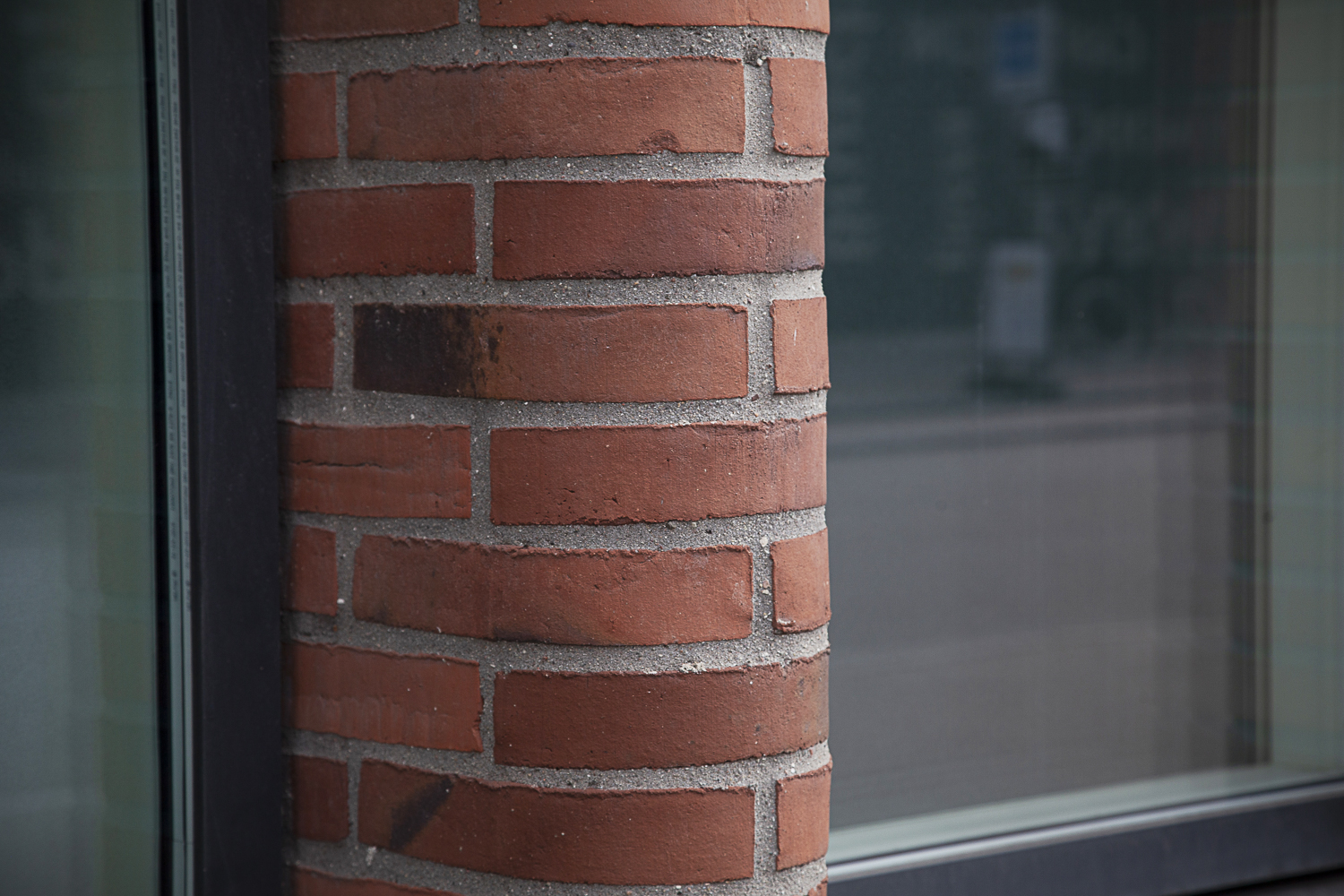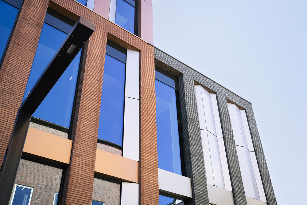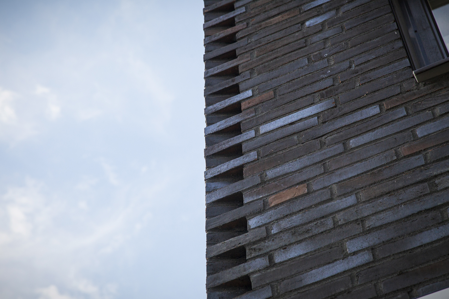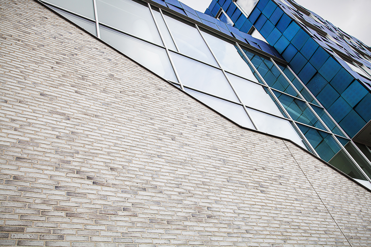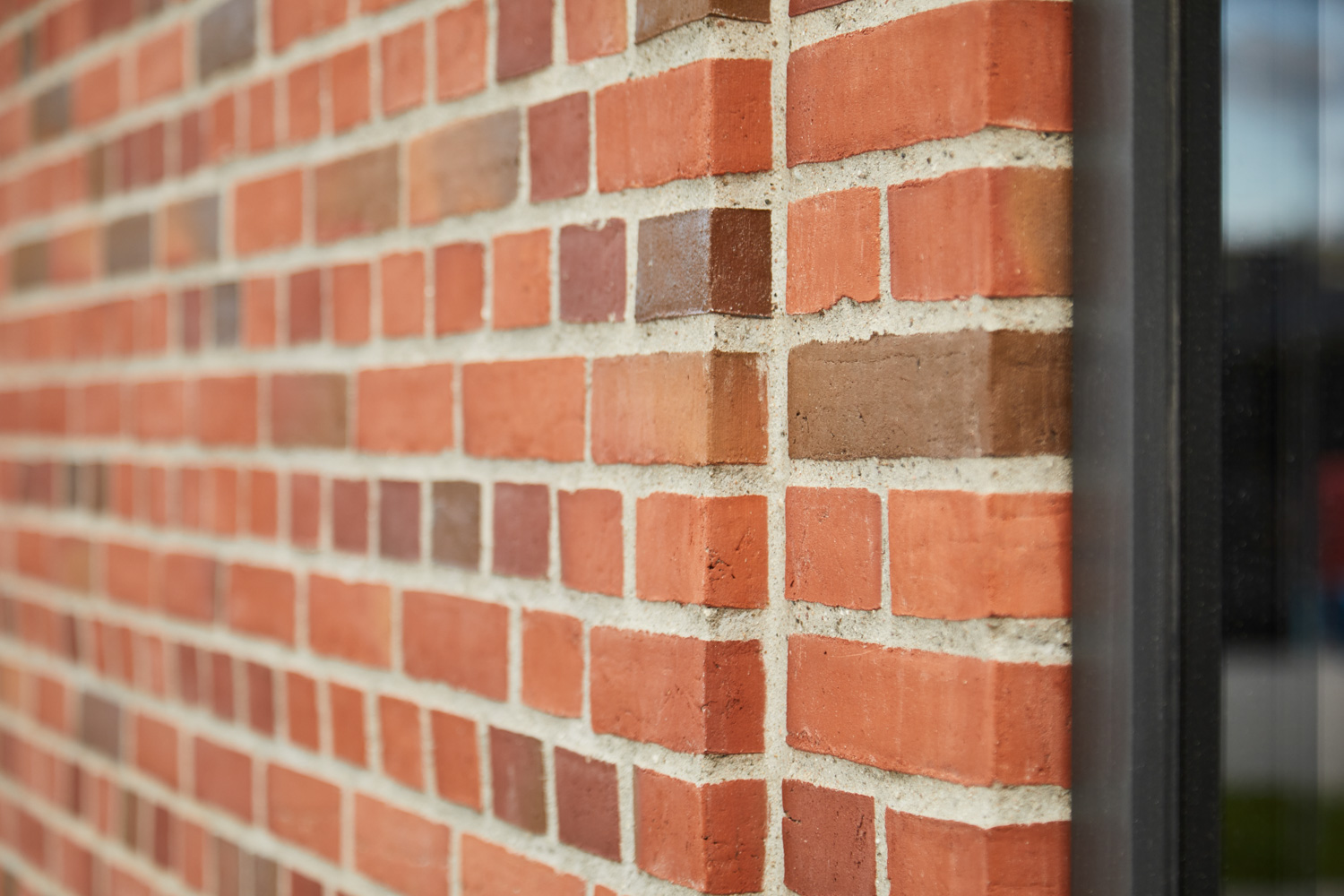 A modern campus building for the students where the special technique to apply the dark grey mortar gives an exciting expression. The glass roof accentuates the modernity.