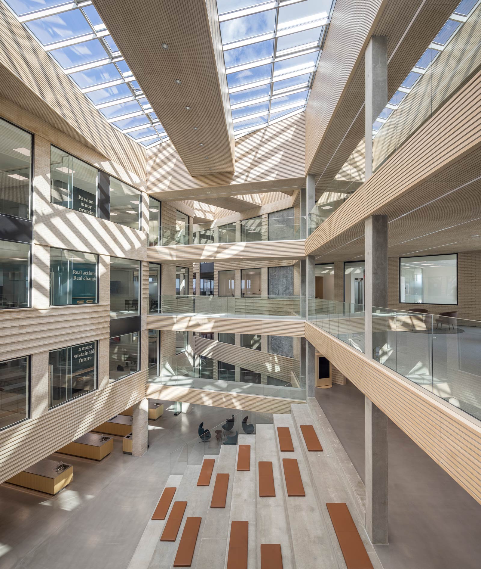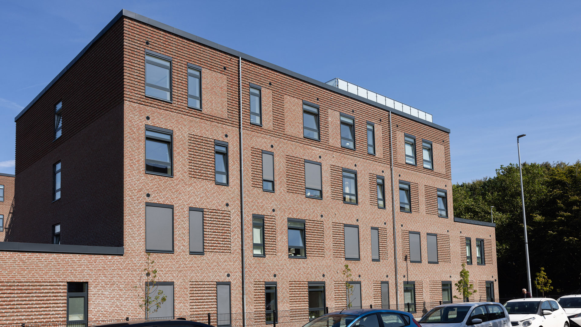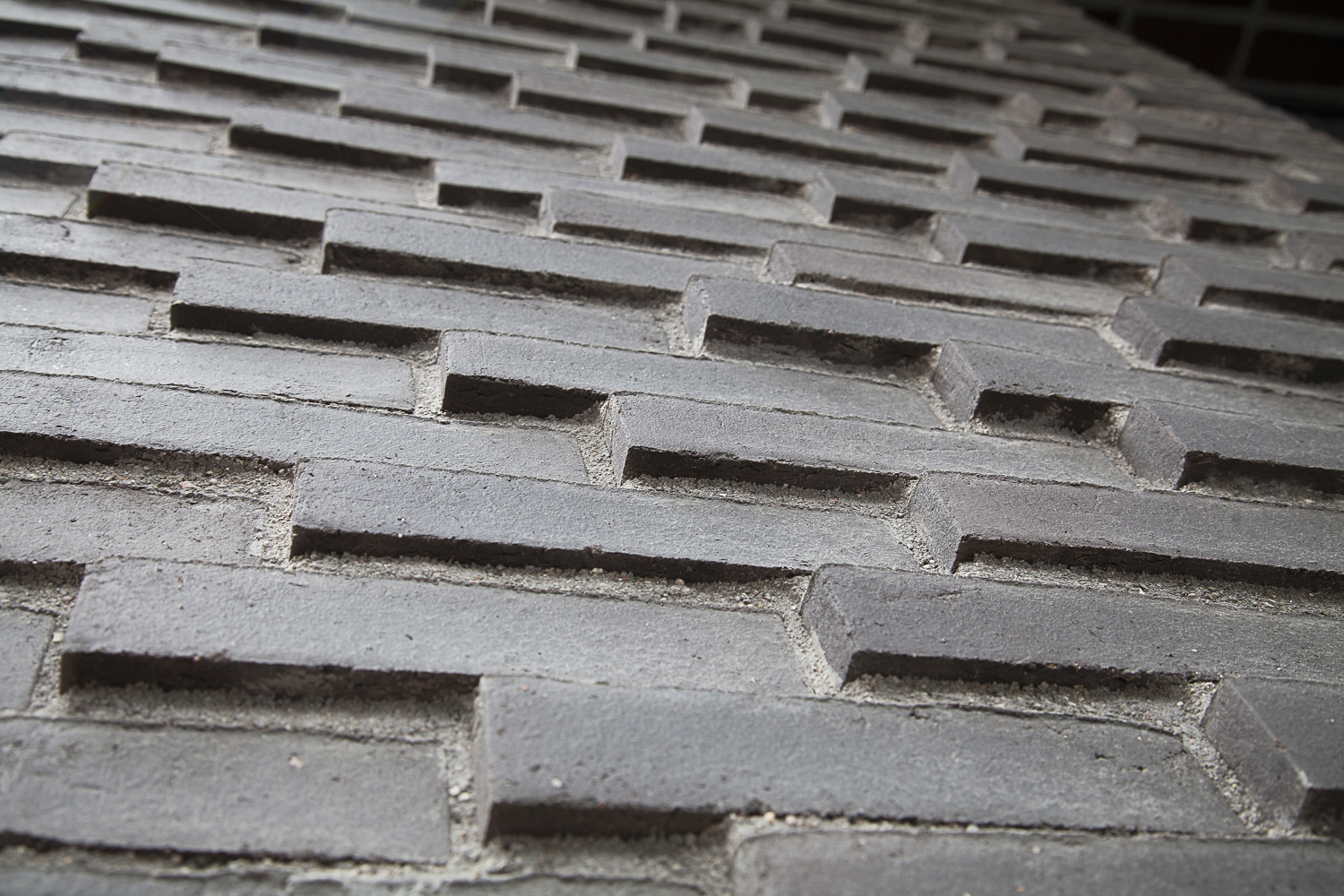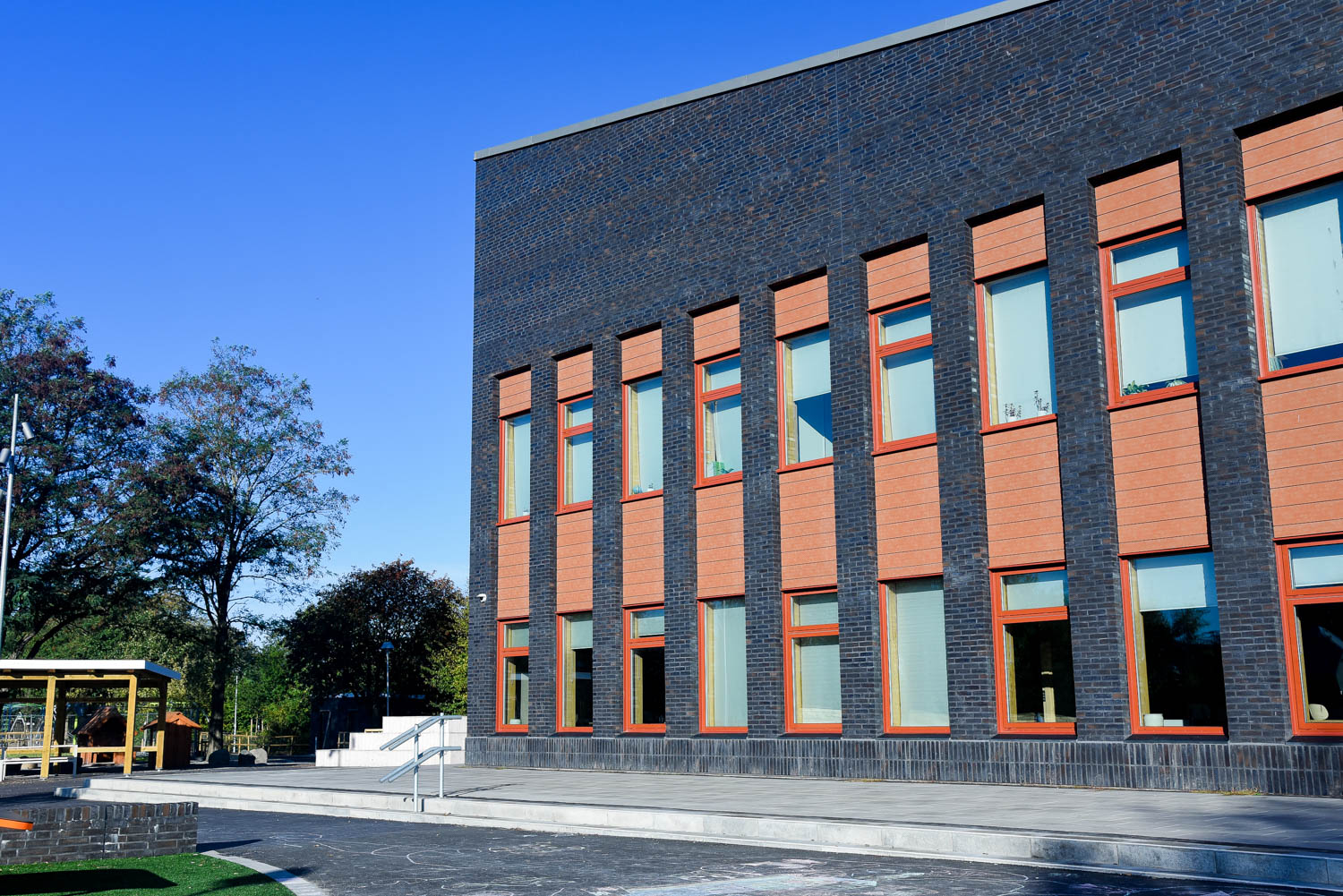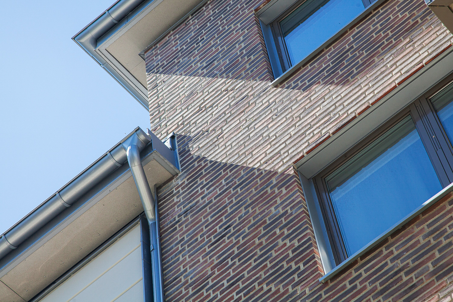 A modern campus building for the students where the special technique to apply the dark grey mortar gives an exciting expression. The glass roof accentuates the modernity.