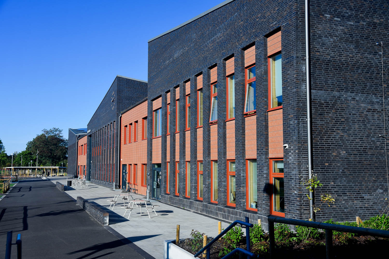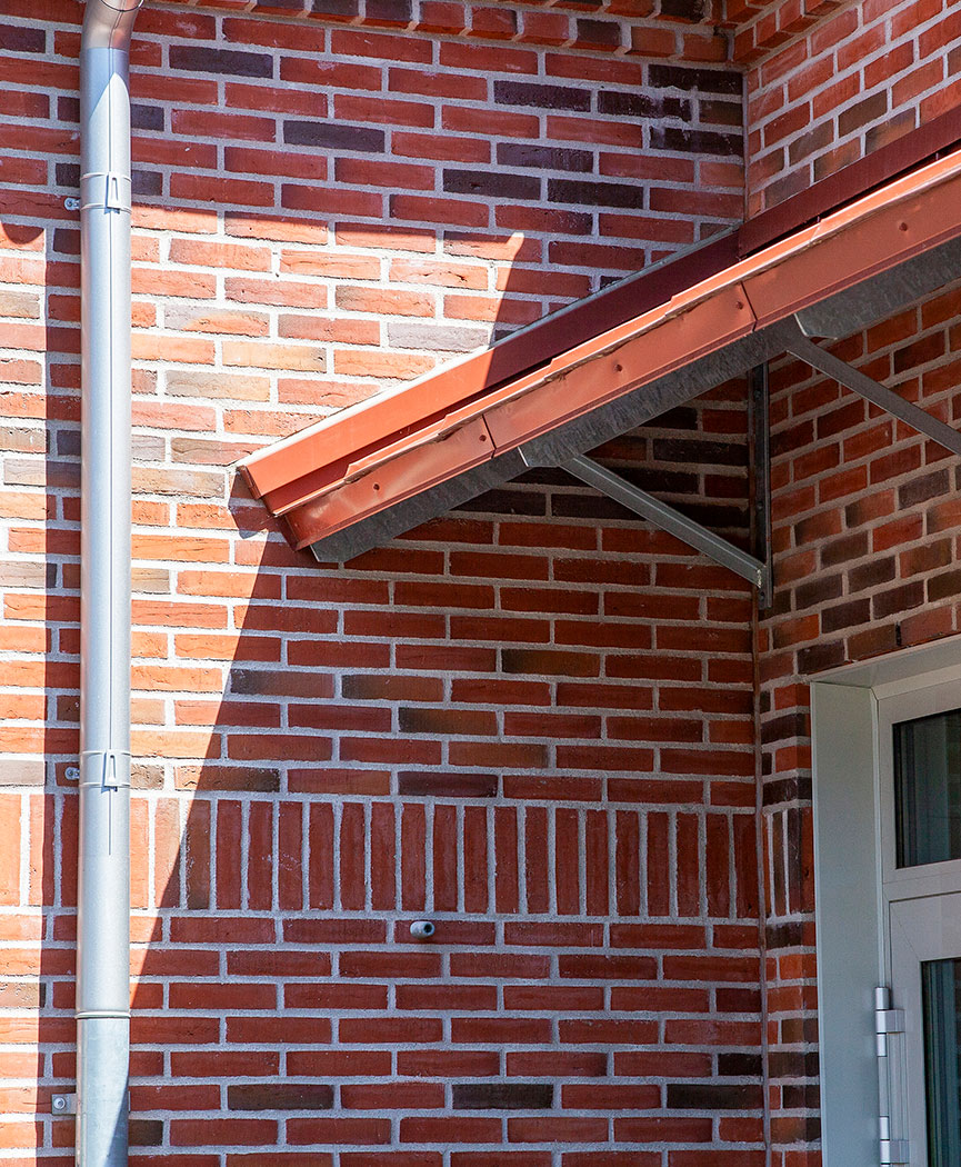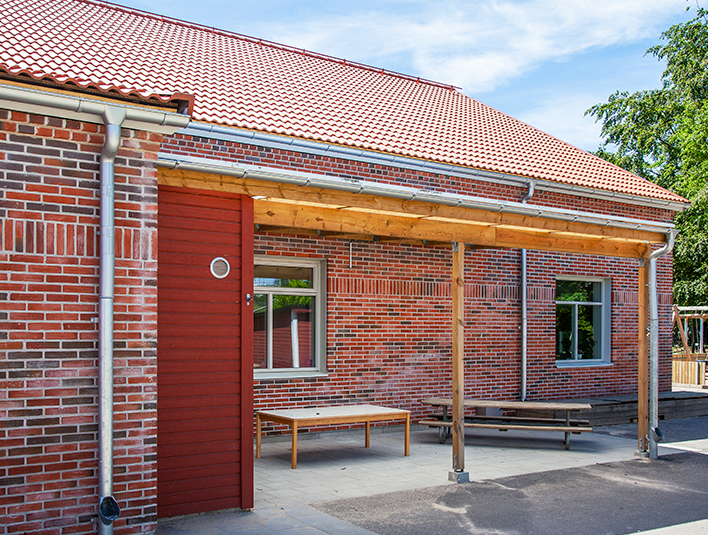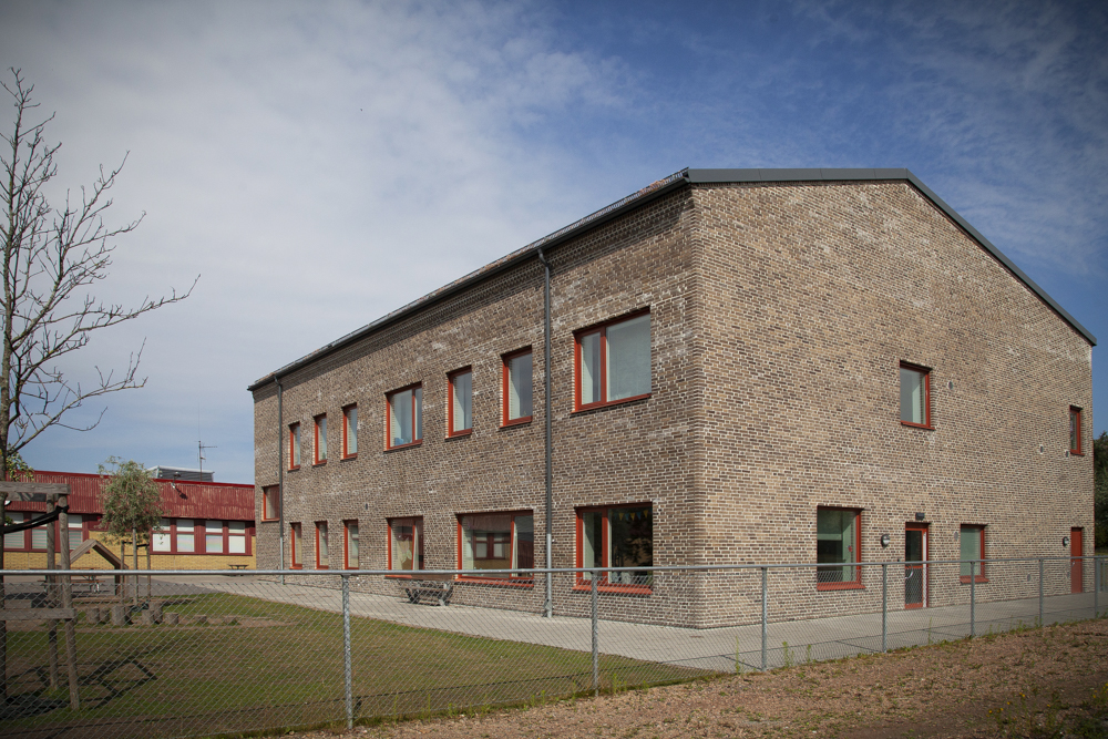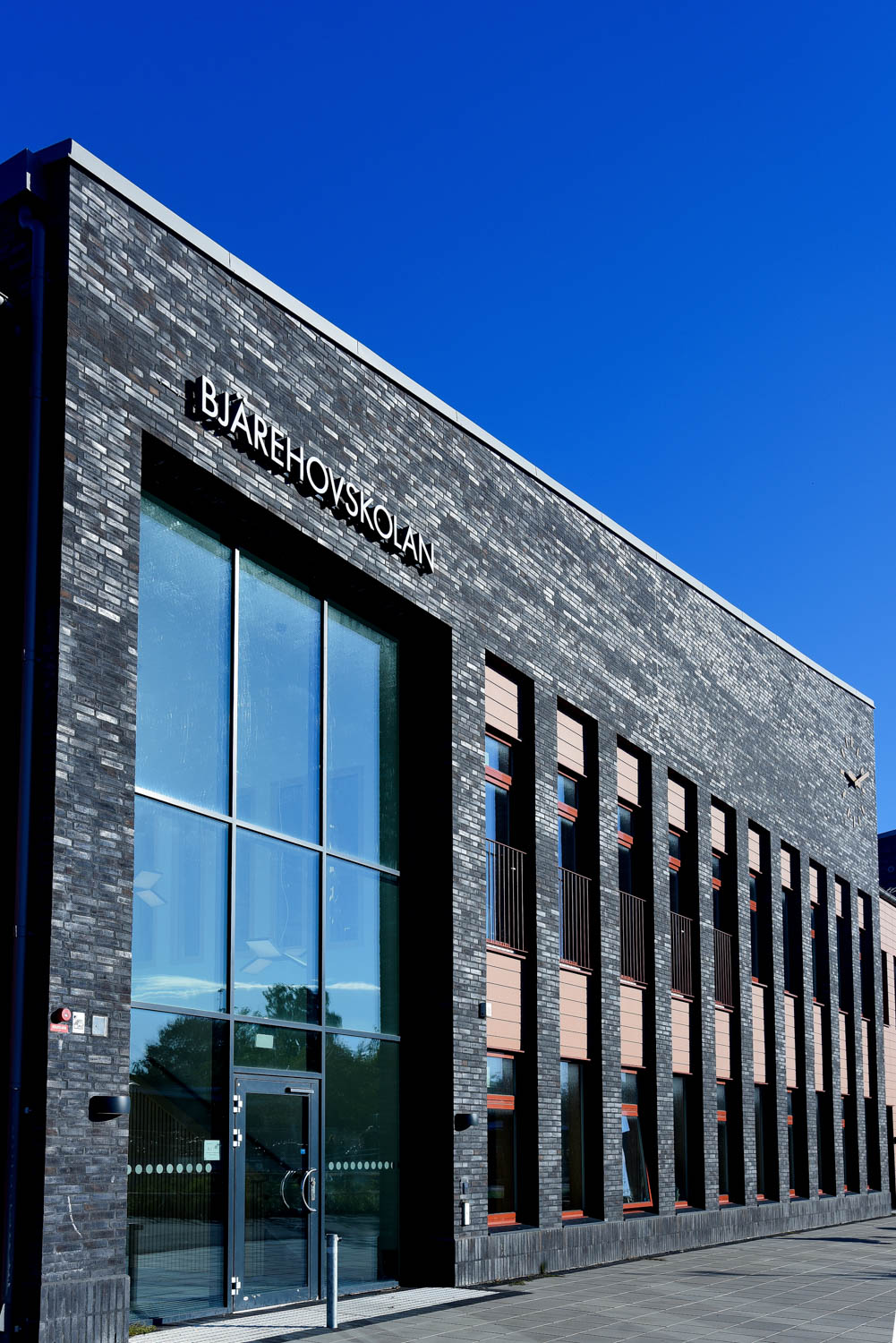 Tegel har varit ett självklart val. Bjärehovsskolan är belägen i Bjärred, och det finns redan mycket tegel på tomten och i de omgivande skolbyggnaderna. Det mörka teglet gör sig dessutom fint till den grönskande skolgården som kommer komma upp inom några år.