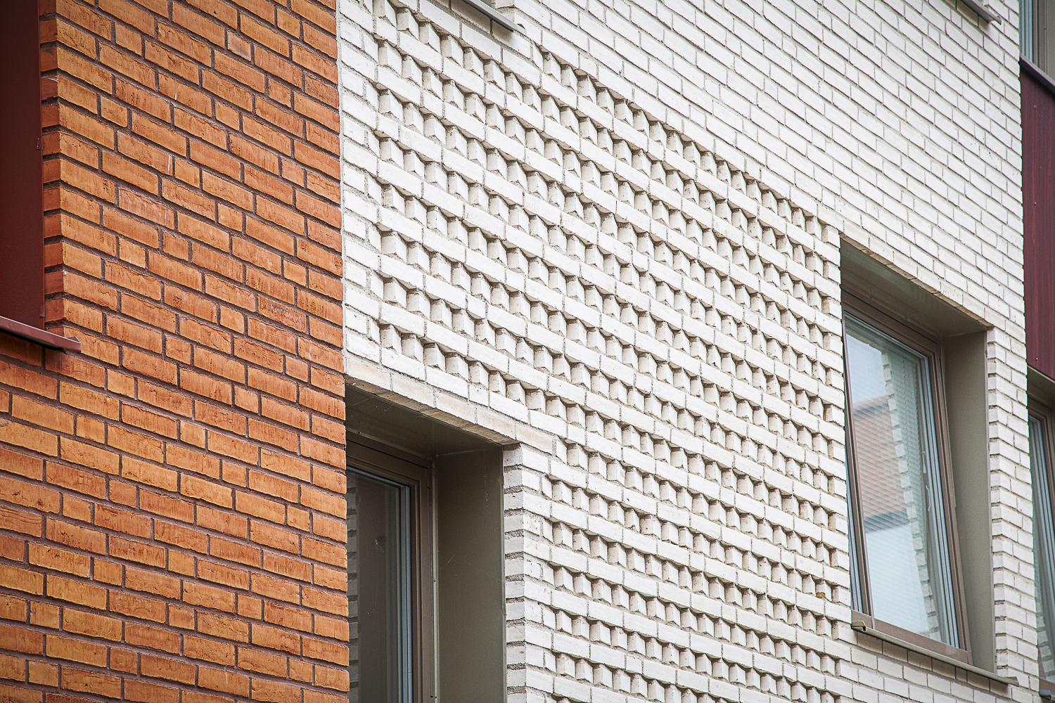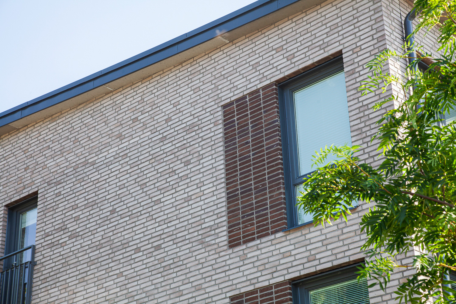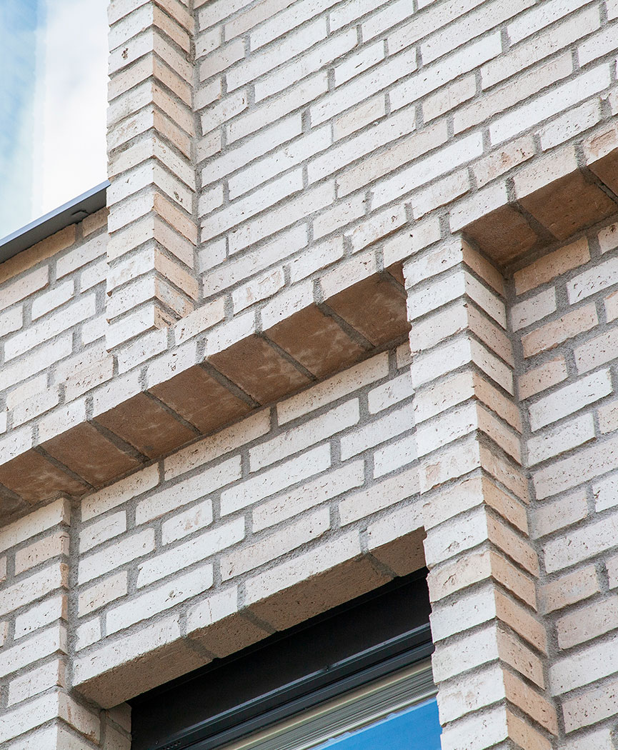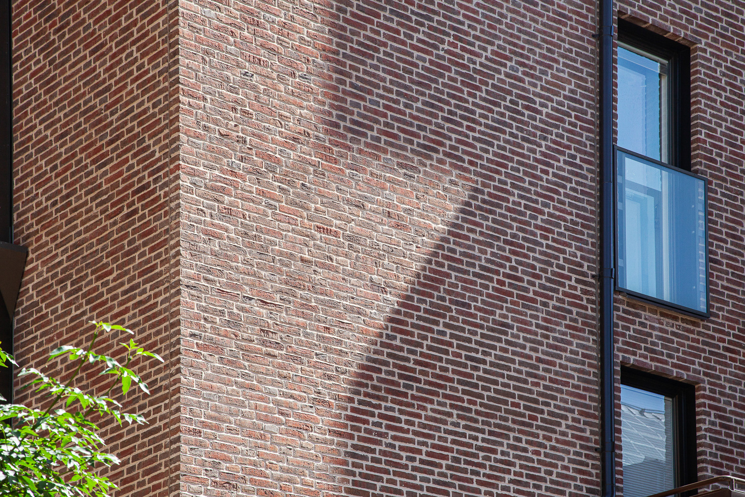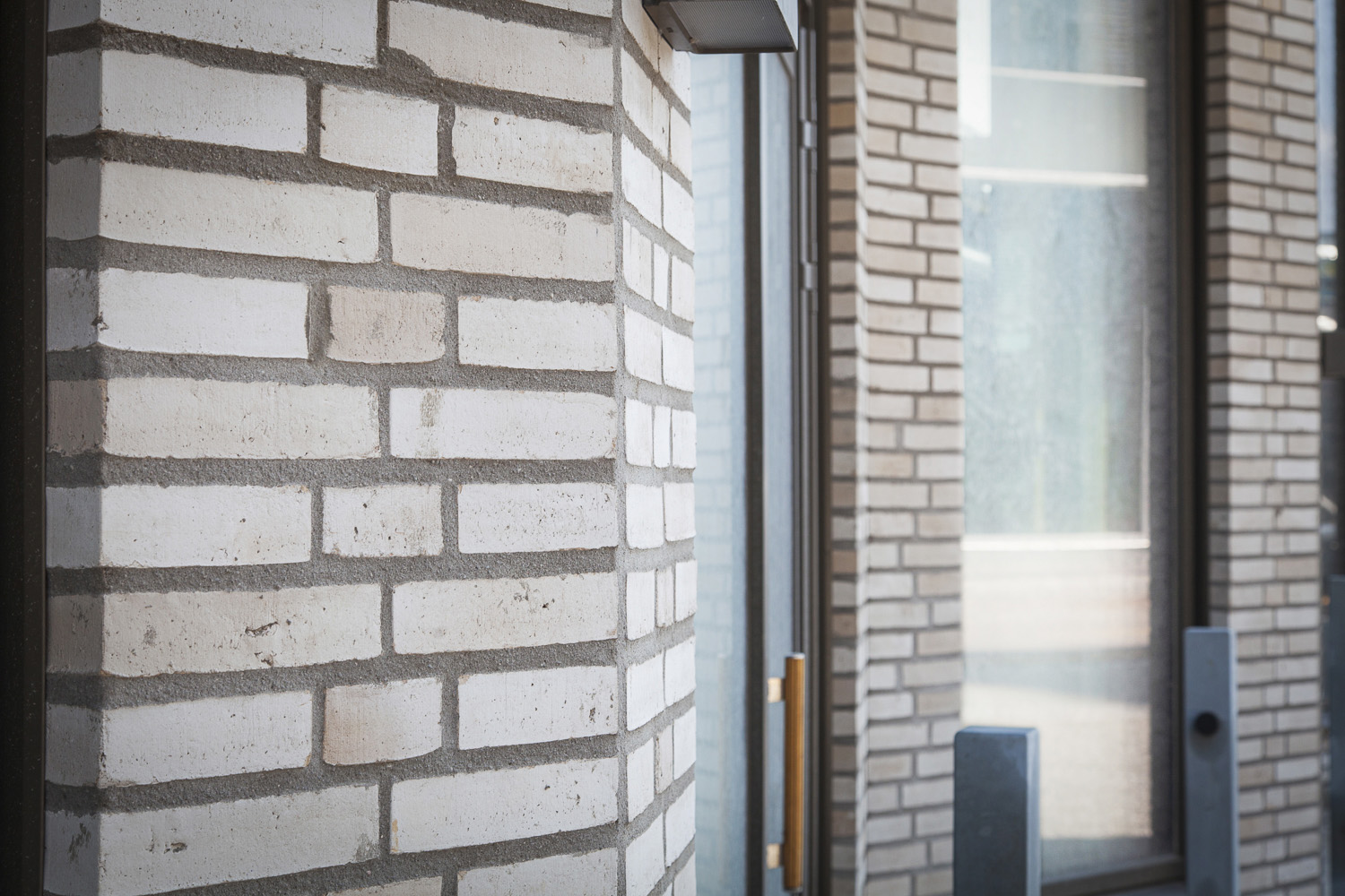 The centre of the project is a courtyard surrounded by five townhouses. Each house has a unique bond and technique, but all masonry is based on RT 154 and RT 554. The use of identical bricks provides a common thread across the five townhouses. As such, they are alike but unique.