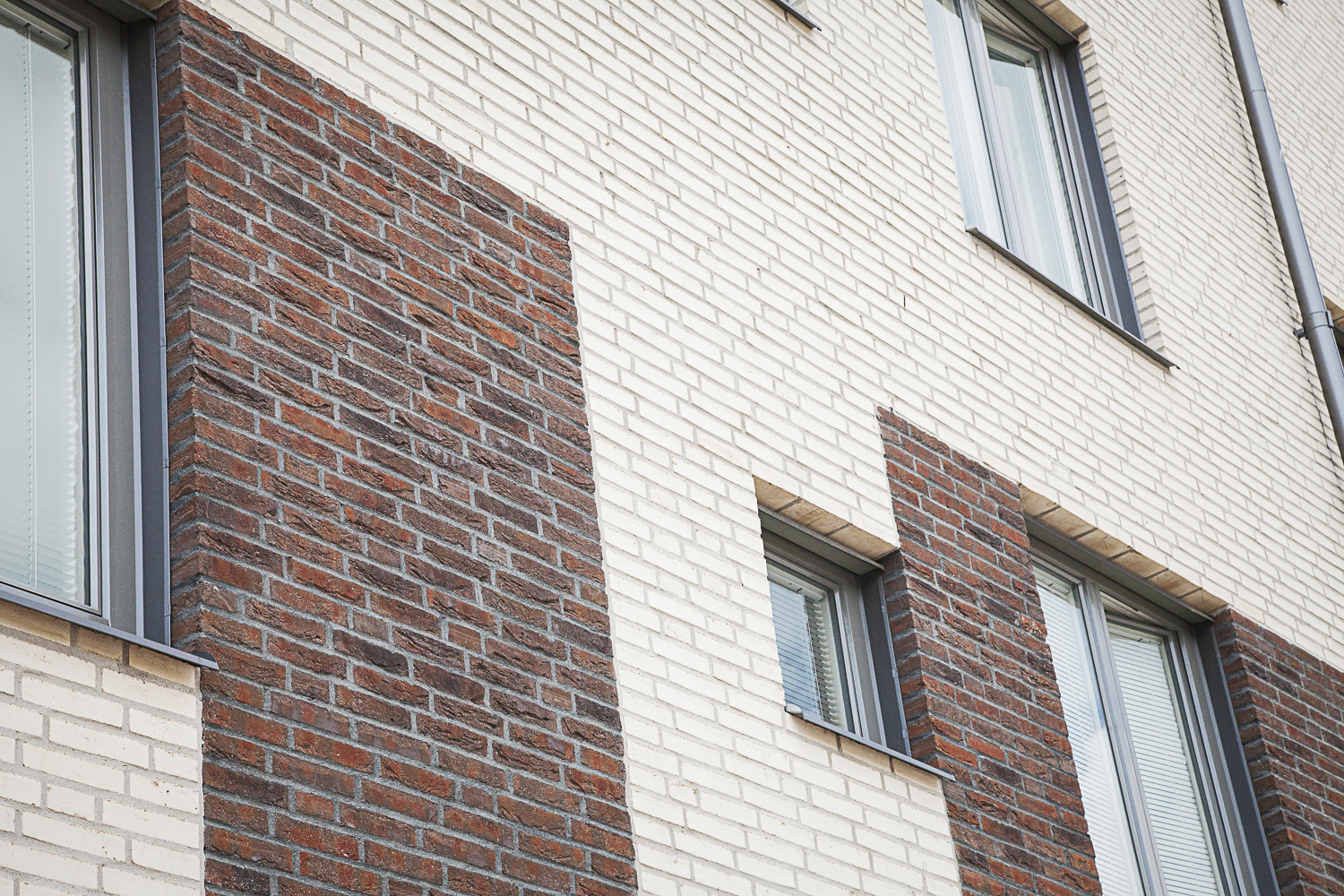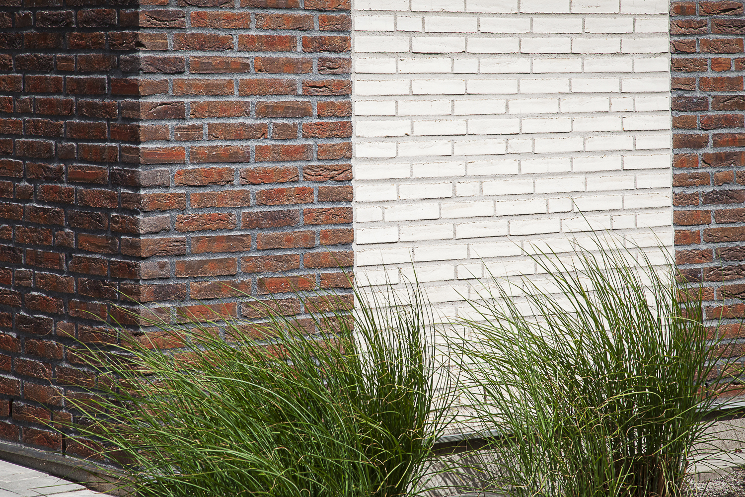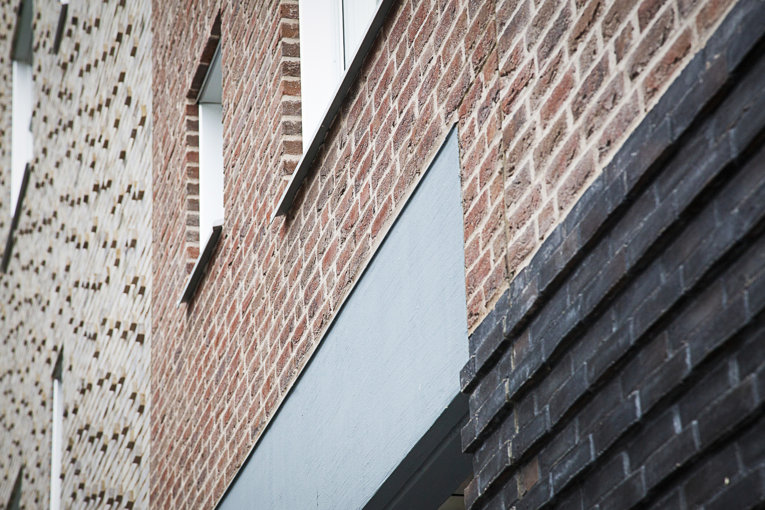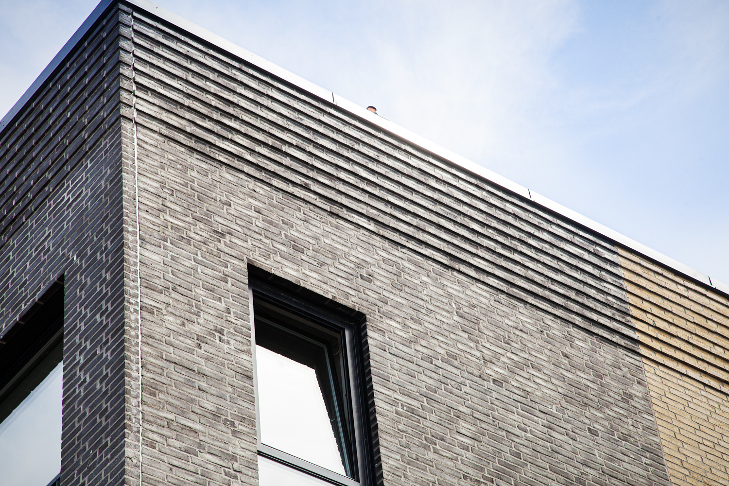 The centre of the project is a courtyard surrounded by five townhouses. Each house has a unique bond and technique, but all masonry is based on RT 154 and RT 554. The use of identical bricks provides a common thread across the five townhouses. As such, they are alike but unique.
