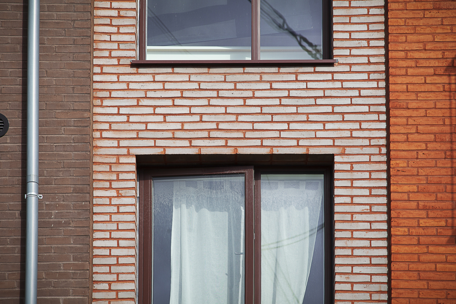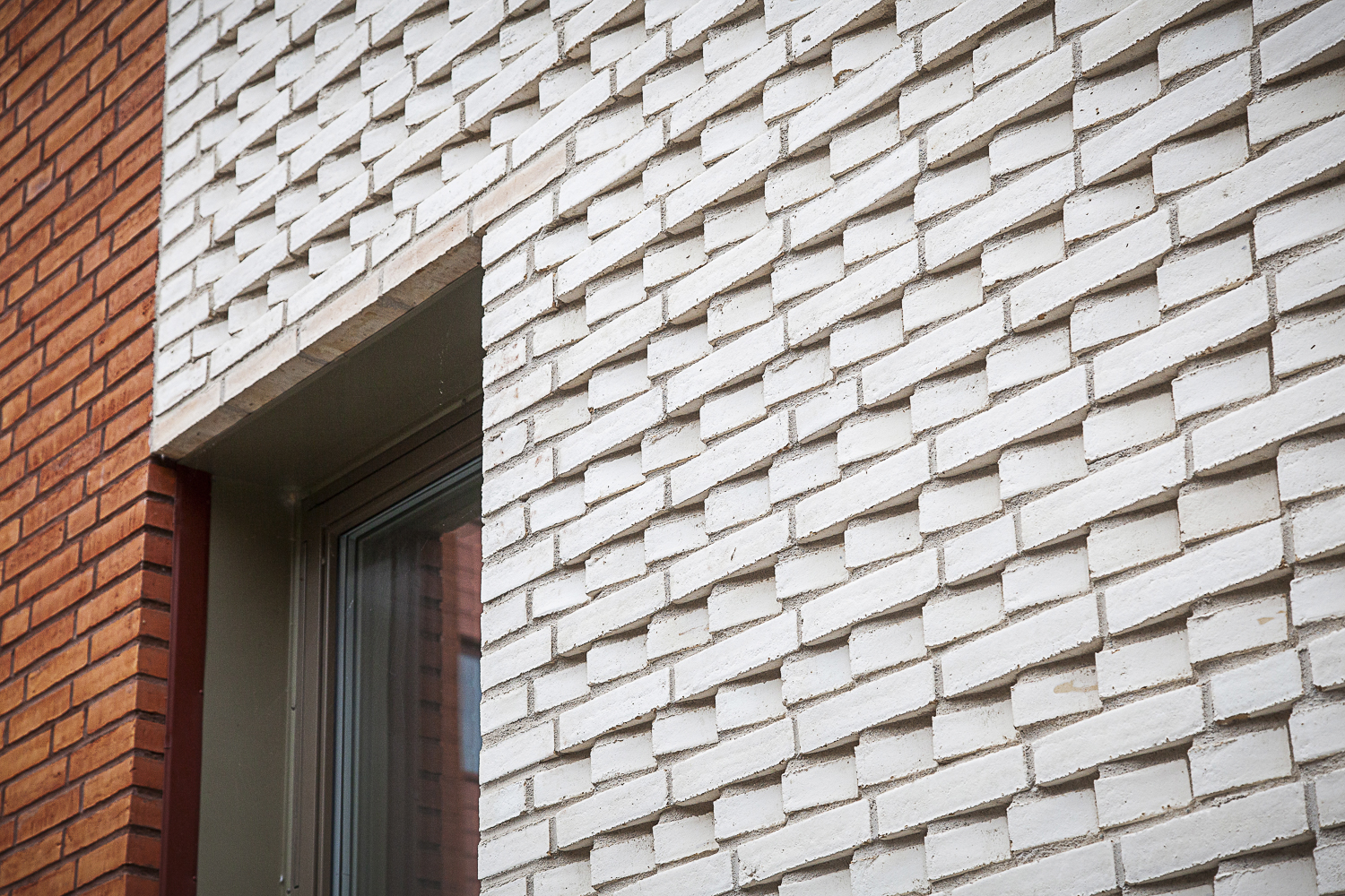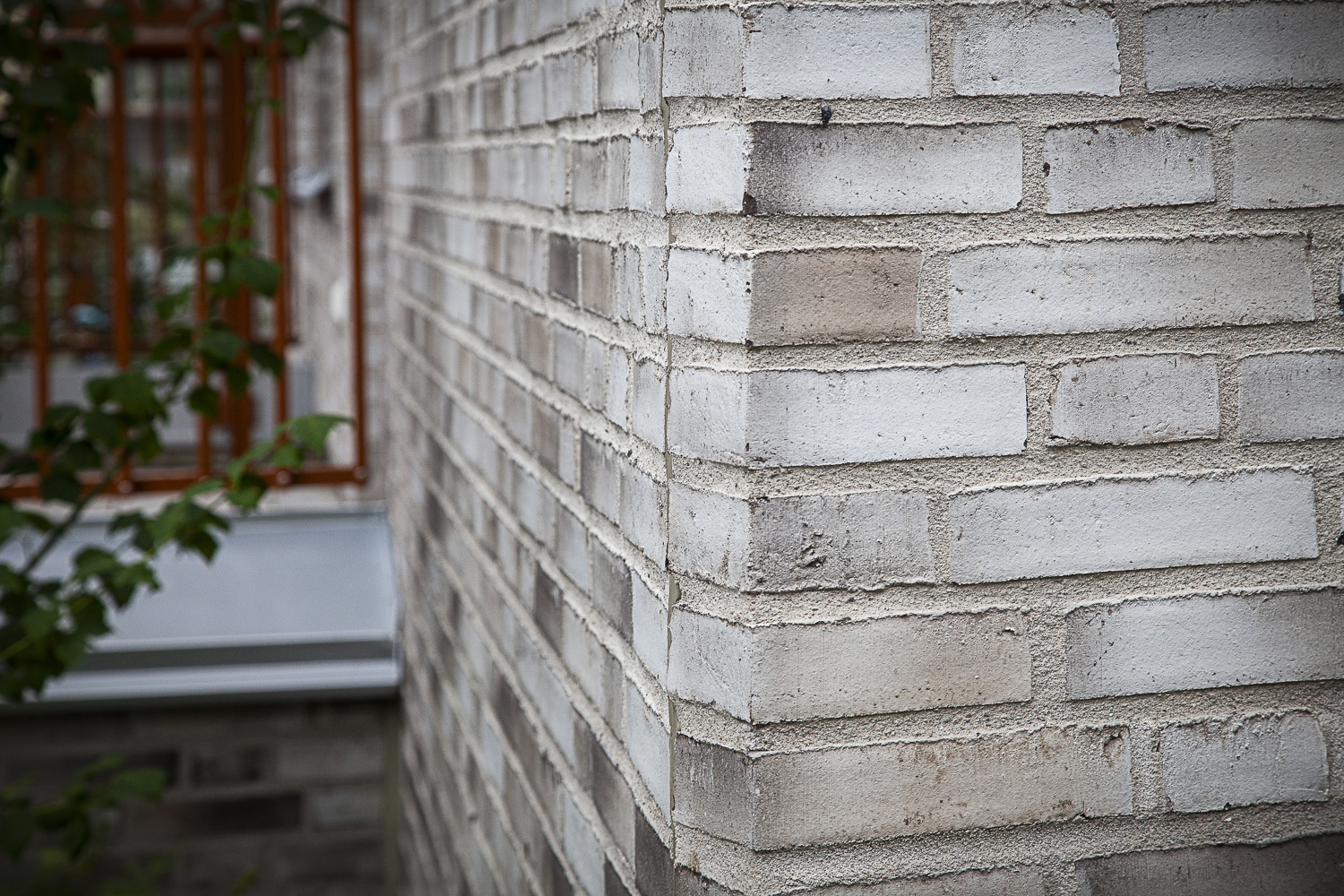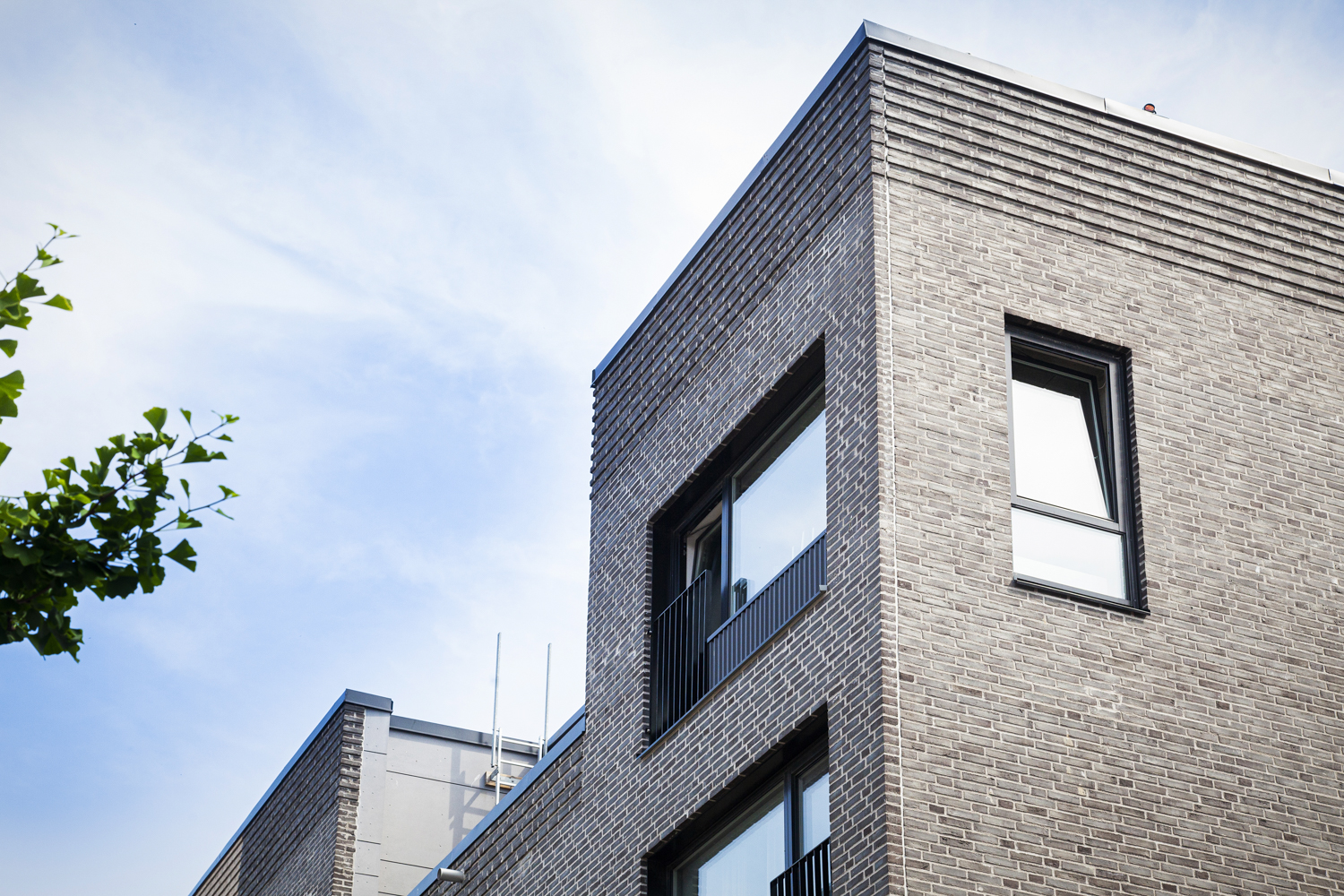 The centre of the project is a courtyard surrounded by five townhouses. Each house has a unique bond and technique, but all masonry is based on RT 154 and RT 554. The use of identical bricks provides a common thread across the five townhouses. As such, they are alike but unique.