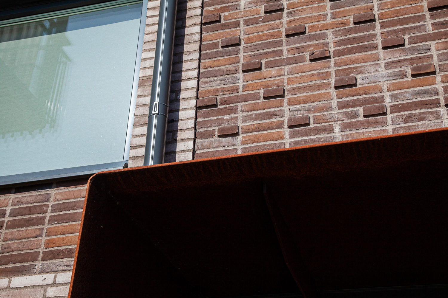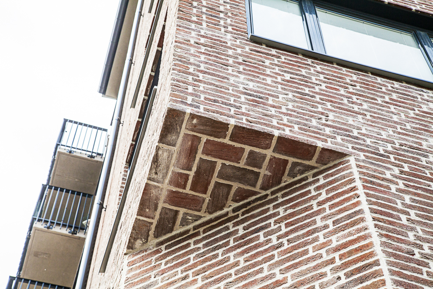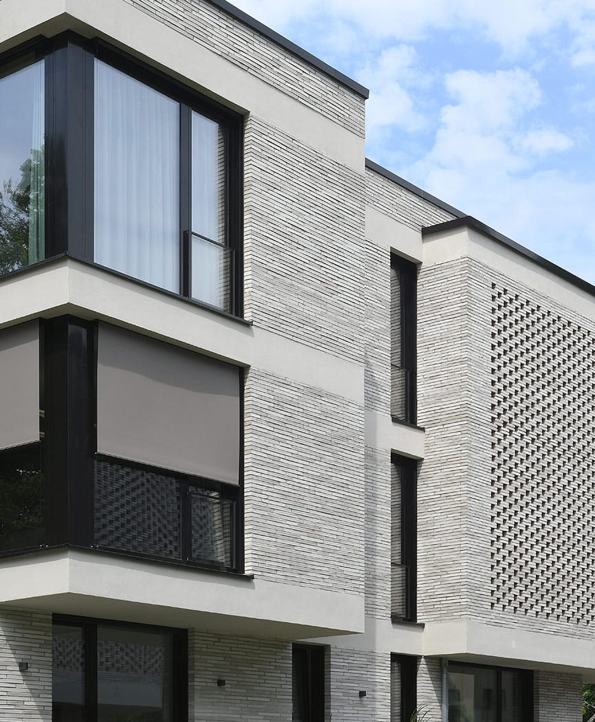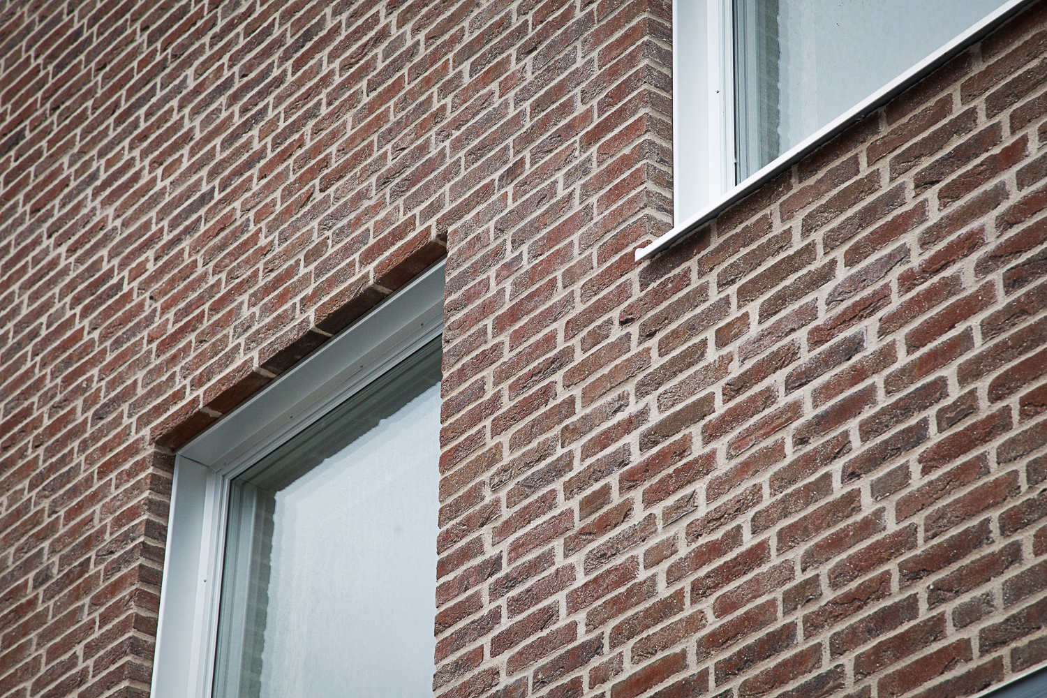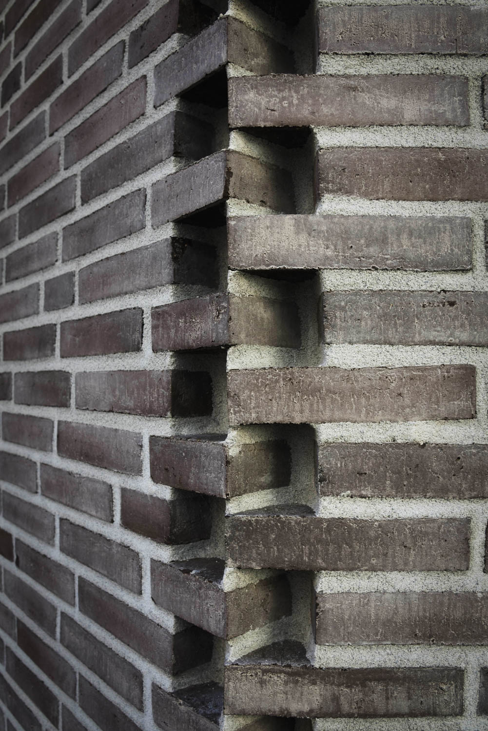 The centre of the project is a courtyard surrounded by five townhouses. Each house has a unique bond and technique, but all masonry is based on RT 154 and RT 554. The use of identical bricks provides a common thread across the five townhouses. As such, they are alike but unique.