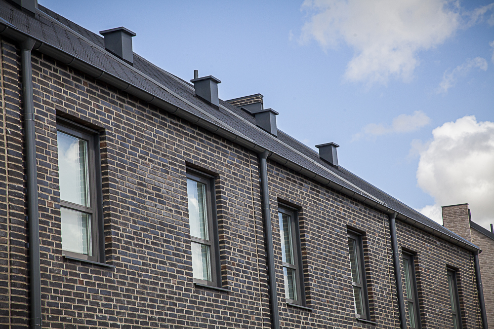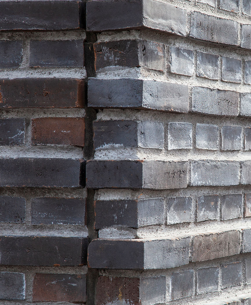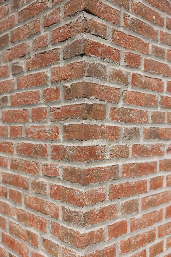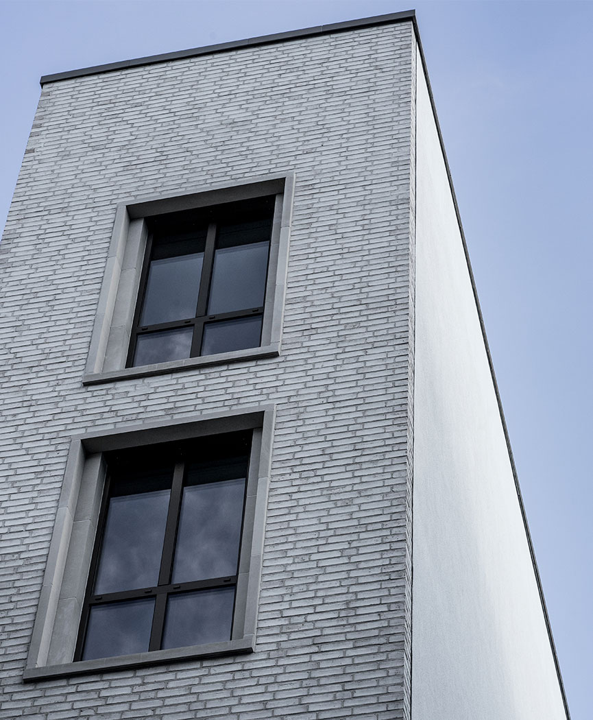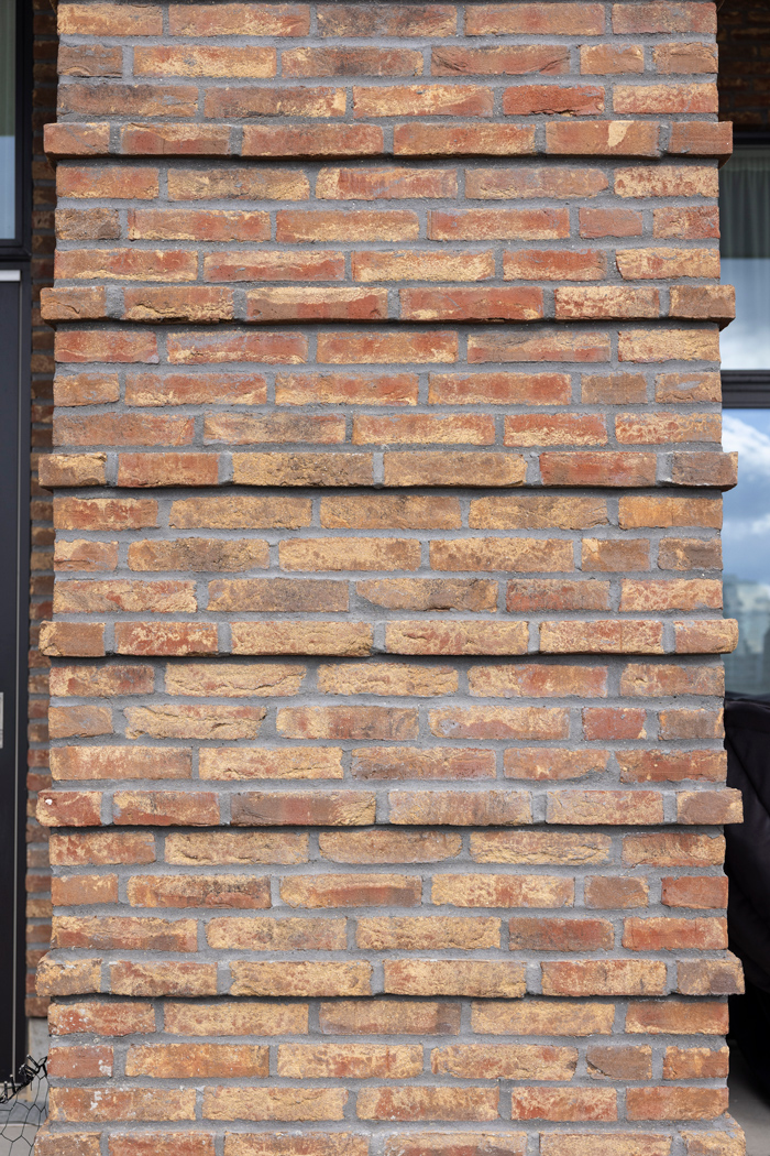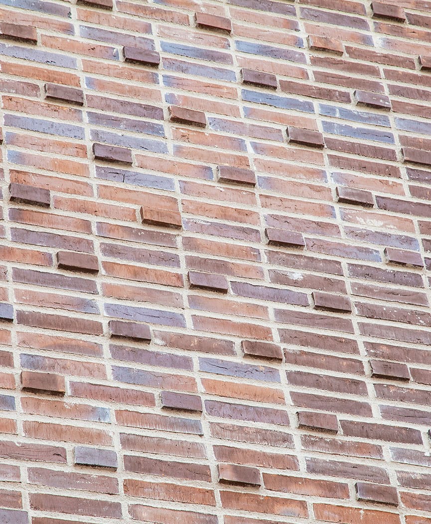 The centre of the project is a courtyard surrounded by five townhouses. Each house has a unique bond and technique, but all masonry is based on RT 154 and RT 554. The use of identical bricks provides a common thread across the five townhouses. As such, they are alike but unique.