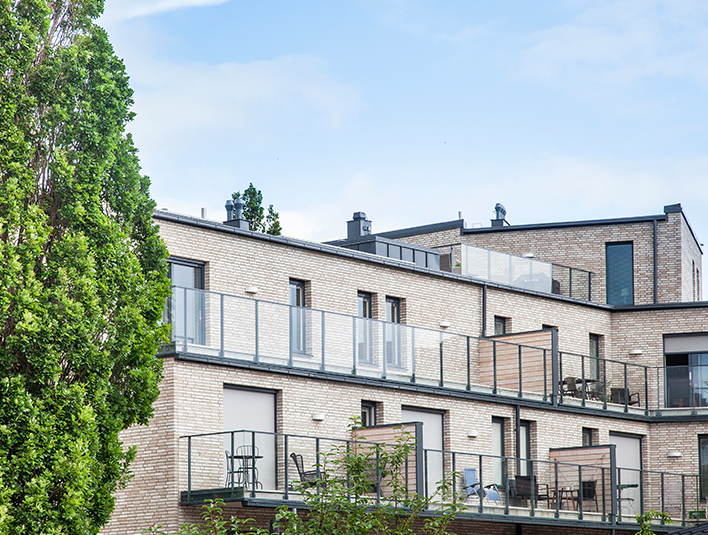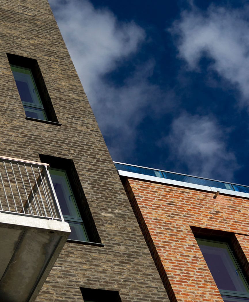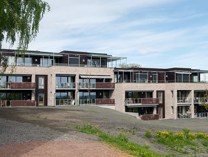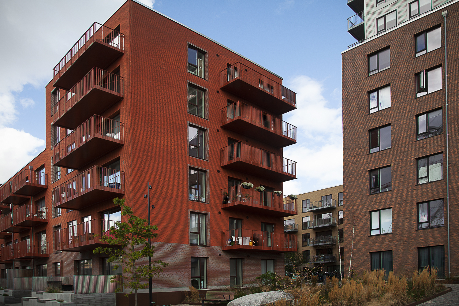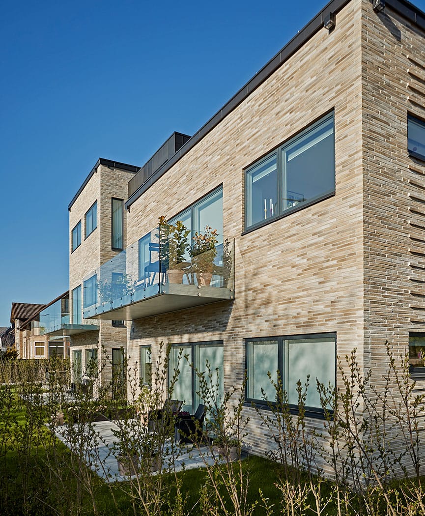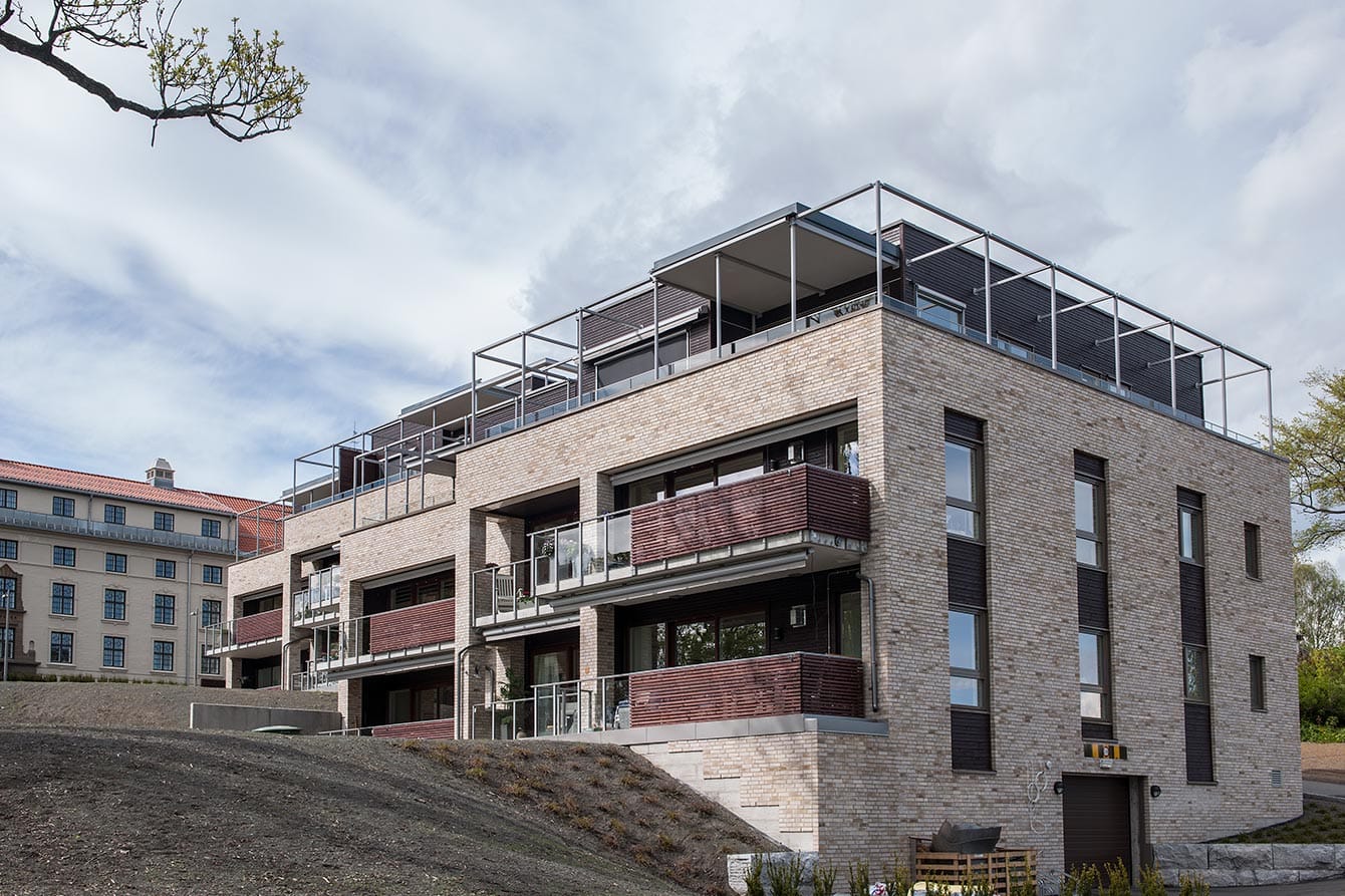 Choosing brick as a facade material has many advantages. We think that a brick facade gives a feeling that the houses are solid and lavish and that in turn gives a social sustainability. You want to both live in and preserve a solid building for future generations. In our Scandinavian climate, with its colour scale, which during large parts of the year goes in grey, brick is also a good choice of facade material as it with its colour scales blends well into the landscape and counteracts the "grey ash". This is very difficult to create with other facade materials such as concrete or sheet metal. Brick also becomes more beautiful over the years with its patina and lively expression, which it can take a hundred years to achieve.