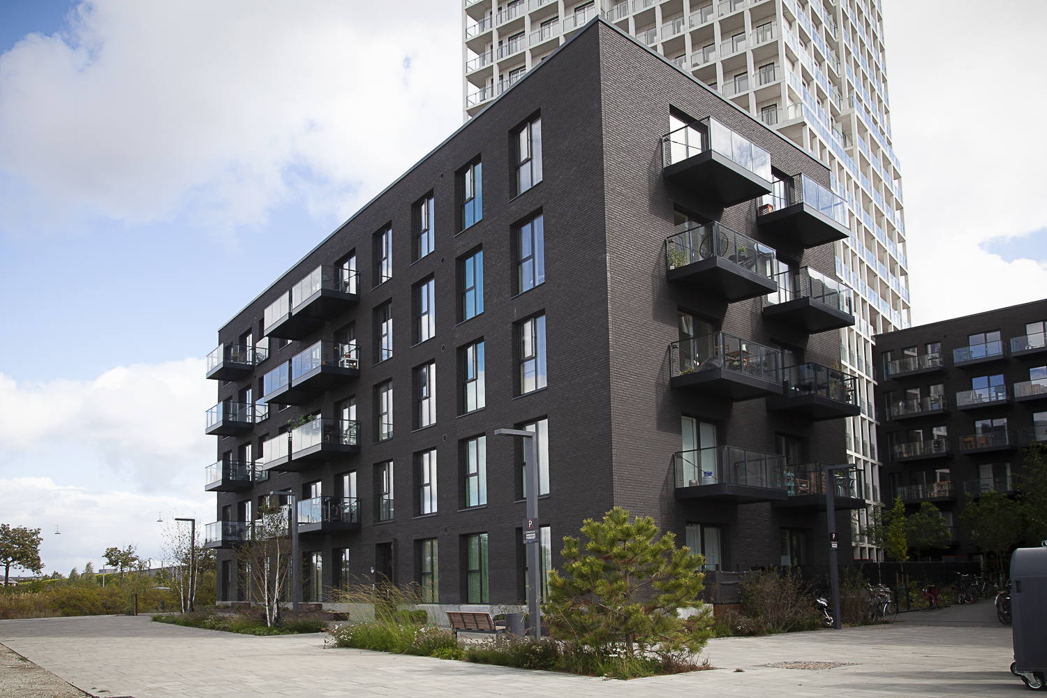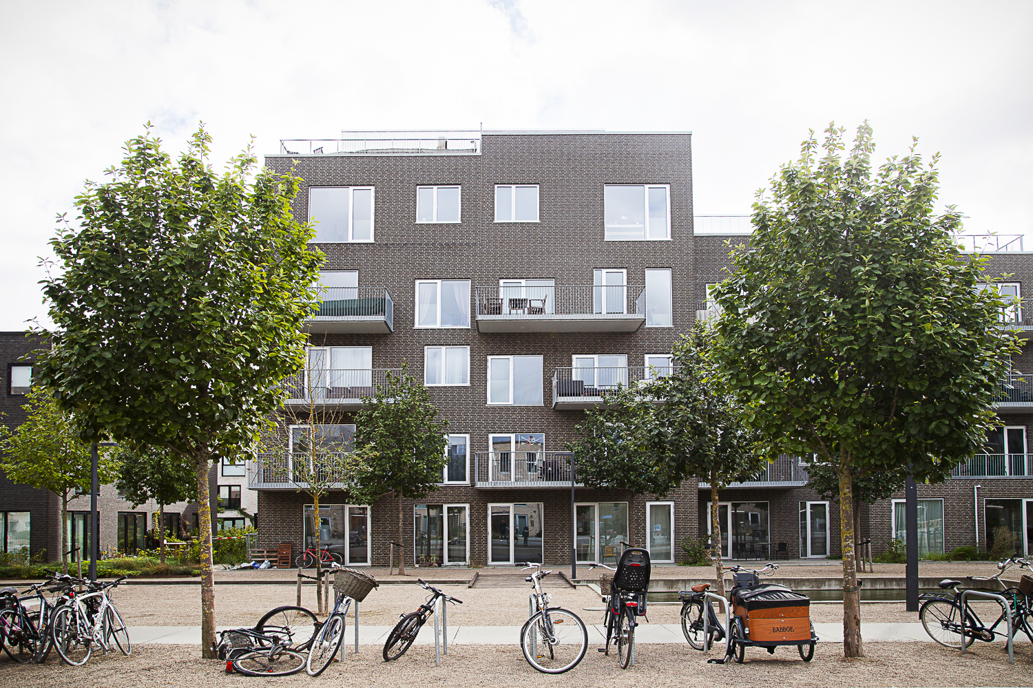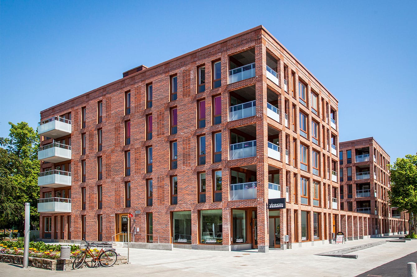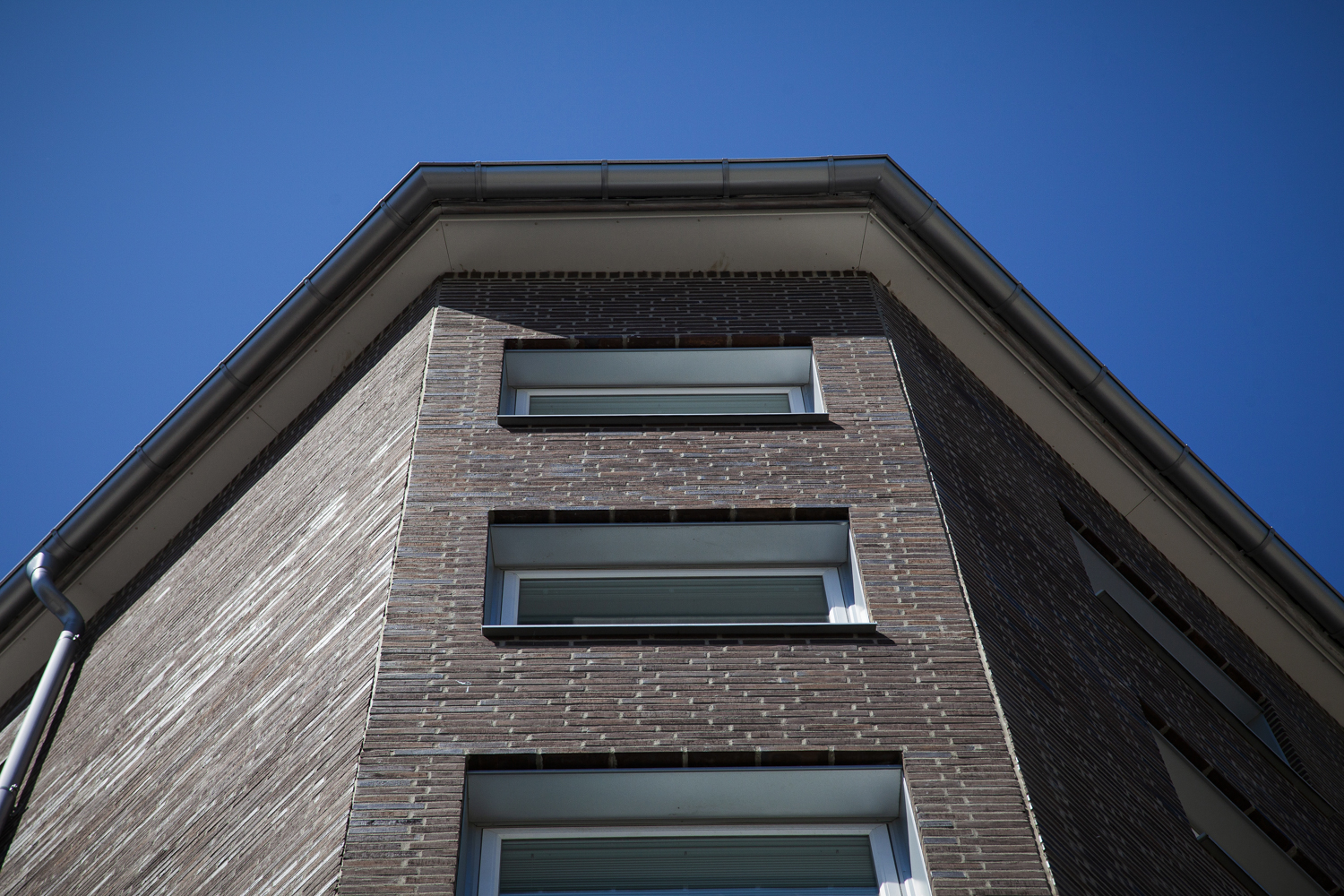 Inspired by a chestnut, as the name indicates, daring dimensions makes every apartment stand out. The large sections of windows are placed strategically and ensuring privacy, and the dark frames in combination with the light brickwork contribute to the thought-out depth of the building.
