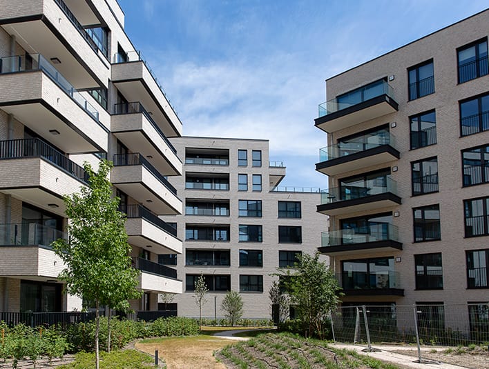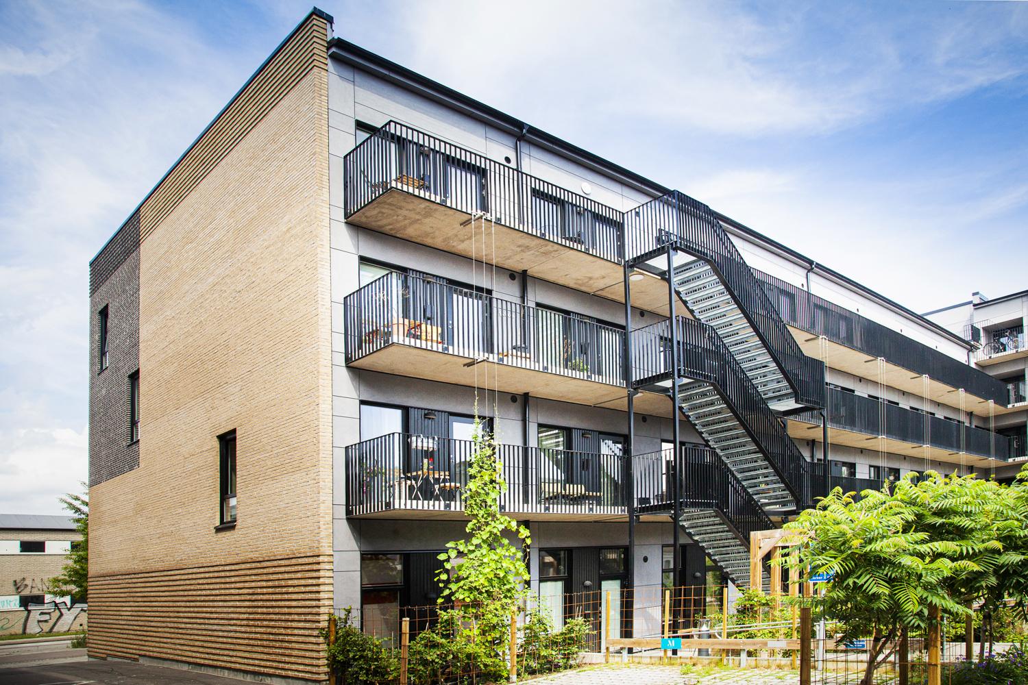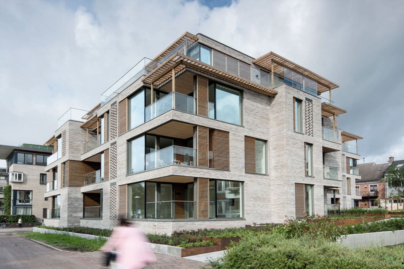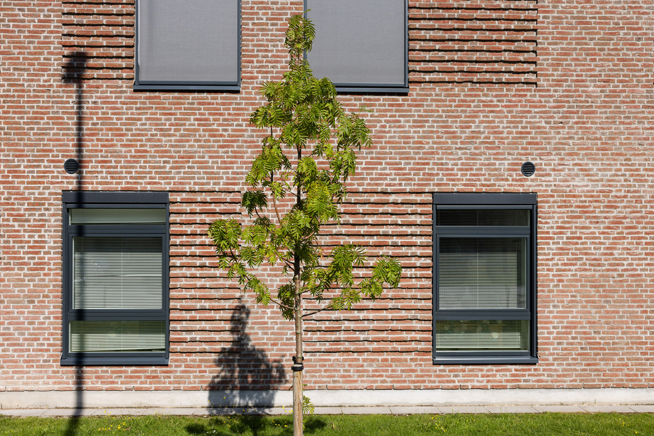 Inspired by a chestnut, as the name indicates, daring dimensions makes every apartment stand out. The large sections of windows are placed strategically and ensuring privacy, and the dark frames in combination with the light brickwork contribute to the thought-out depth of the building.