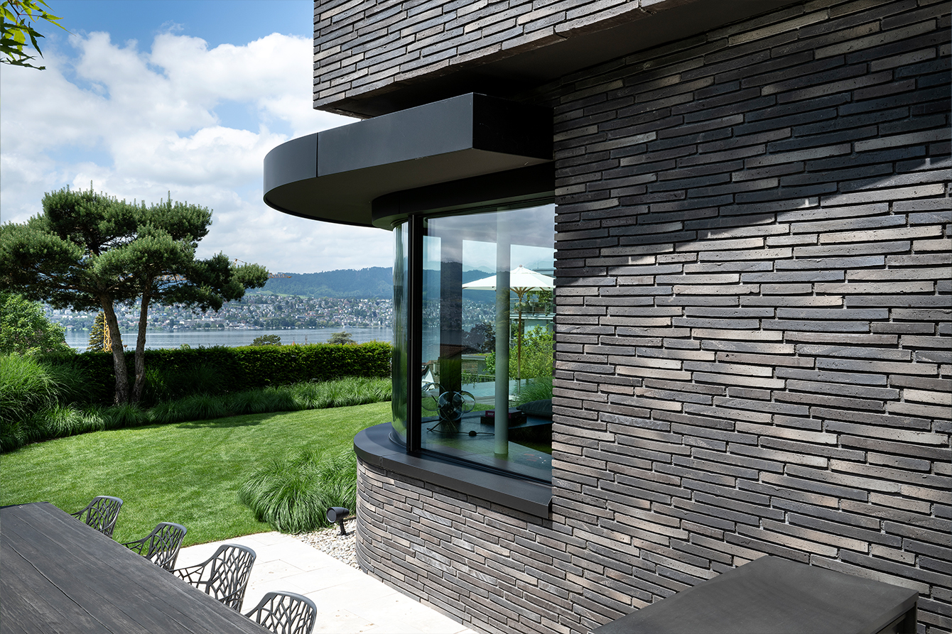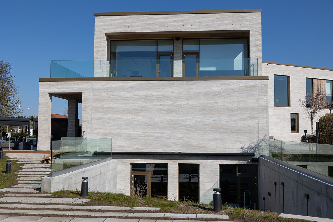 Villa O. är ett praktexempel på en premiumfastighet där kombinationen av eleganta kurvor med specialtillverkade tegelstenar från vår fabrik Carlsberg Bjælker och transparenta fasader skapar ett otroligt helhetsintryck. Designad av arkitektbyrån Hünerwadel Albers & Partner erbjuder fastigheten inte bara en fantastisk utsikt över det unika landskapet, utan har också områden klädda med ULTIMA i vardagsrummet, vinkällaren och entrén.
