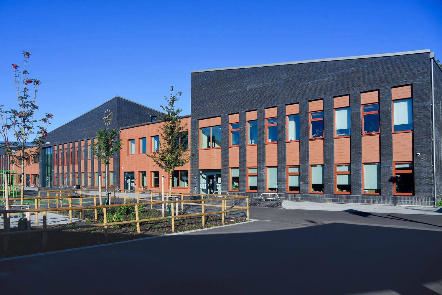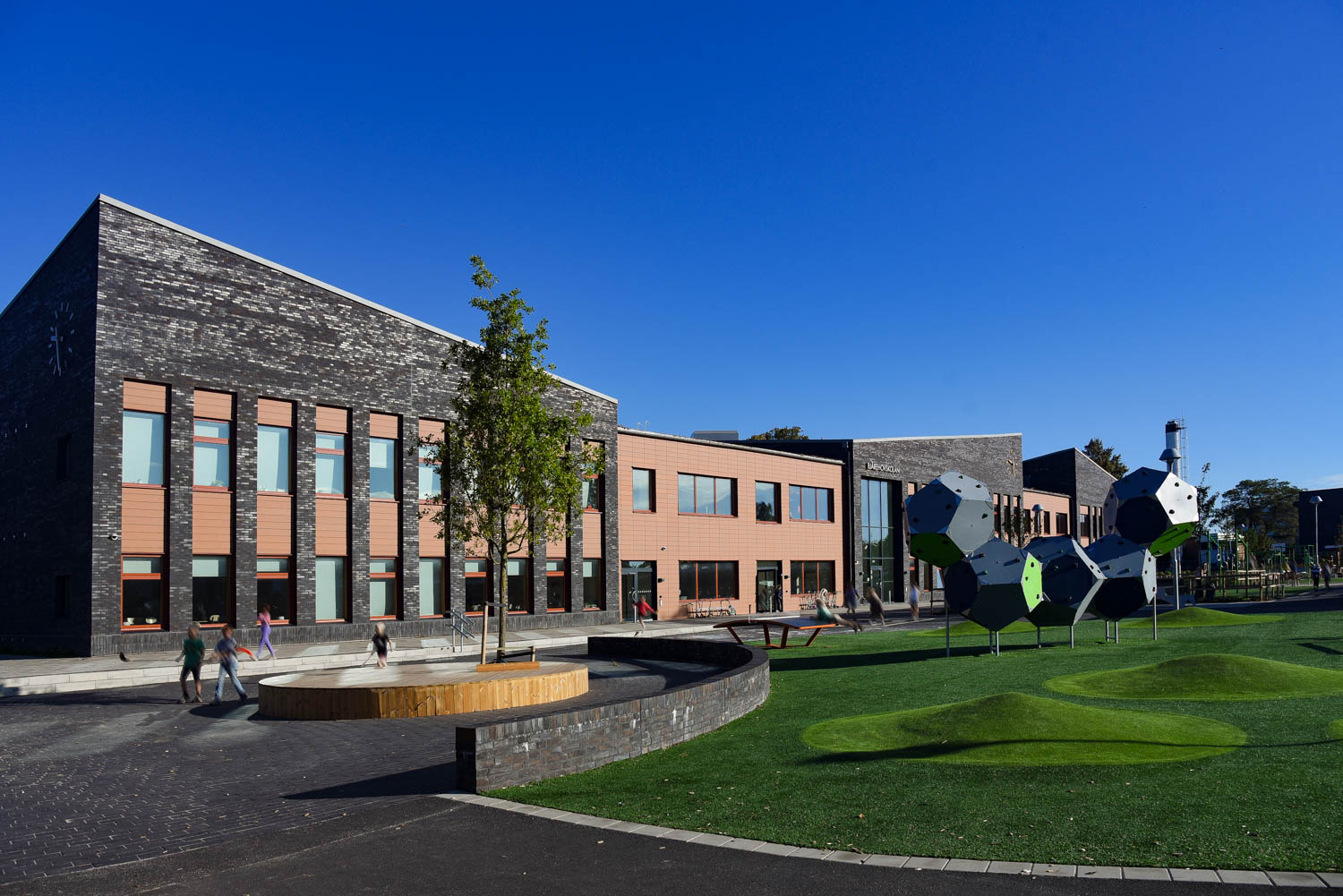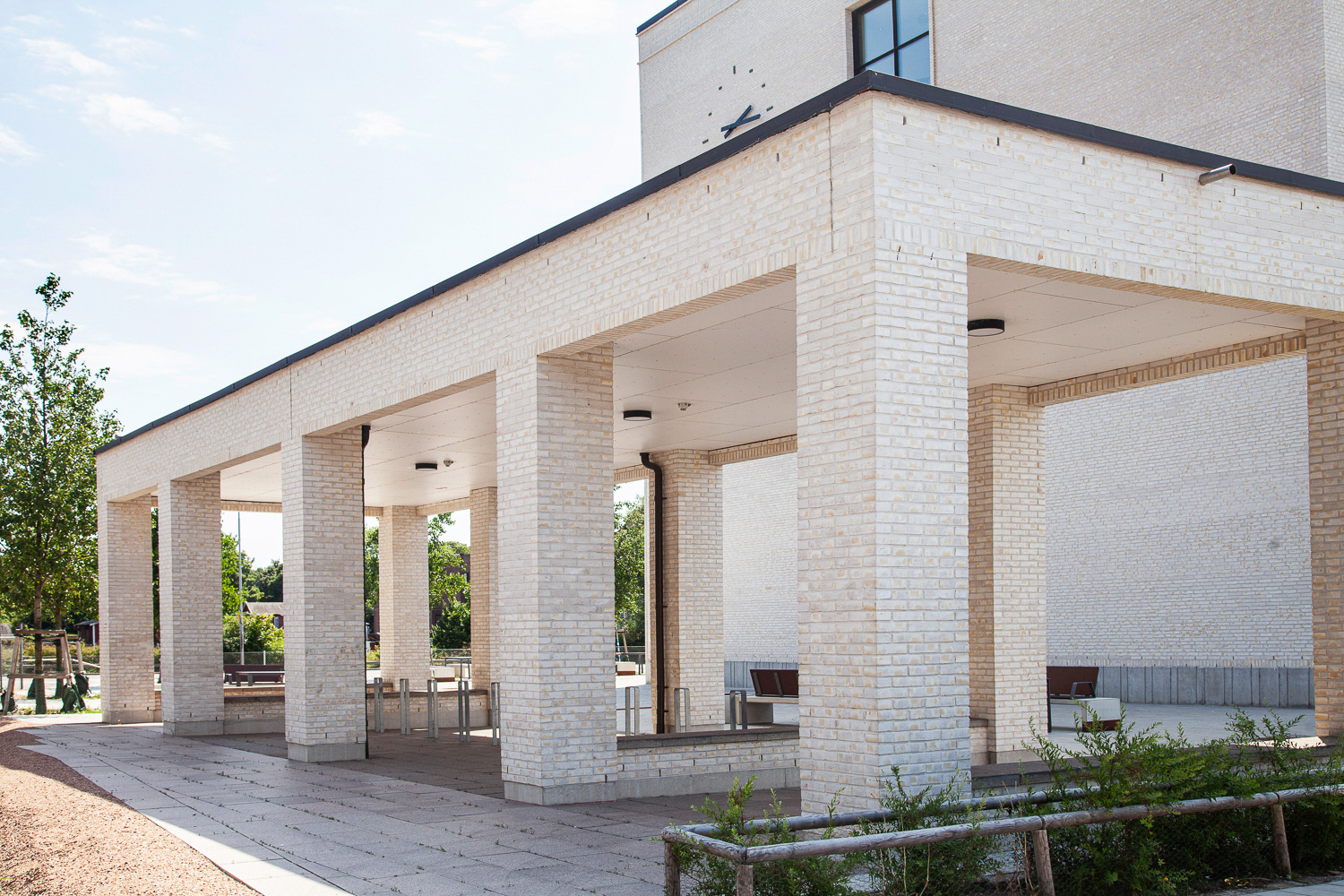 This Swedish public school has a colourful courtyard for those hectic recesses. The details in the masonry and brick alignment show what can be done to make the façade look so much more exciting.