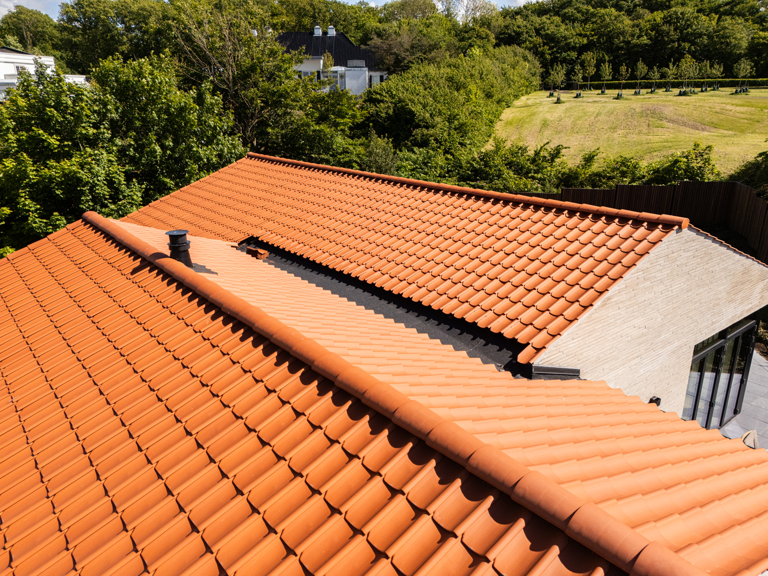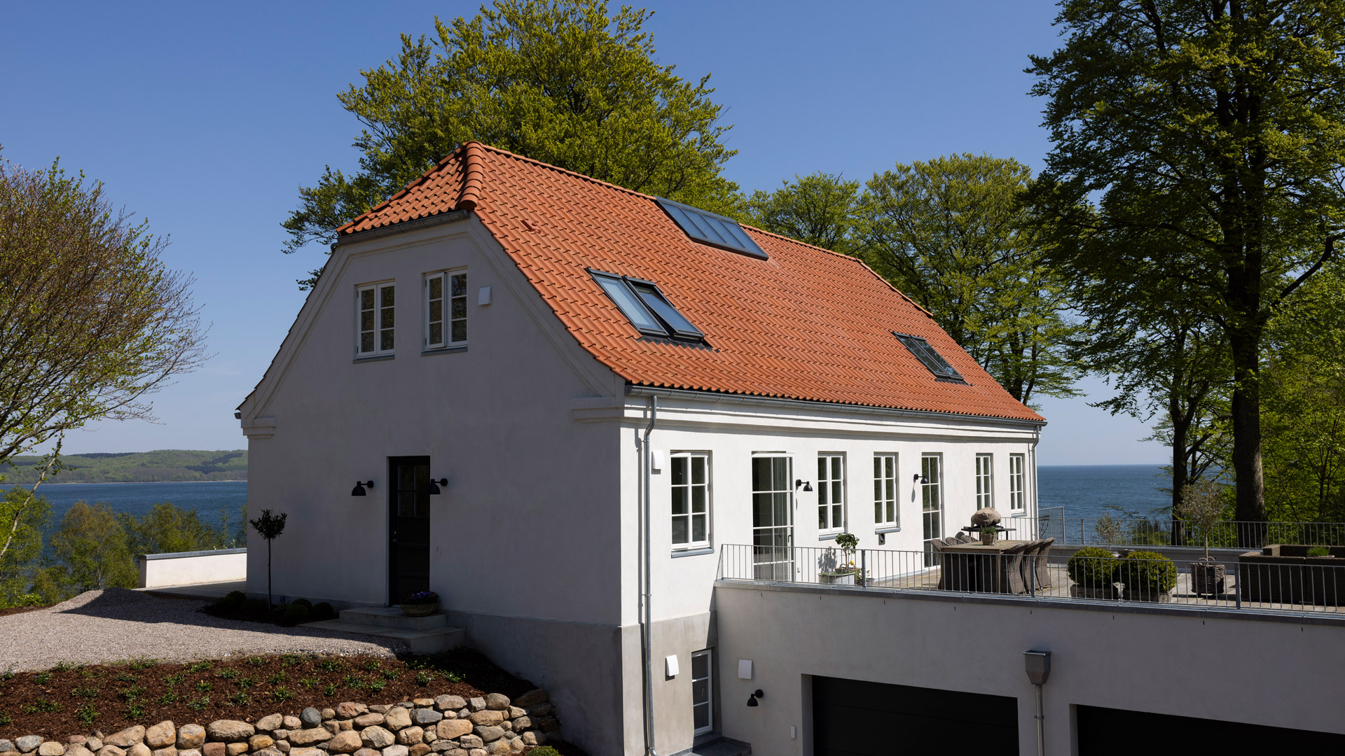 This unique location at Kolding Fjord calls for a very special house – and for a roof with character and flare. This completely renovated white mason with private pier and stunning views has been refurbished with glazed Laumans roof tiles. The roof is not only a good match for the house and its surroundings. The extra thick glaze, which creates the matte look, also provides a sturdy roof that is completely algae and dirt repellent and extravagantly looking.