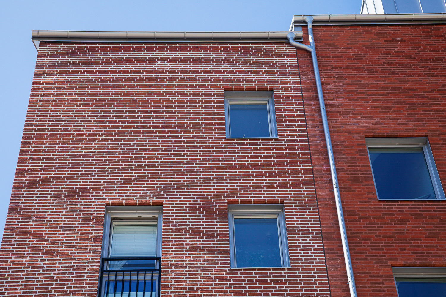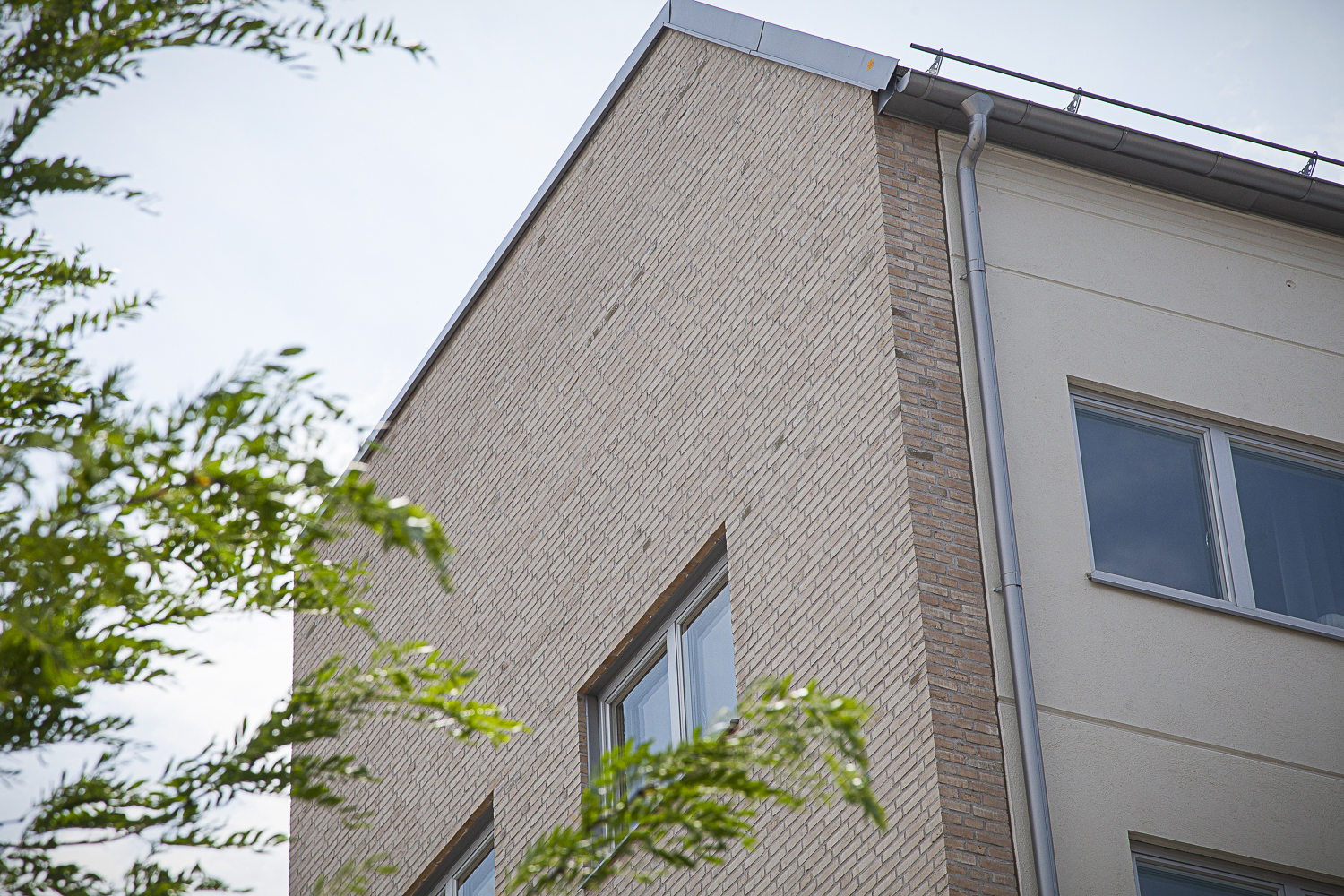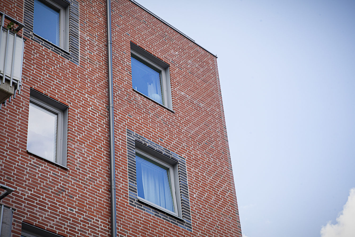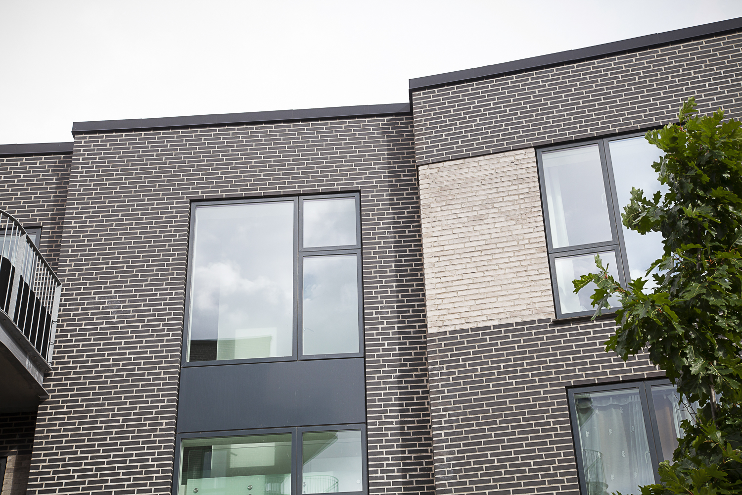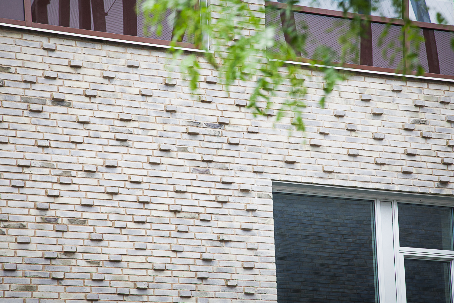 To reinforce the feeling that the house bodies are different individuals who stand for themselves and become personal, we chose different colours on the brick and different colours on the joints. After Randers Tegel delivered many test boards with different bricks and different colours on the joint, the choice finally fell on three joint colours and three types of bricks, RT475-Bari, RT575-Fusion, and RT571-Fusion. We also chose to work with different types of pattern masonry, such as copper in standing joints and cantilevers in the street level of the facades to create an exciting expression in the facades. The colour choice for the windows was also important. Because some windows got a dark colour and others a white colour on the window frames, the personality of the house bodies is further strengthened. To avoid getting a feeling that the houses were moving away from the street, we let the stairs from the apartments to the north go down to the sidewalk. Thanks to this, we connected the street with the houses and achieved a Brooklyn feeling… albeit in Eskilstuna vintage.