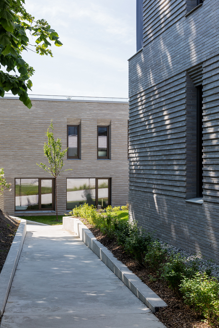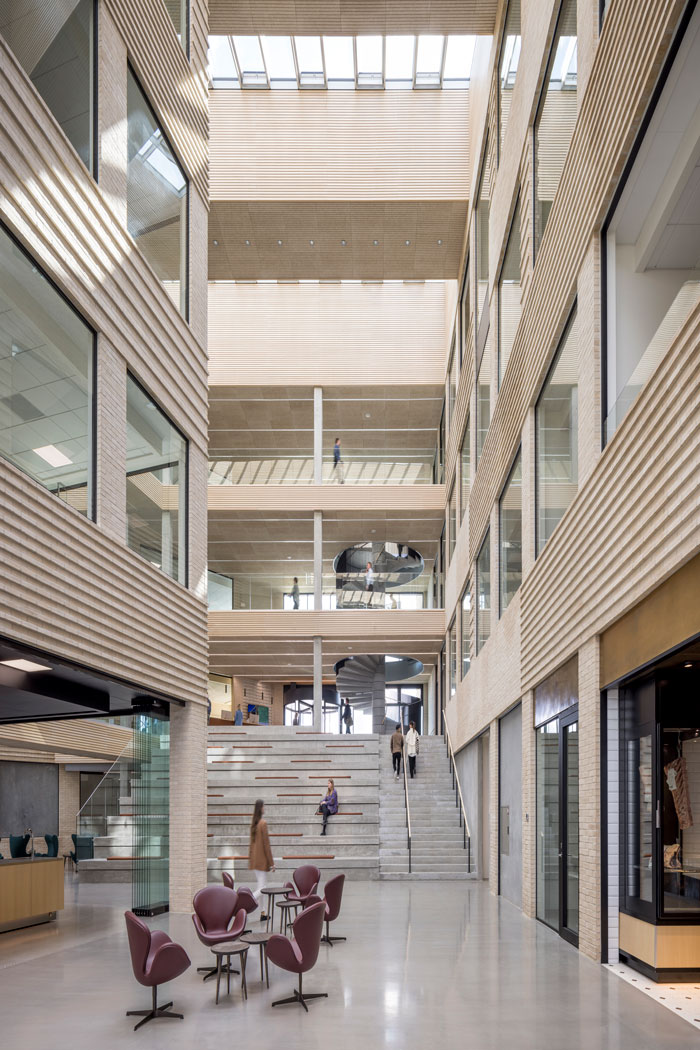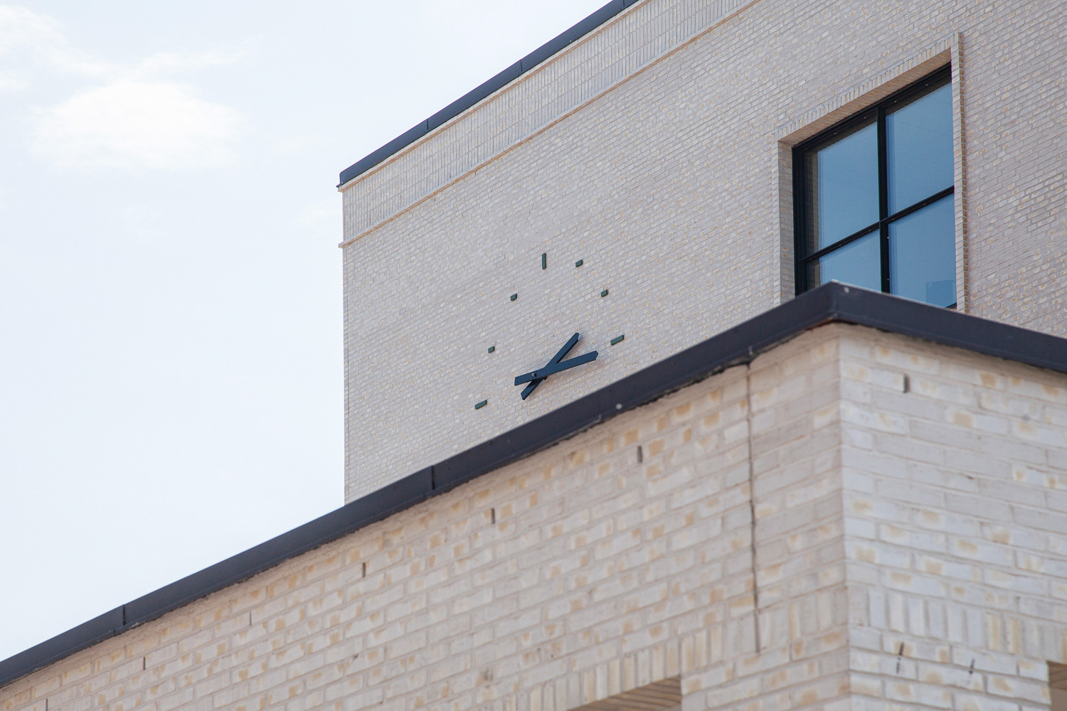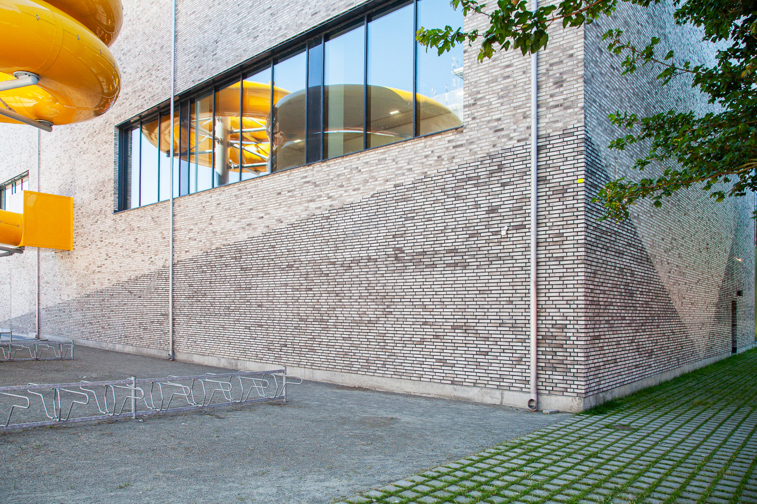 The building is adjusted to its surroundings – especially due to the yellow bricks and the traditional roof. At the same time, the two displaced wings and perforated end walls add a contemporary and rewarding touch to the historical epicentre for education.