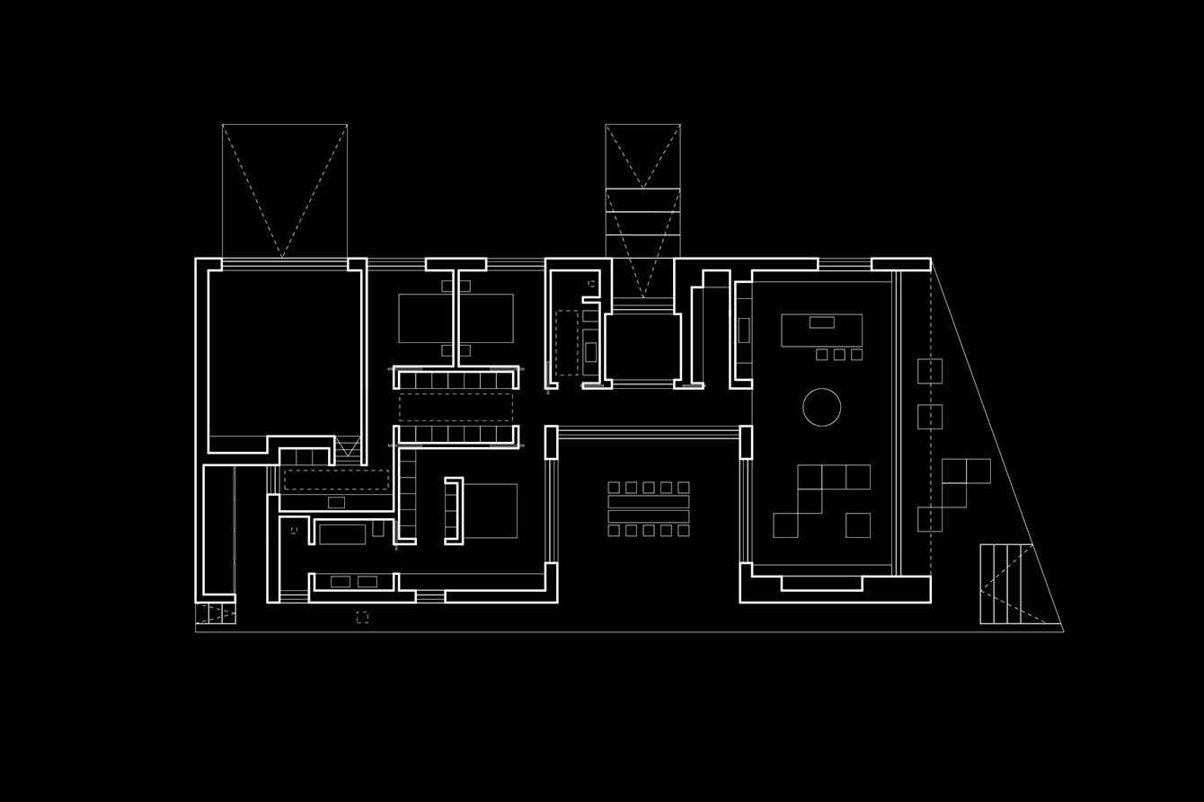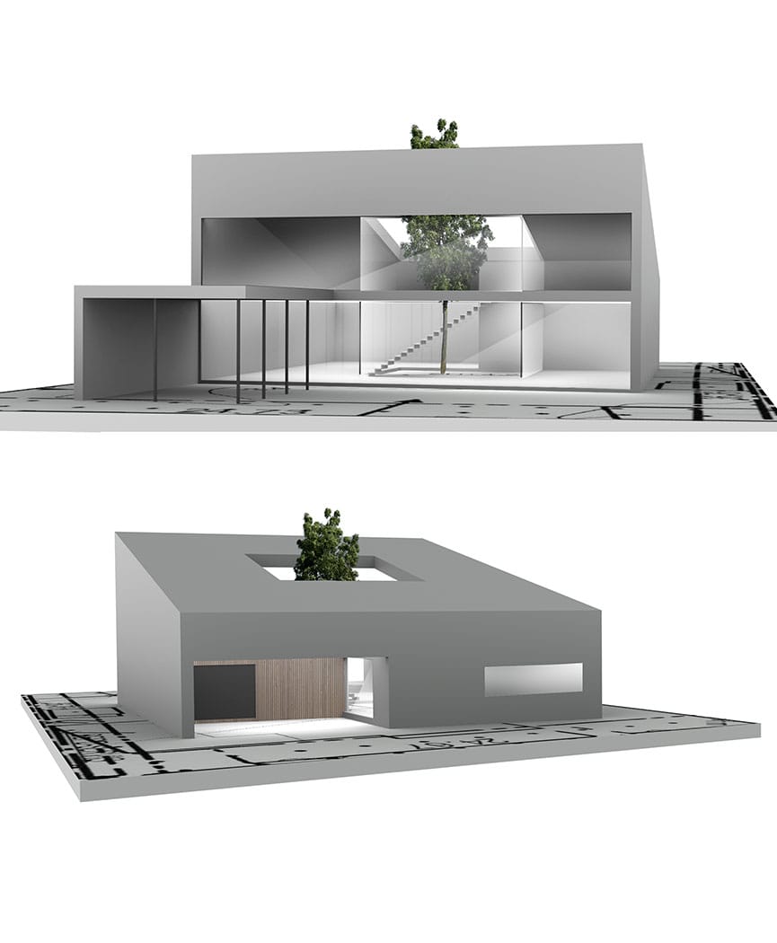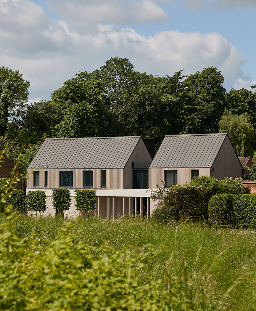 I 2019 påtog de sig opgaven at skabe en skræddersyet bolig til en familie, som søgte maksimalt privatliv. Svaret blev et U-formet hus med en lukket facade og en indre gård, der kombinerer stilhed med naturlig belysning og rumbredde takket være generøse vinduespartier.