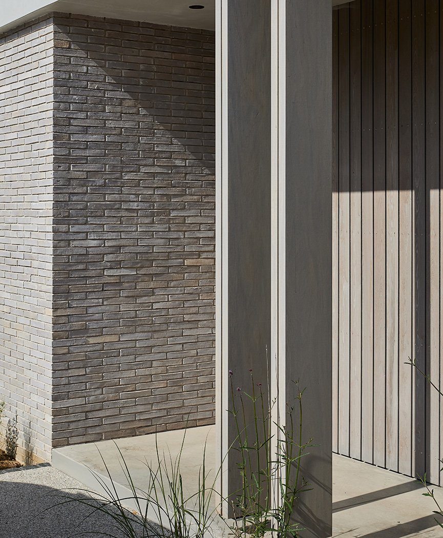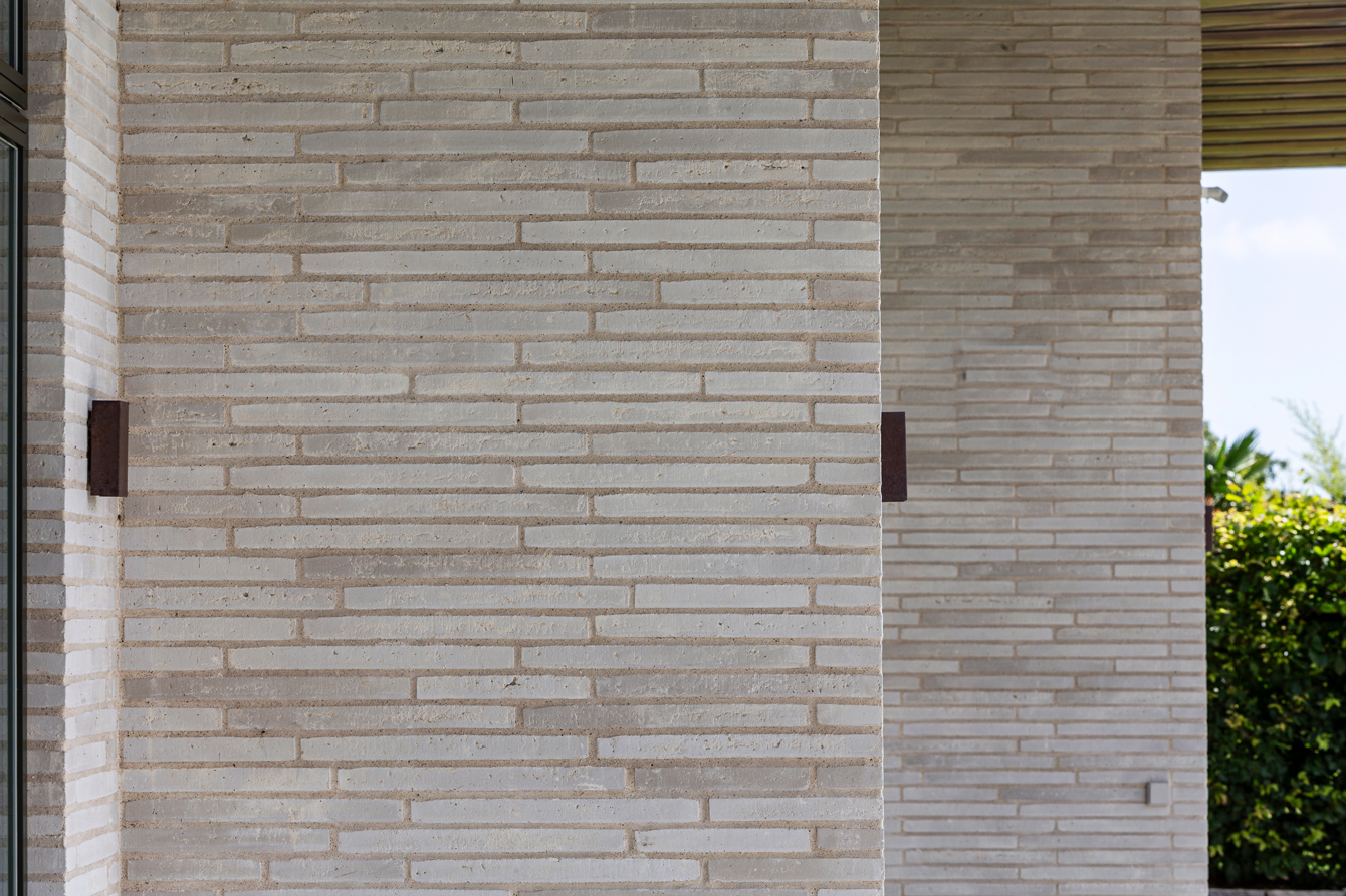 A significant detail in the project is the variation of bonds. A combination of vertical and horizontal bonds offers a special welcome to the home and adds a distinguished expression making the overall impression unique and not to underestimate.