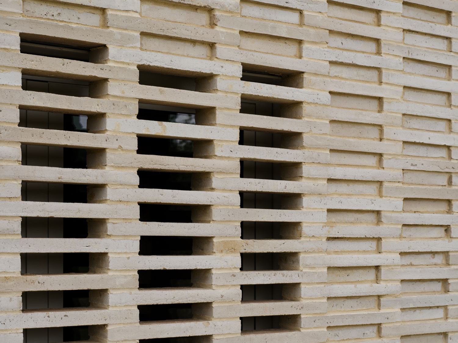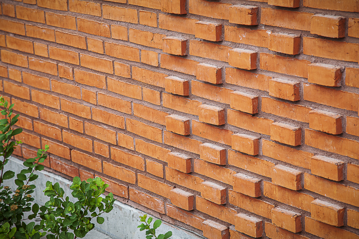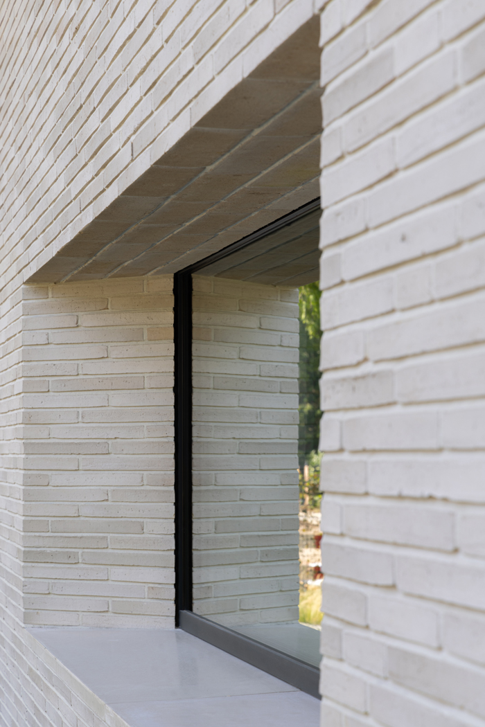 A significant detail in the project is the variation of bonds. When walking across the property, you can’t miss the play of bonds; There is the classic bond of long format bricks, a protruding bond as well as transparent one – each of which adds a special effect on the overall impression of the house.