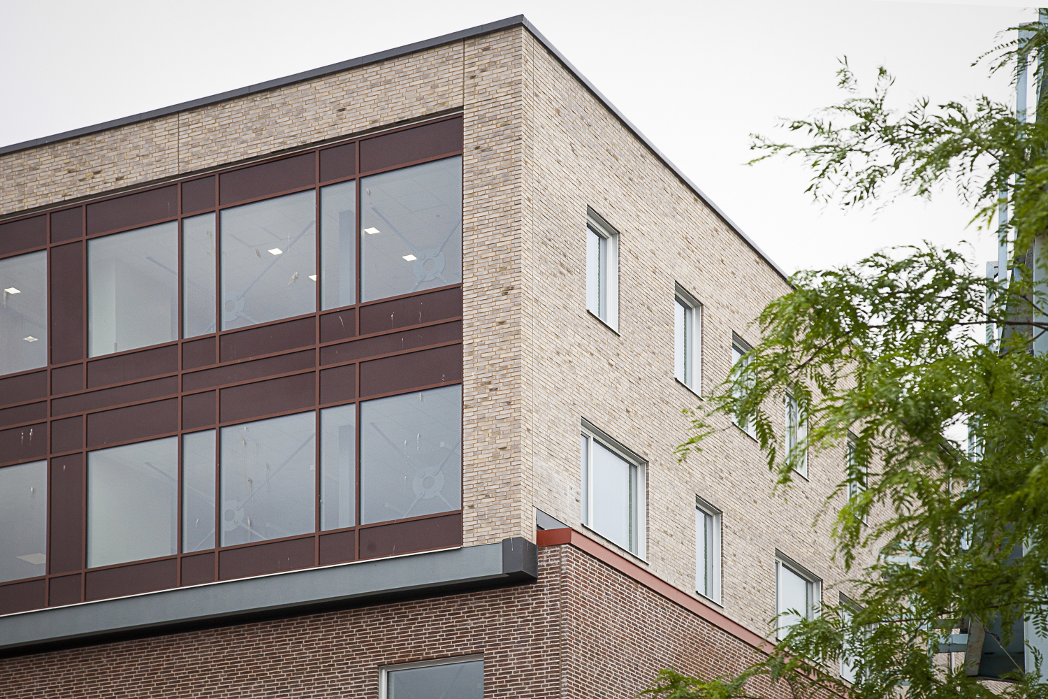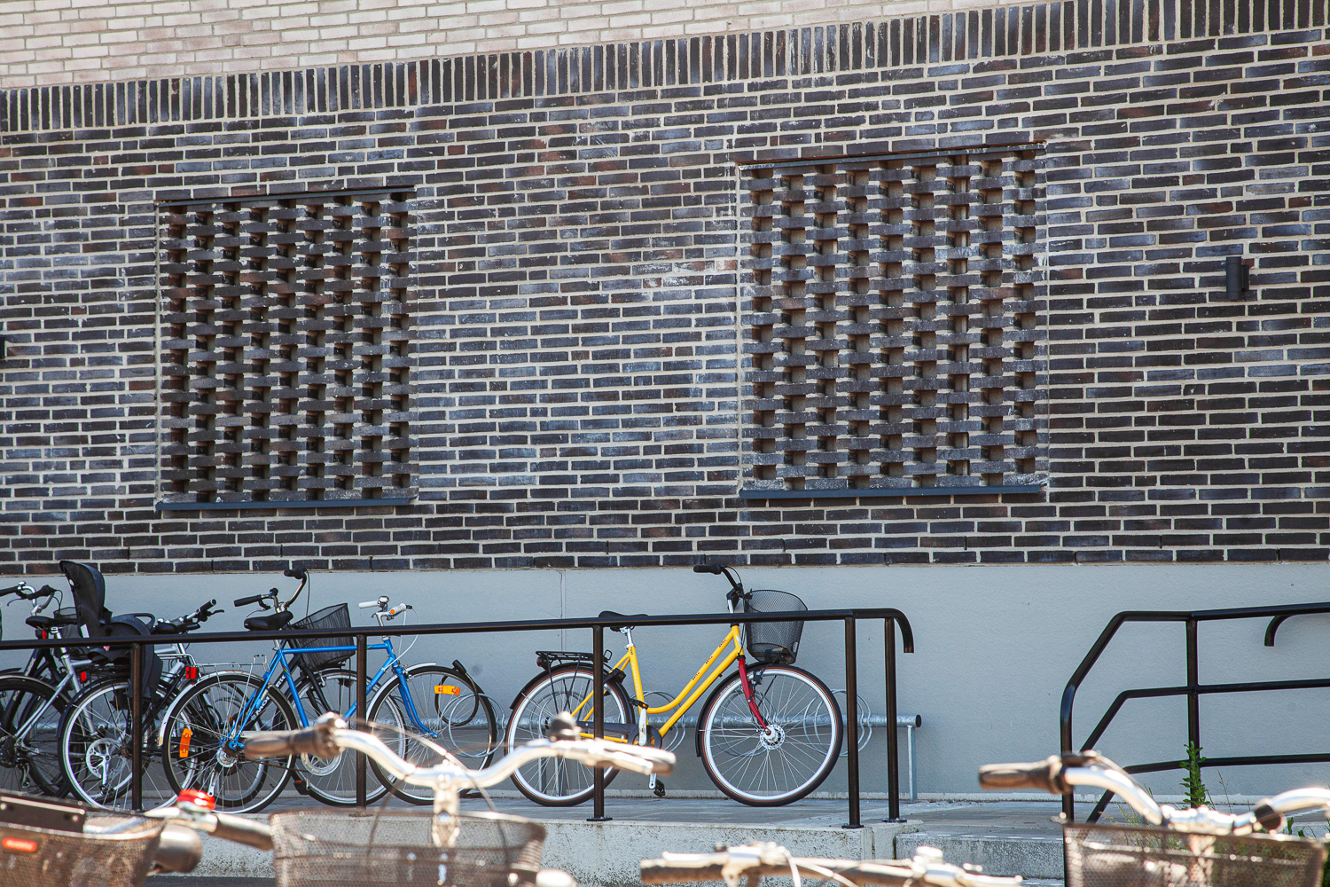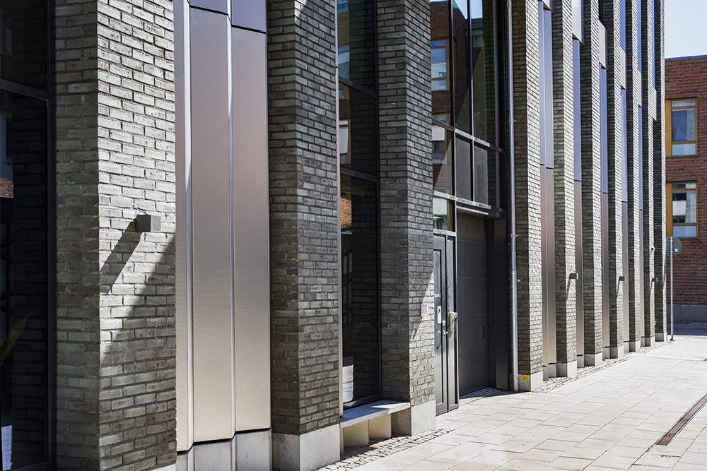 Facaden er opført med specialudviklede GREENER mursten, der har et markant lavere CO2-aftryk takket være brugen af biogas og vindkraft. Med over 225.000 mursten er der opnået en CO2-besparelse på over 110.000 kg.