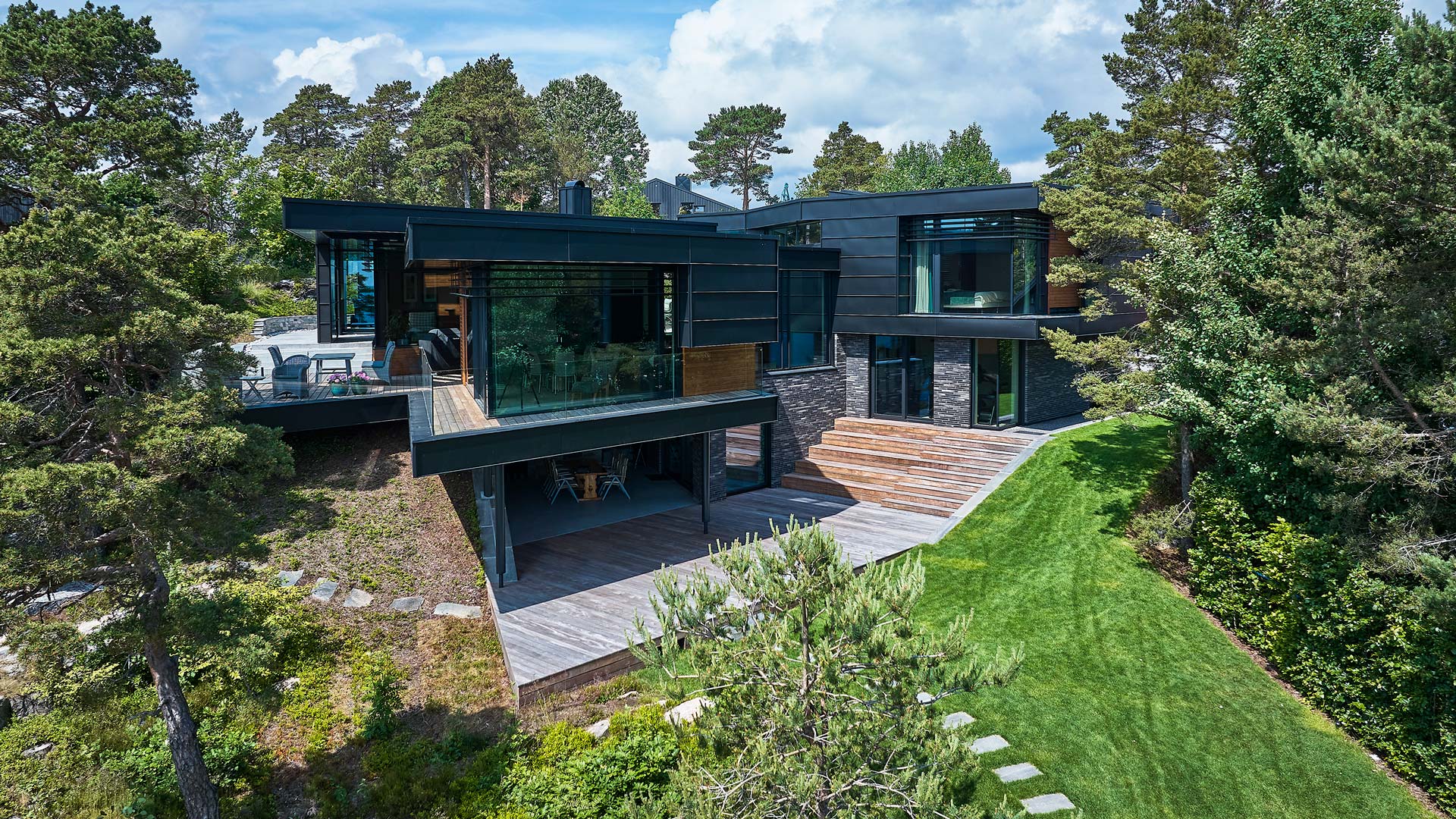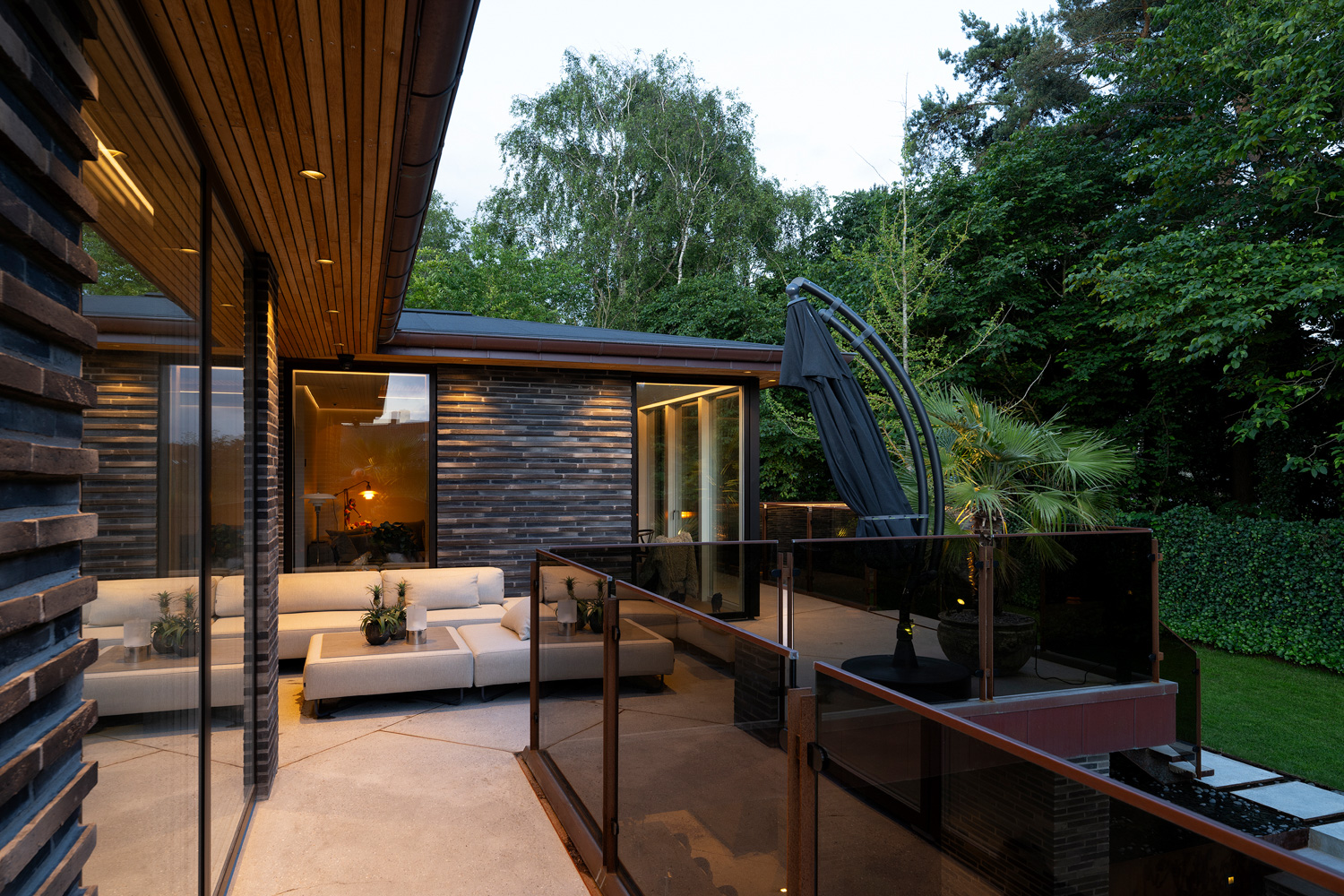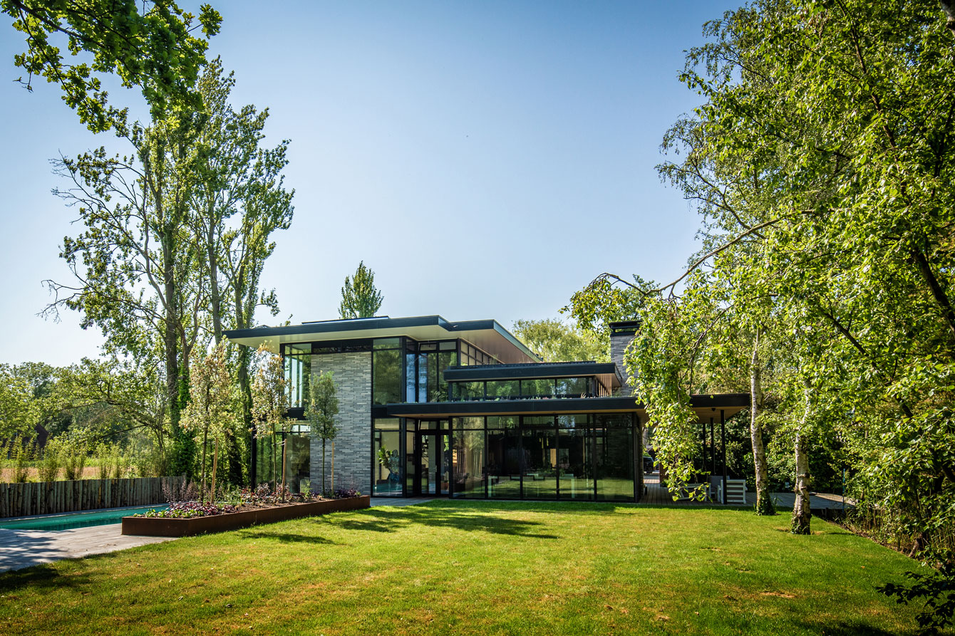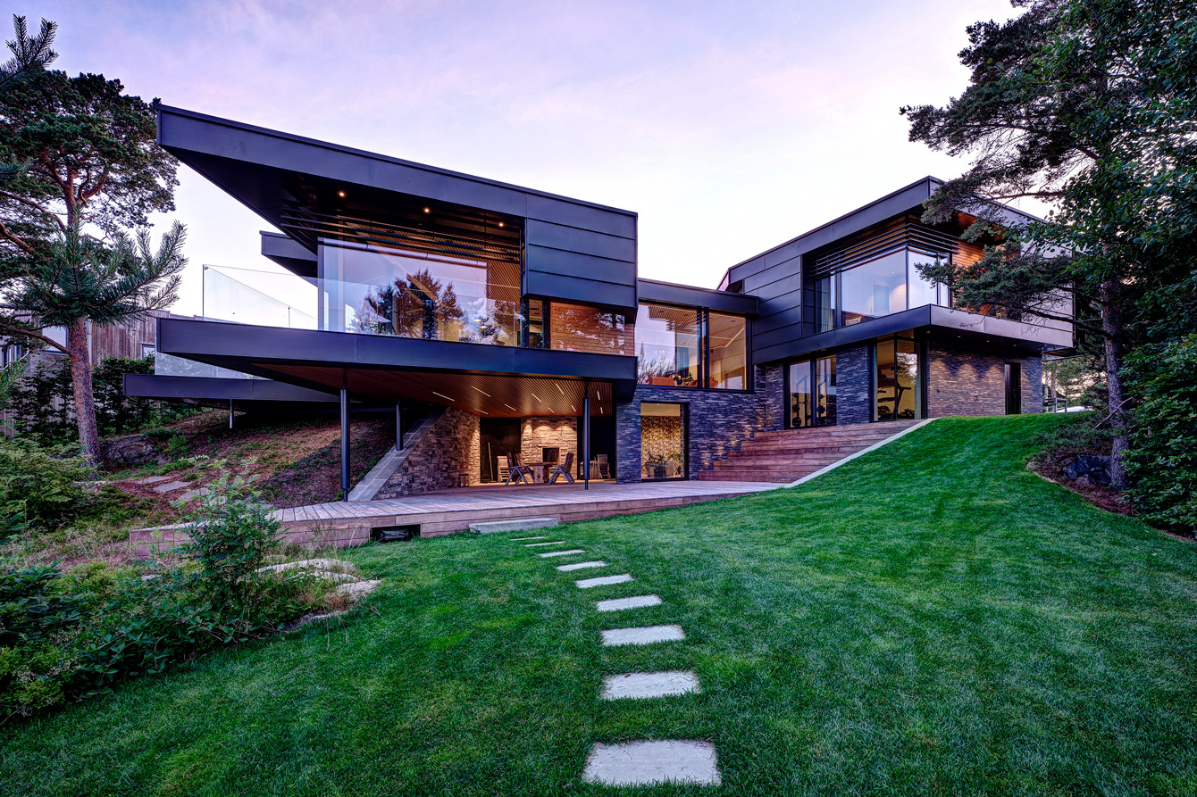 At the turn of a lush roundabout in an attractive neighbourhood, a businessman bought a large detached plot of land to fulfil a childhood dream: To create a world of his own in the woods. The vision for the project was to create as much discretion and privacy as possible without comprising the desire for a bright home with open and translucent rooms filled with daylight.