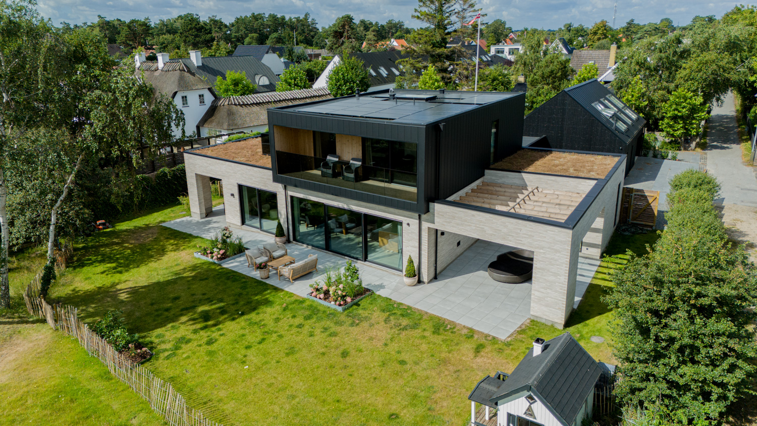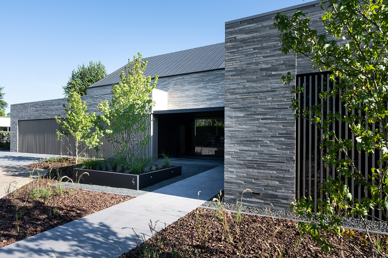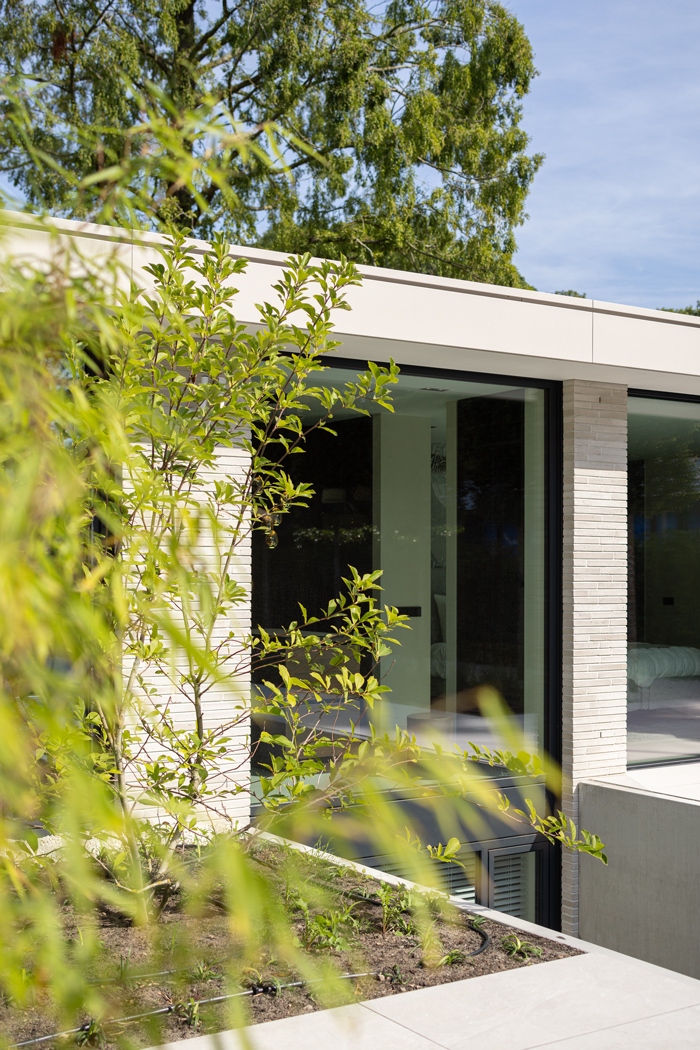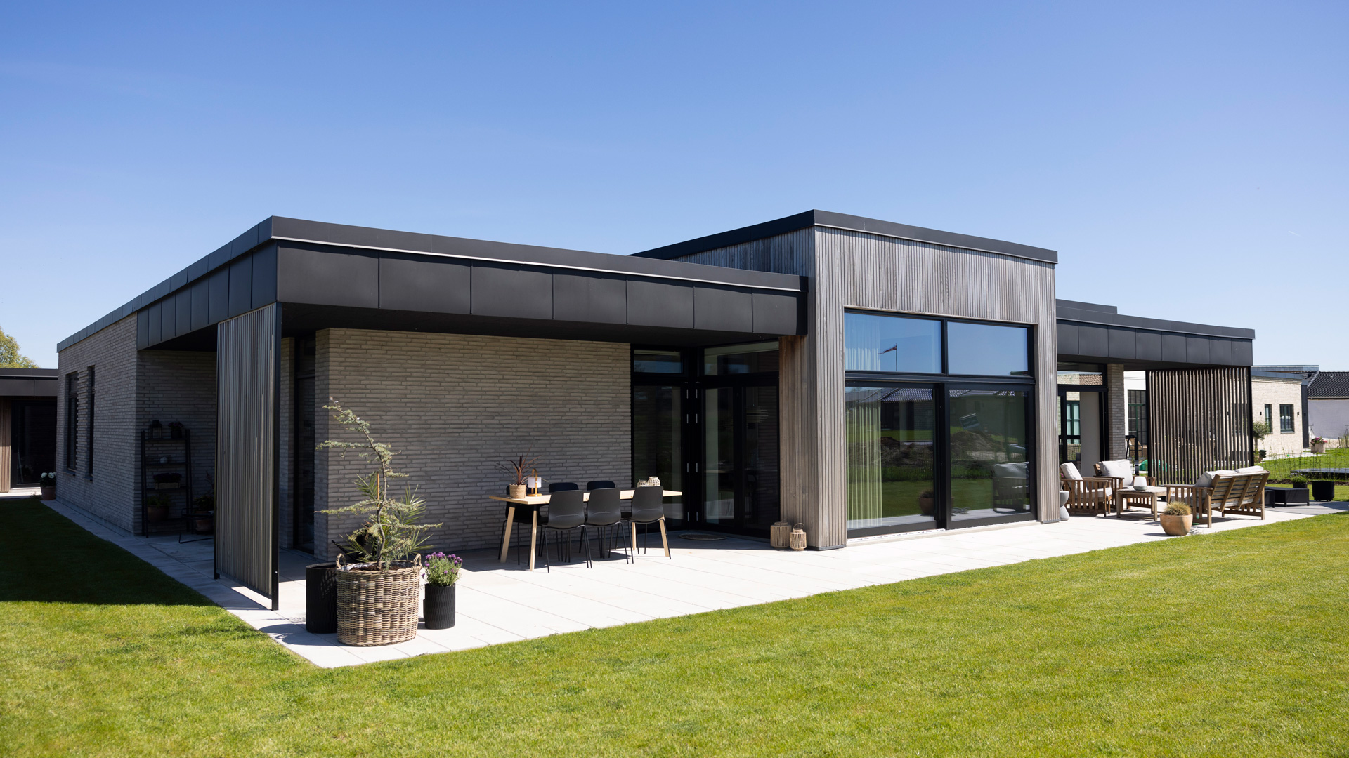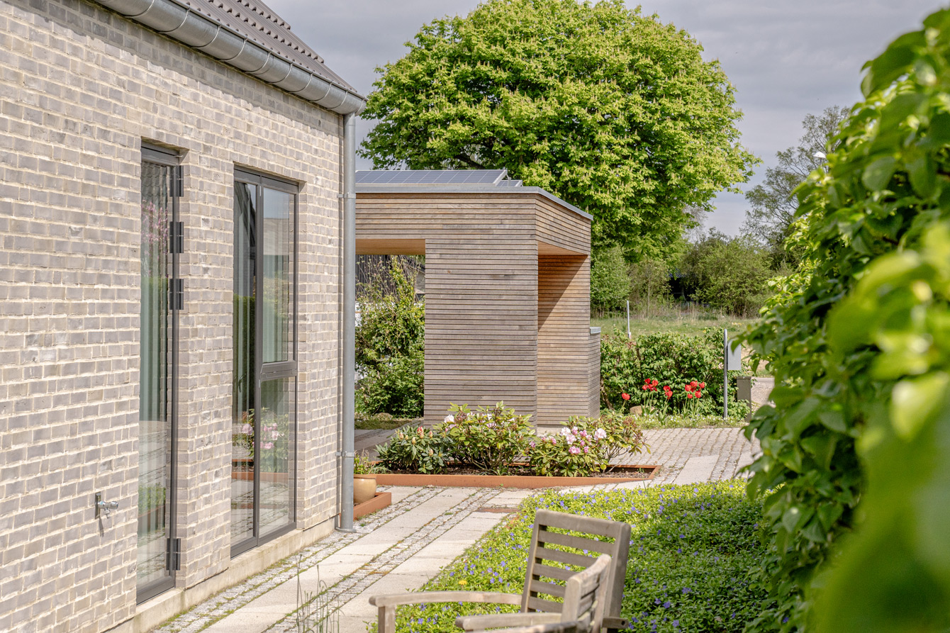 This contemporary gem is tight in every detail. Defining straight lines unfold across the project from leading elements such as the horizontal bond of extra-long format bricks and the position of large window sections. It is even present in the choice of ornamental grasses in front of the house.