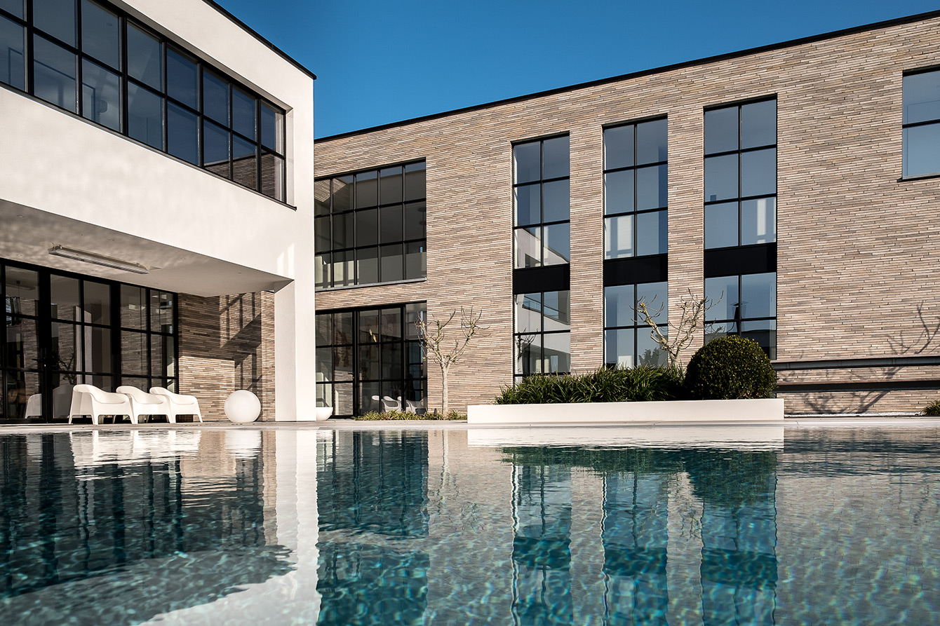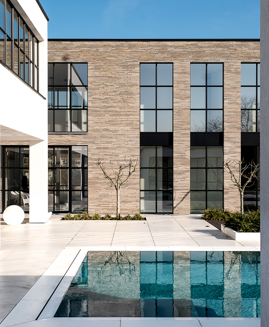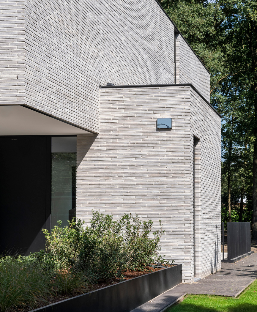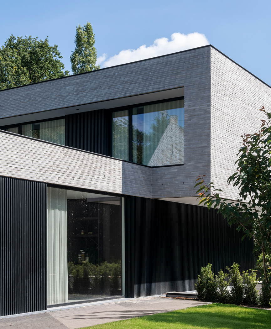 Minimalistic elegance meets contrasting combinations in this breathtaking home in Holland. In a symphony of grey nuances, the extra-long Ultima-bricks extend the voluminous villa, while the many large windows make for the perfect view of the green surroundings that embrace the exclusive and extraordinary Villa Oss.