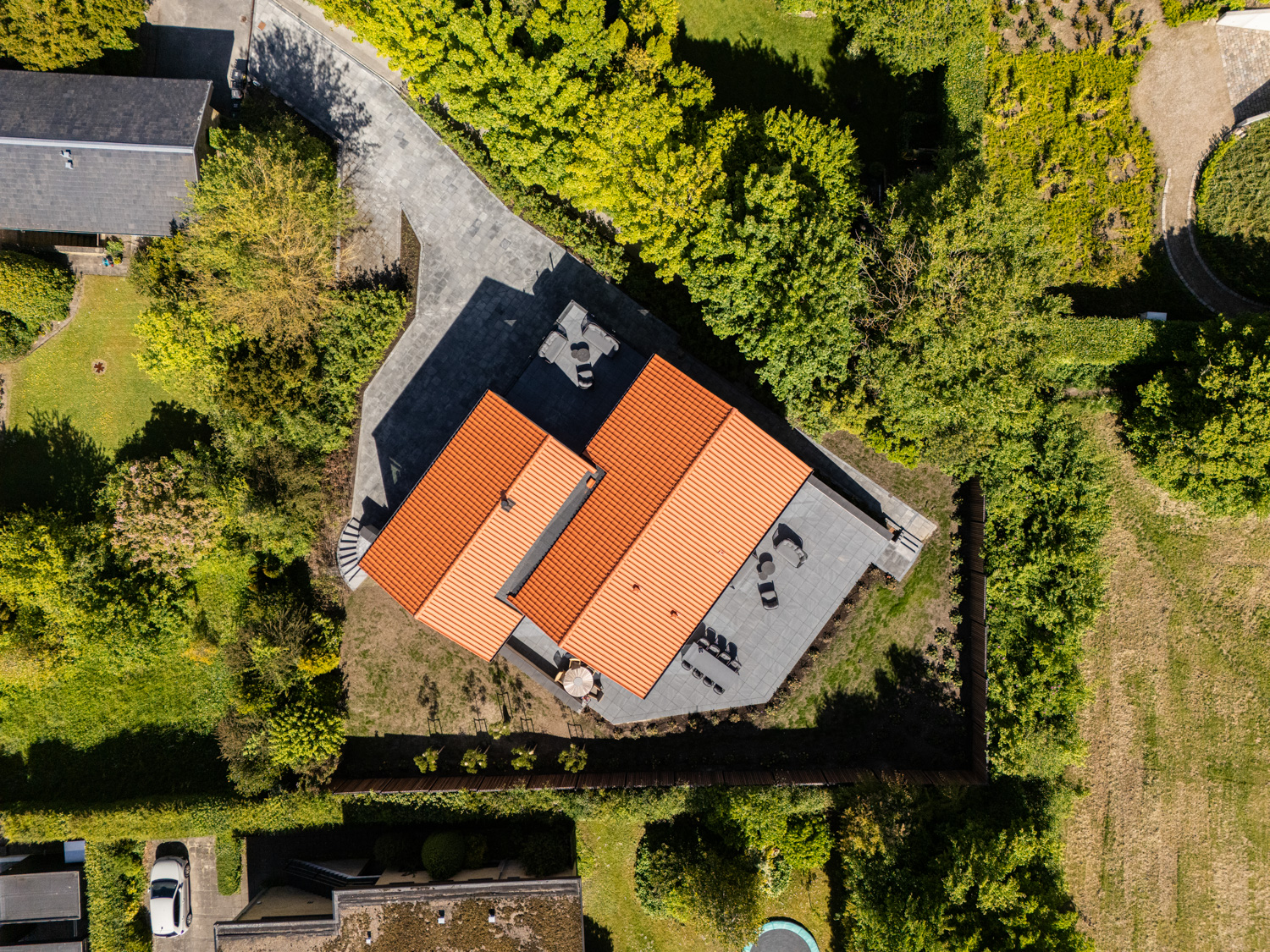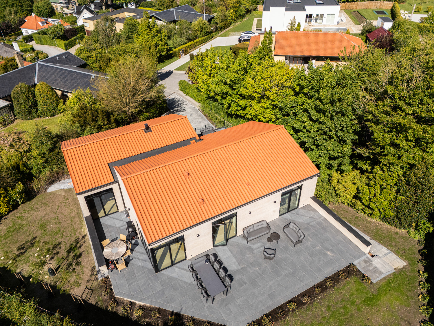 A grand residence in its magnificence with a well-held and beautiful surrounding garden. Blessed with many square meters this house sits majestic in the landscape. Of course, topped with a classic red tile roof.