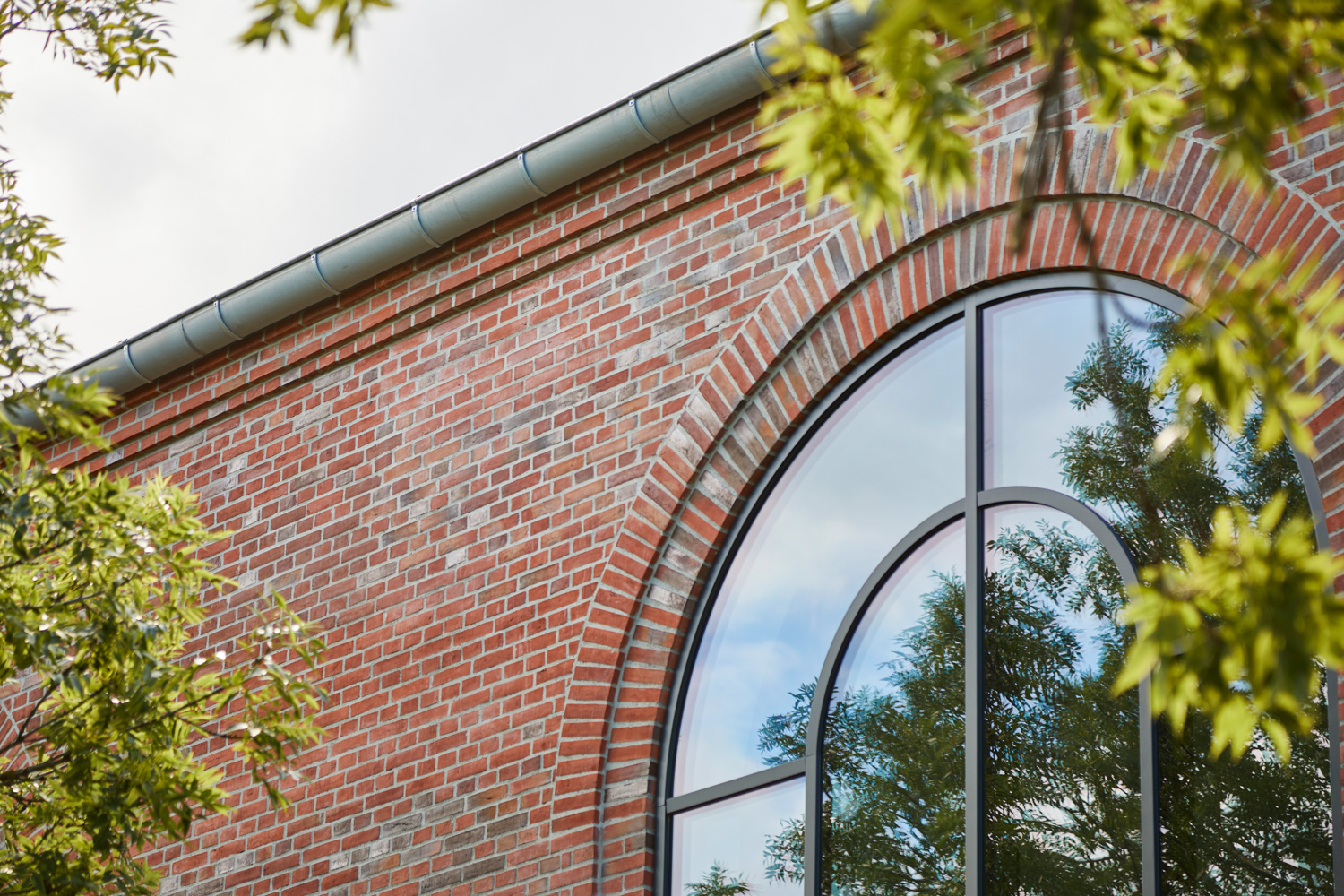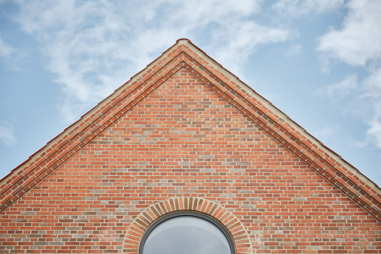 The gable is allowed by a transparent bond of RT 207 bricks, a special Carlsberg Bjælker system for support and traditional brick consoles. From the outside, it is a tale of beautiful simplicity – on the inside, the bond lets great minds work with a view.
