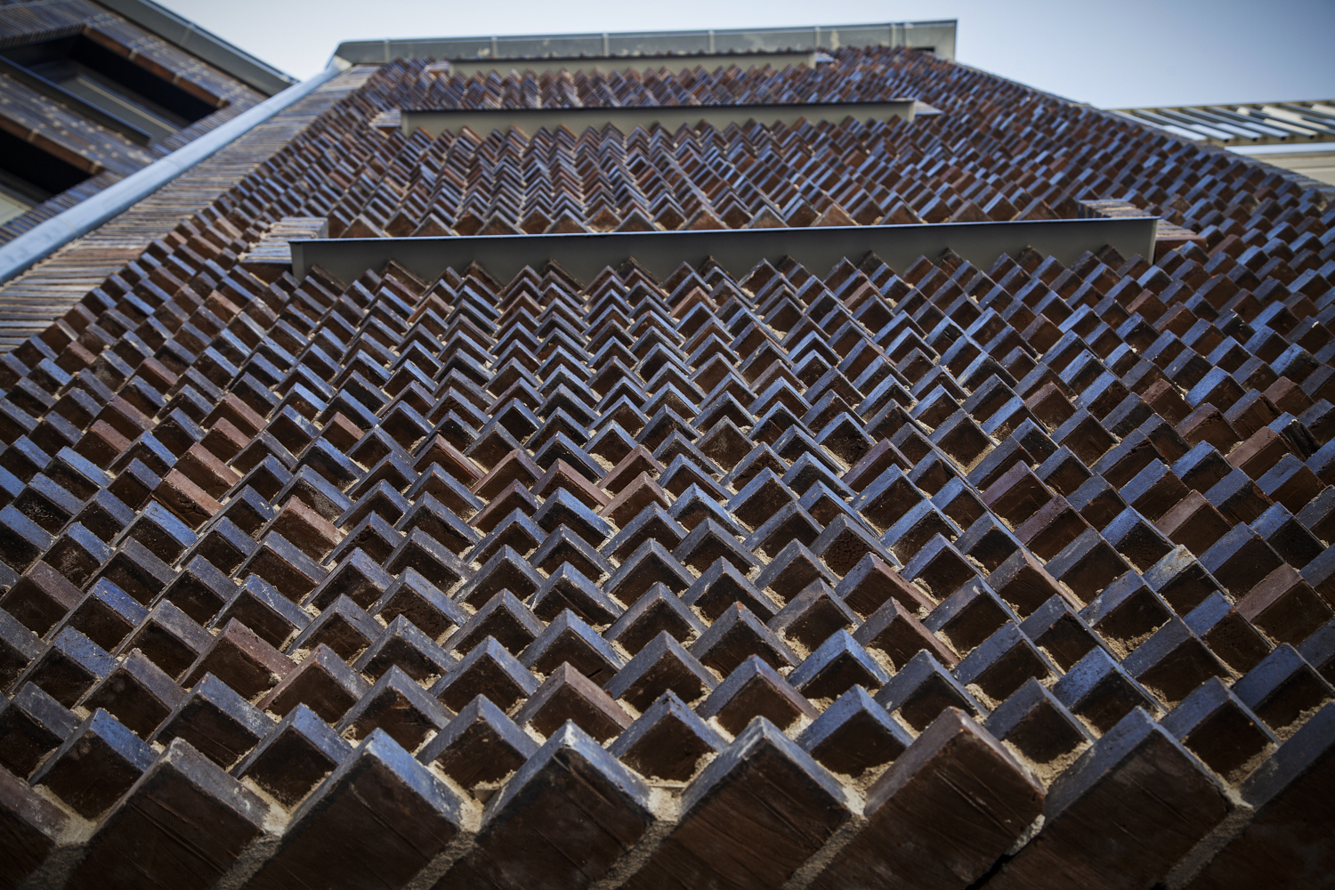 For at fuldende designet fra CEBRA har vi desuden udviklet en af de længste bjælker, der nogensinde er produceret i tegl. Mere end 16 meter i frit spænd over hovedindgangen.