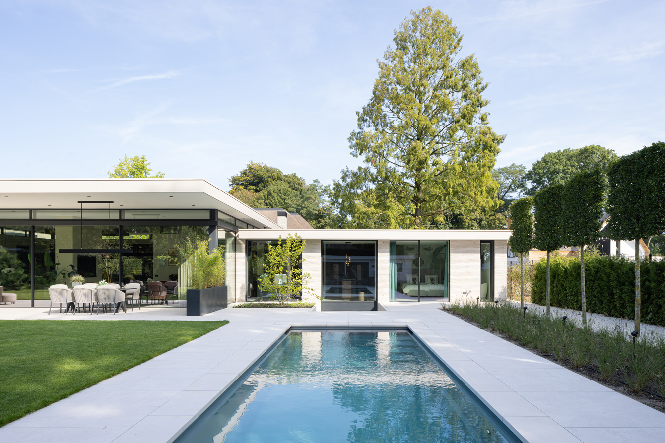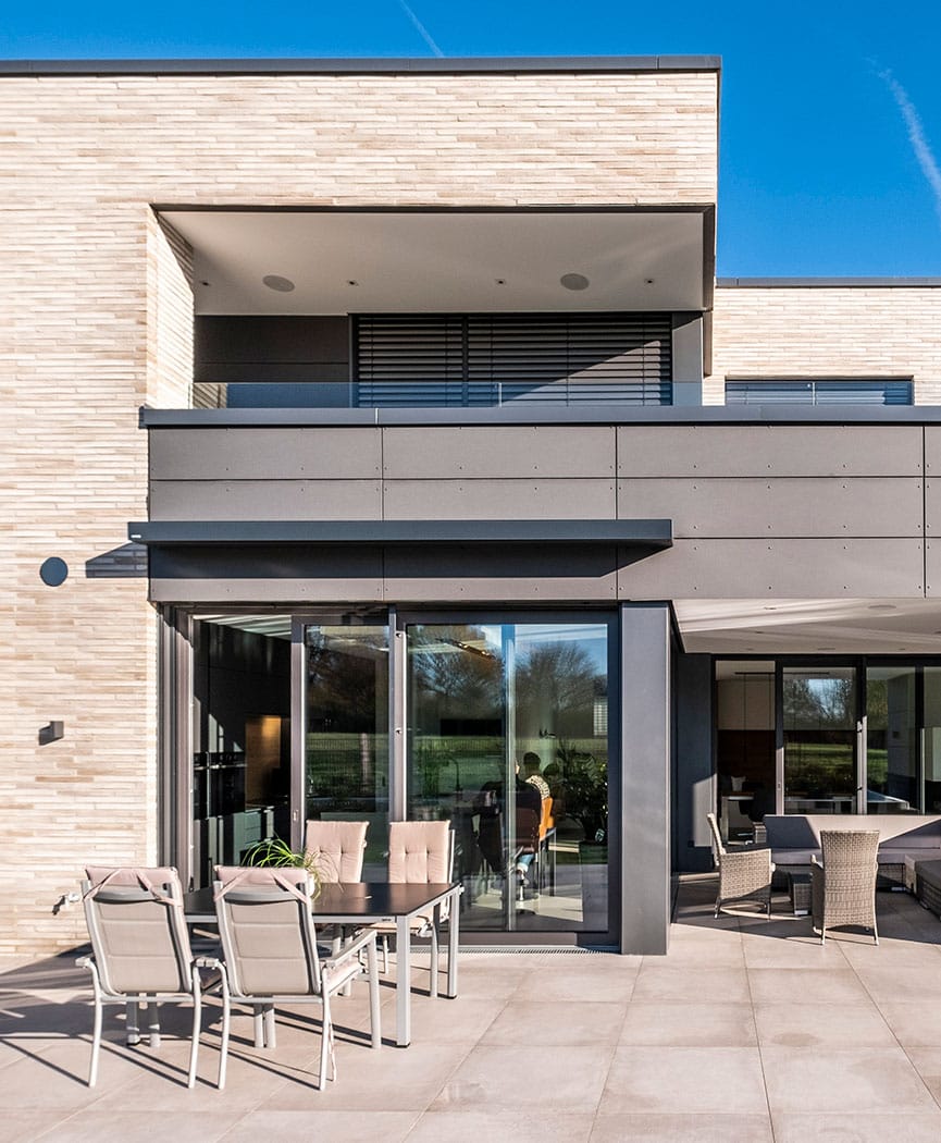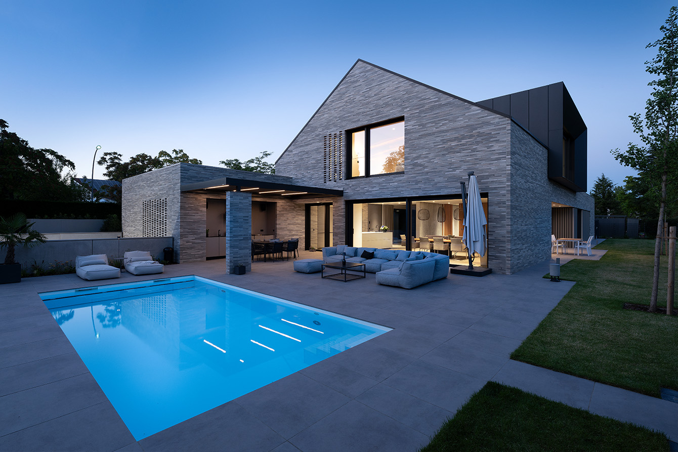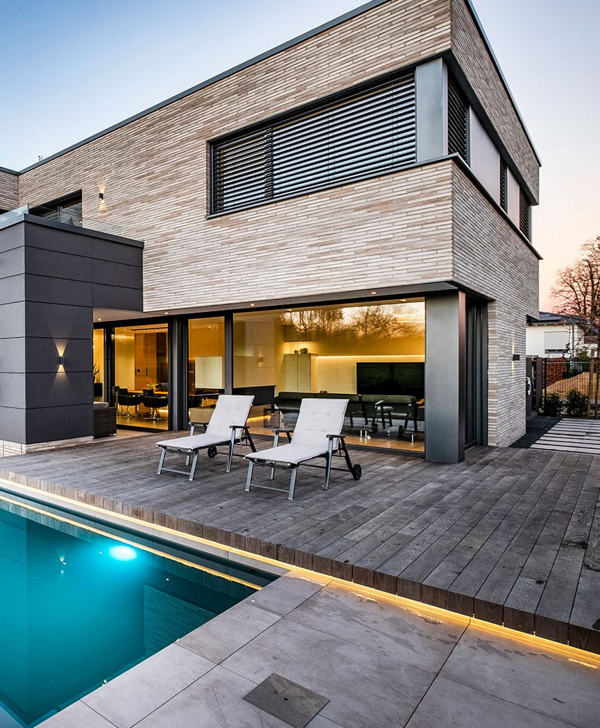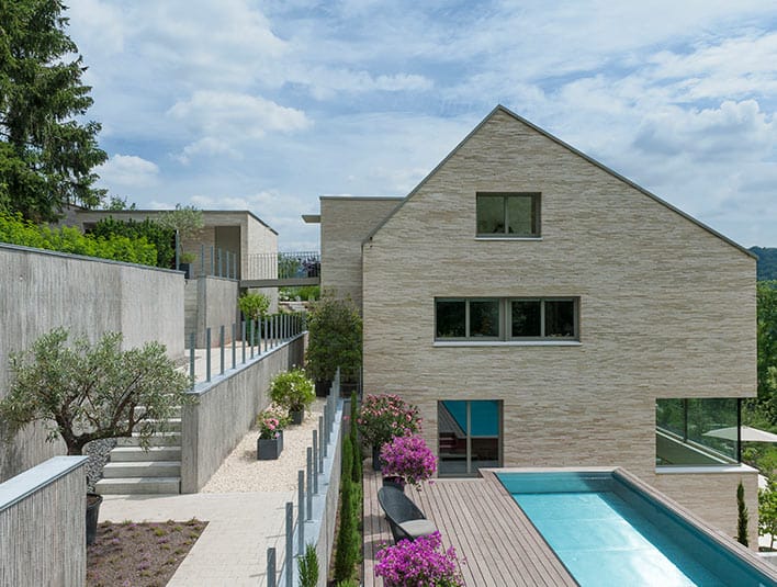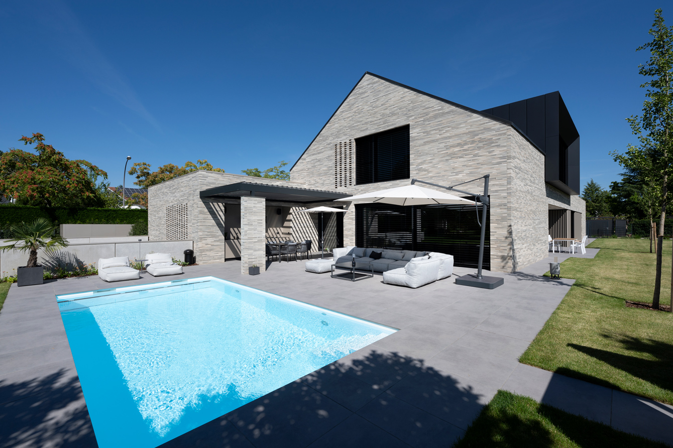 The sand-coloured diversity of RT 154 Ultima is quite the perfect fit – from the front as well as the pool-site of the house.
