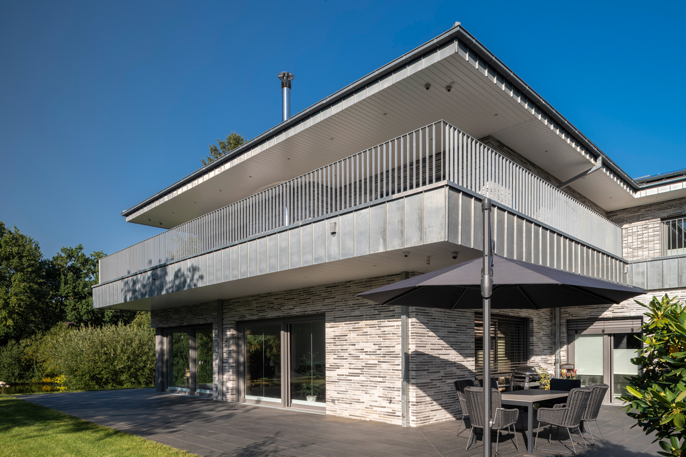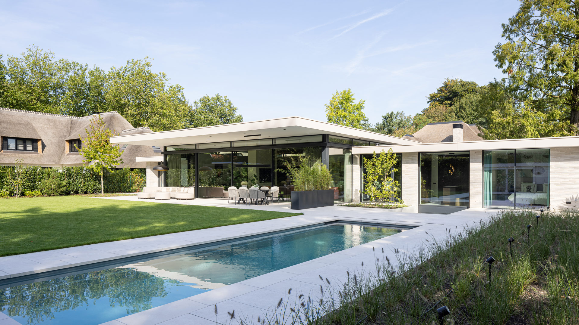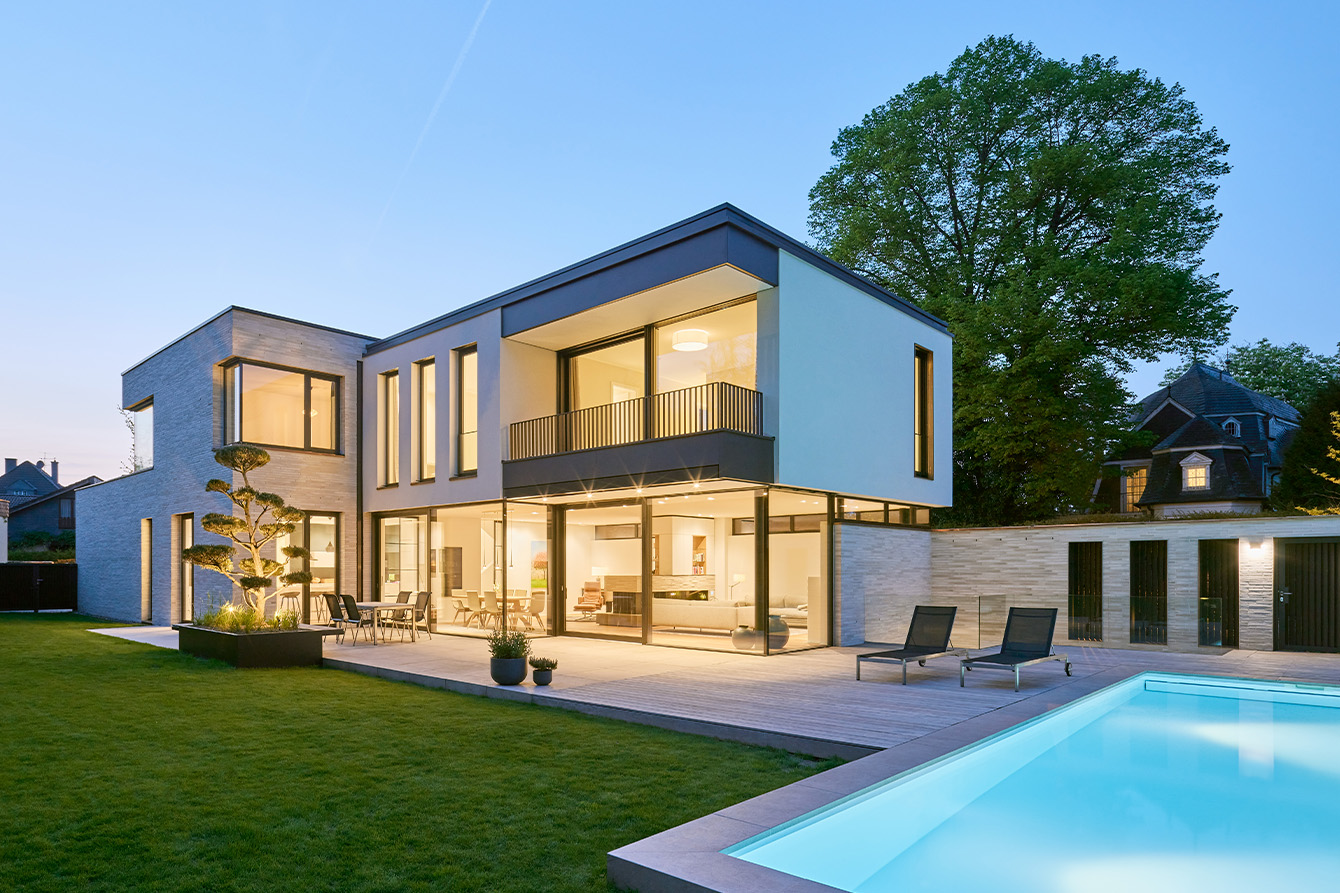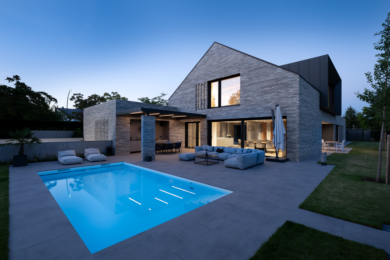 The sand-coloured diversity of RT 154 Ultima is quite the perfect fit – from the front as well as the pool-site of the house.