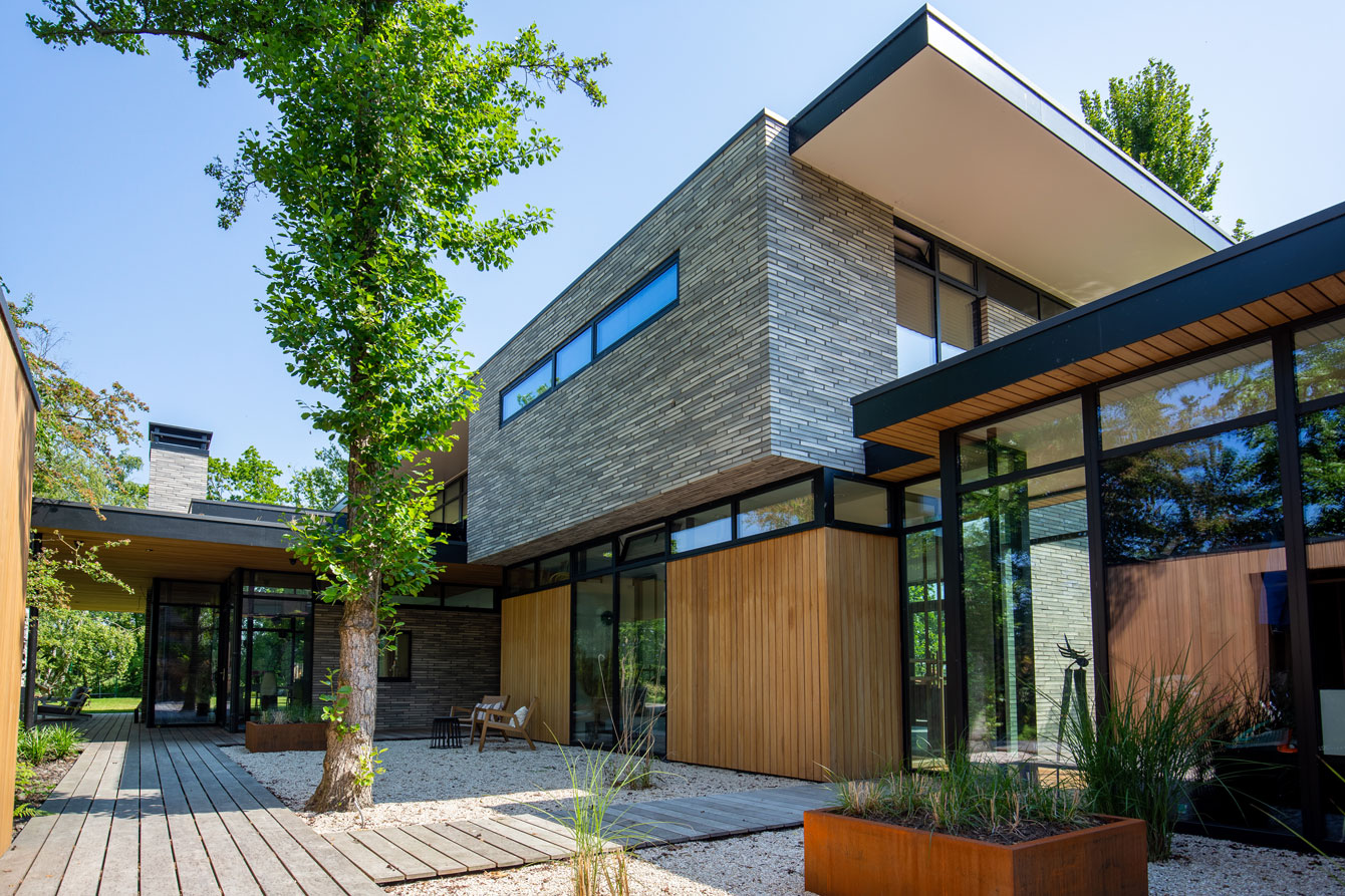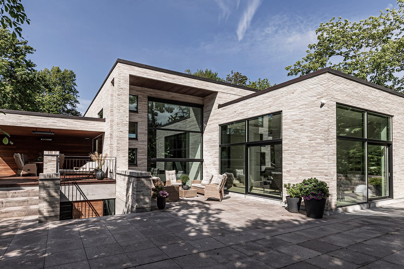 With its location in the woods, the dark-tinted quality materials and a floor plan that sparks curiosity, this Canadian villa is a home out of the ordinary. The Ultima RT 161 plays a distinguished part in the project. The waterstruck black and brown nuances with warm bronzed highlights are the perfect complement to the surrounding nature as well as the simple and elegant interior design.