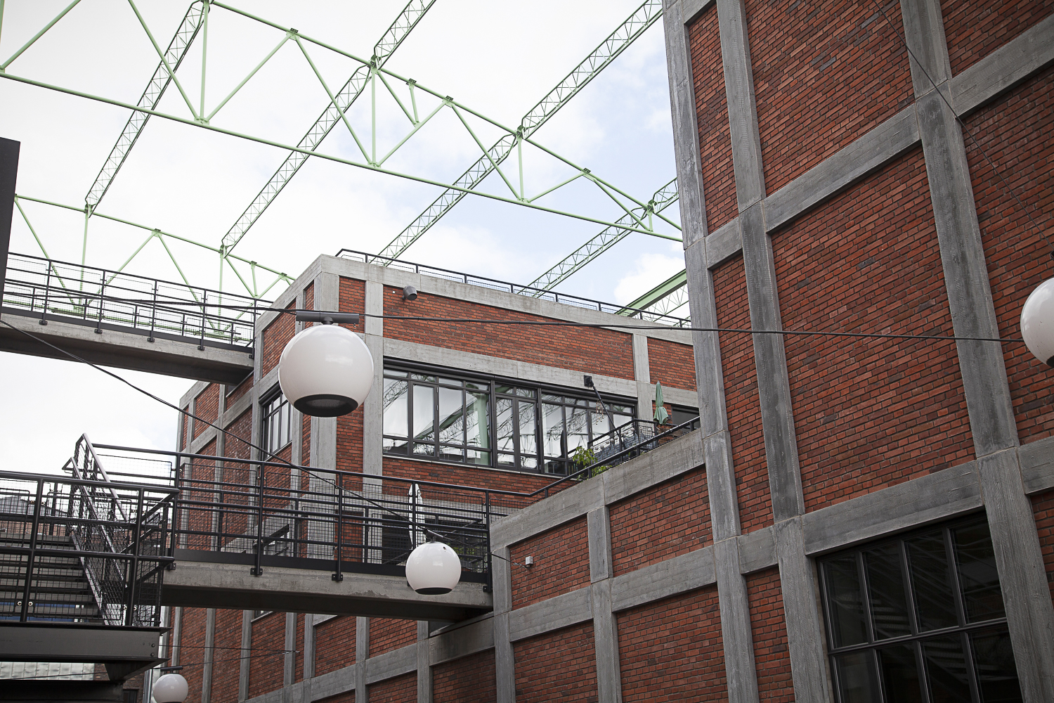This award-winning design consists of three sculptural office buildings, that forms a cohesive architectural complex with the shared philosophy to maximize light. At ground level a communal entrance with reception and cafeteria welcomes users with a huge wide-open space, while crisscrossing transparent bridges connect each of the three office blocks.