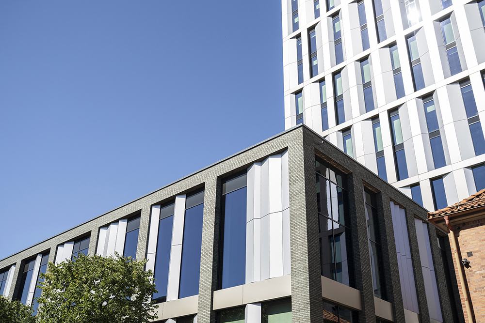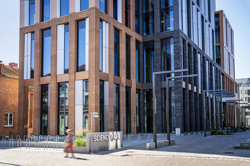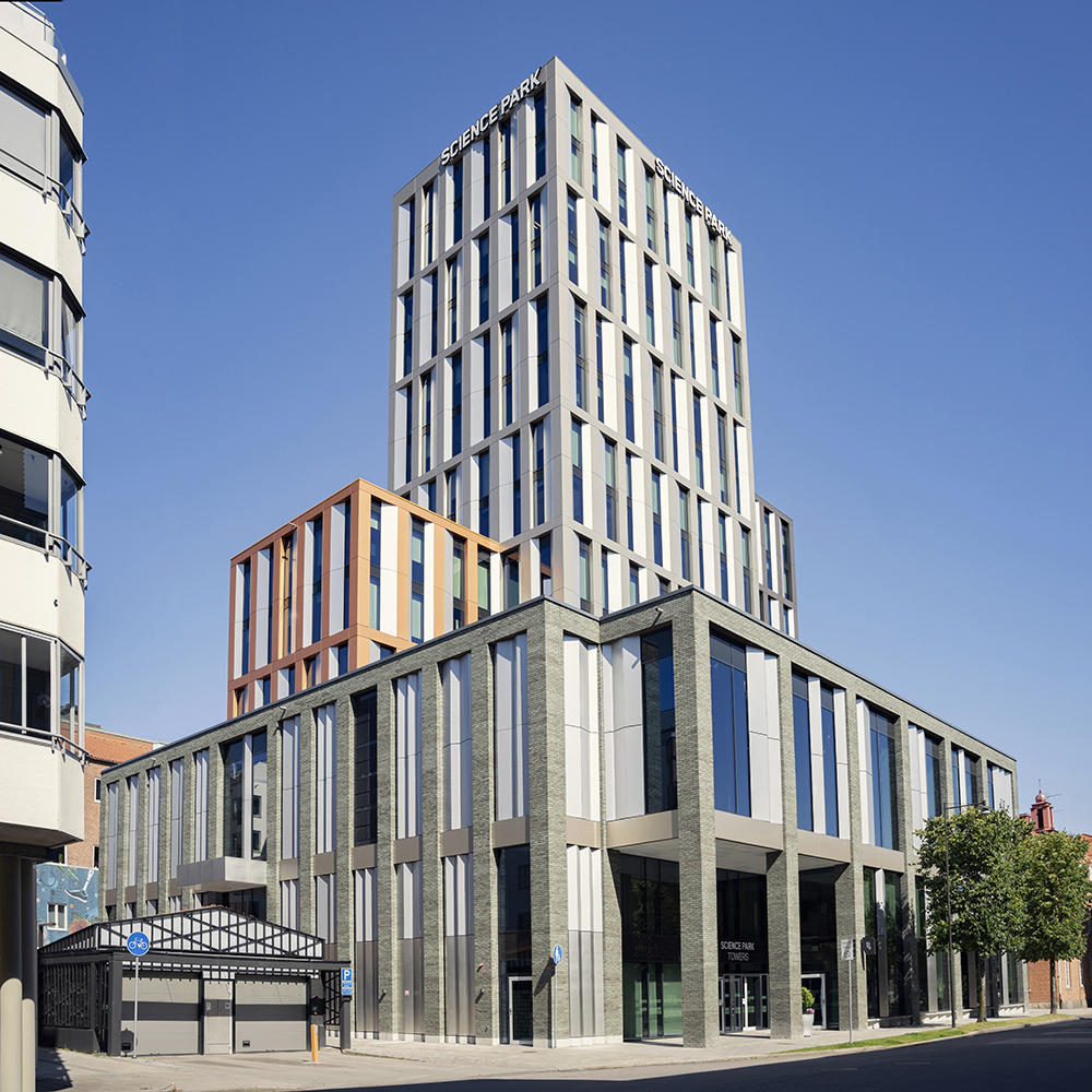 Science Park Towers samspelar med- och tar sin utgångspunkt i tegelbebyggelsen i området och är ett landmärke som syns från flera platser runt om i staden. Teglets kulör vidareförs i tornens skivbeklädnad av aluminiumkomposit. Fasadens djup skapar en tydlig och gedigen karaktär som skapar ett intressant skuggspel.