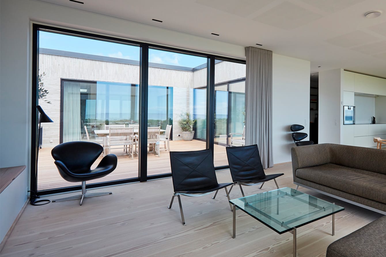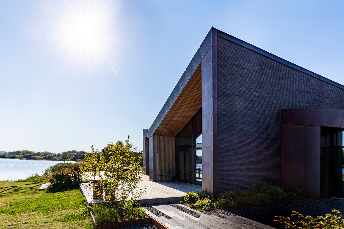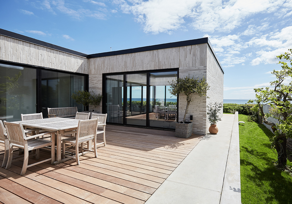 North of the charming Danish city Aarhus, a unique villa overlooks the bay. This contemporary gem is oriented towards the sea, not only in its location – but in every architectural decision.