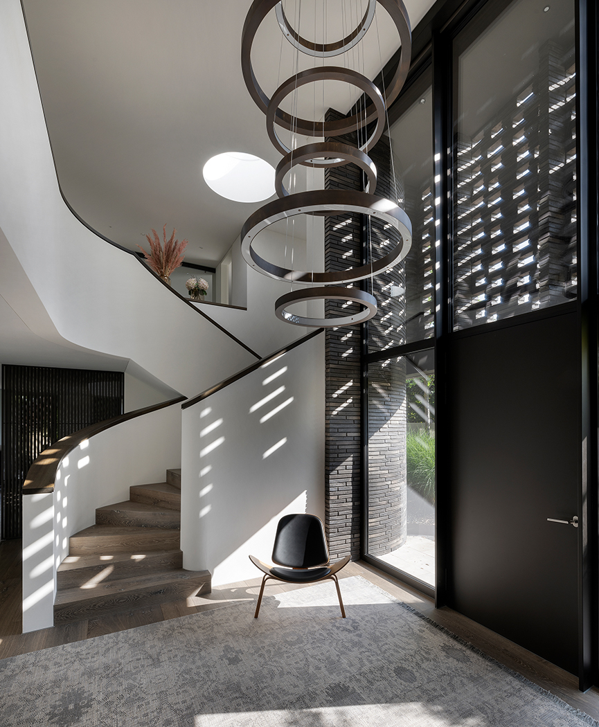 The many large window selections combined with the owner’s choice of materials and colours results in a significant house and a home with a light feel.