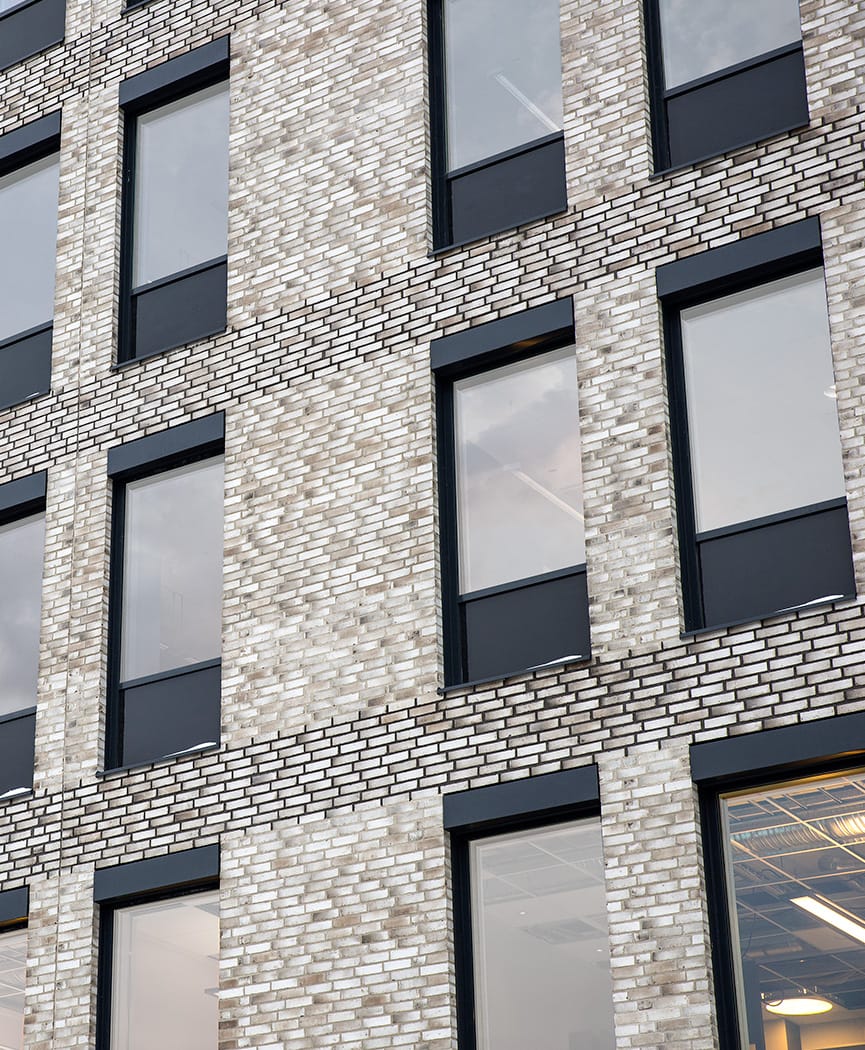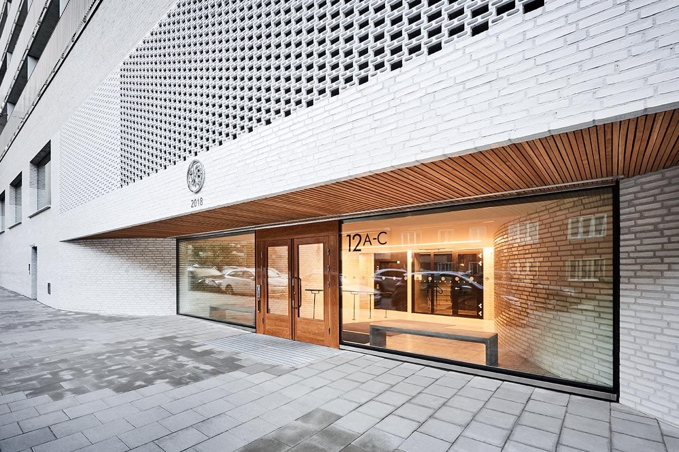This flexible and modern office building integrates one of Oslo’s main shopping districts into its purpose. The transparent ground floor is framed by an Ultima-brick facade with ceiling-high window sections of varying widths that add life and dynamism to the facade.