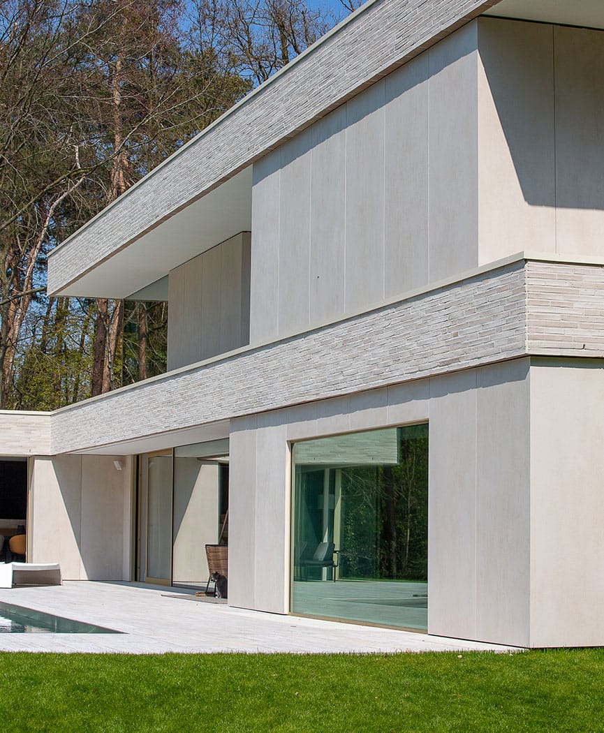 A combination of vertical and horizontal bonds offer a special welcome to the villa. The extra-long Ultima bricks do not only lend the house character, they also intensify the horizon behind the house.
