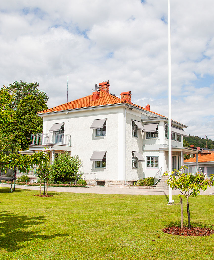 Among tree roses and green plantings, the roof tiles on this wooden villa gives that classical and cosy house-style known throughout Sweden. Only here the natural vibes mostly found in rural Sweden are in a suburb to Stockholm.
