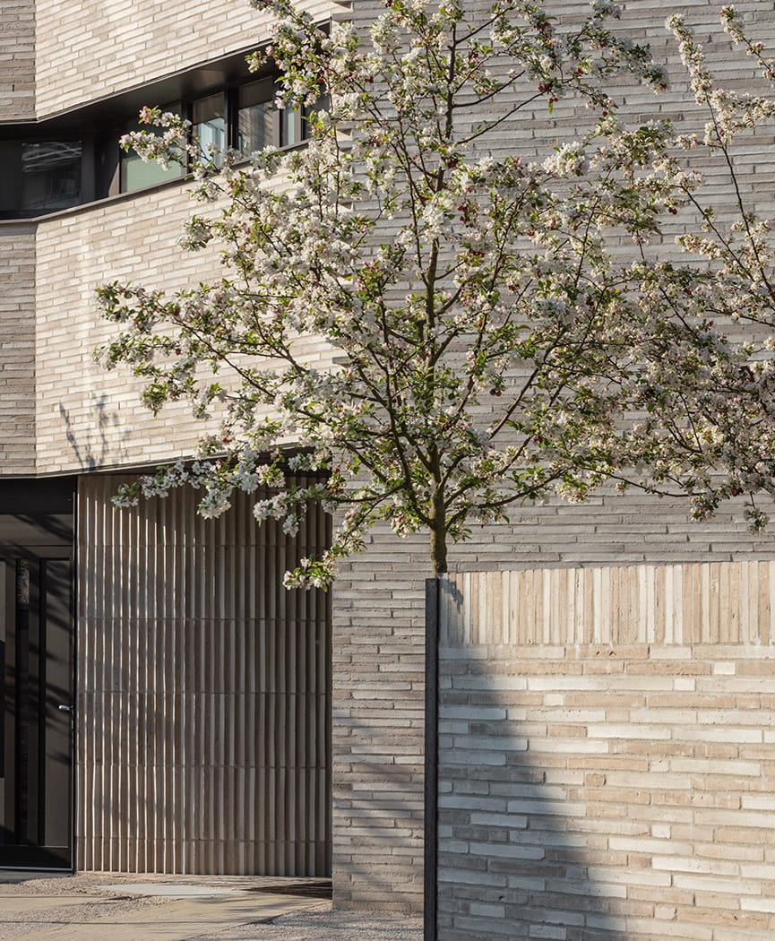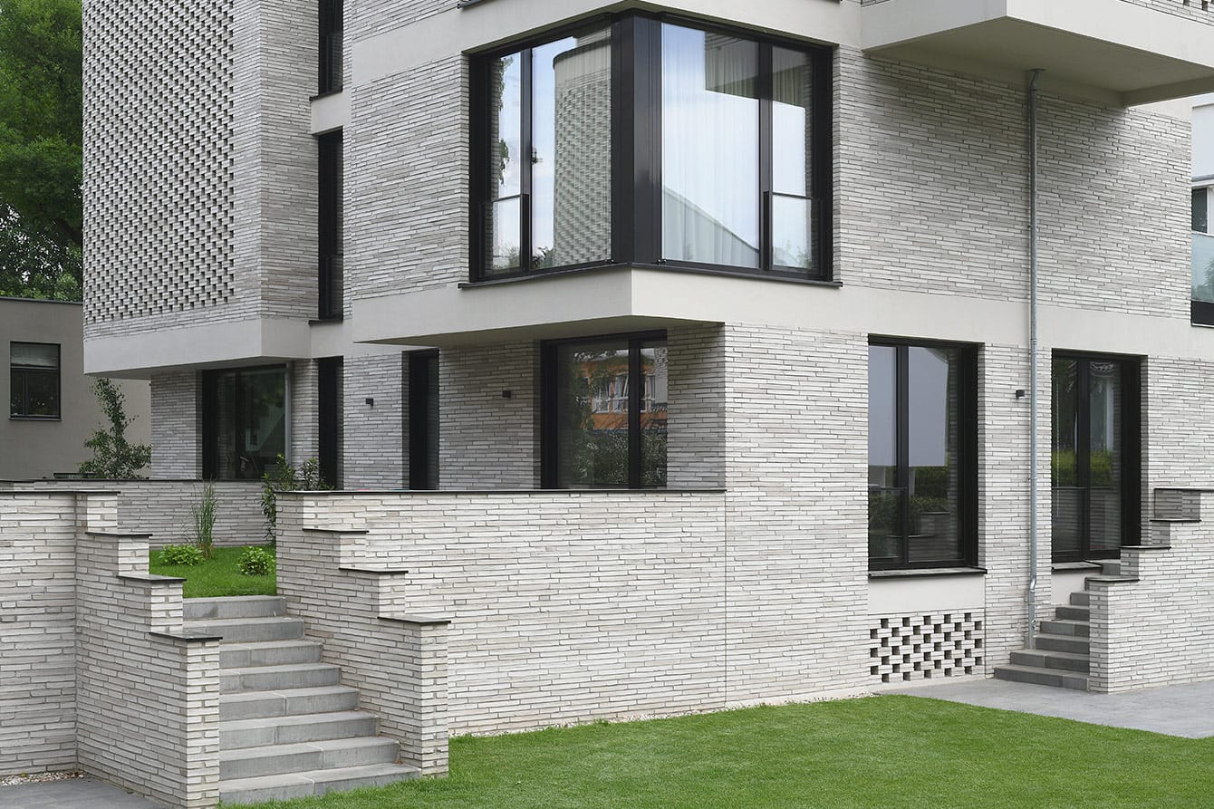 Residents and visitors of the building are welcomed by a stoic masonry with a generous canopy. The ground floor is clad in RT 153 – a detail that provides a robust and beautiful base for the prestigious and detailed building.