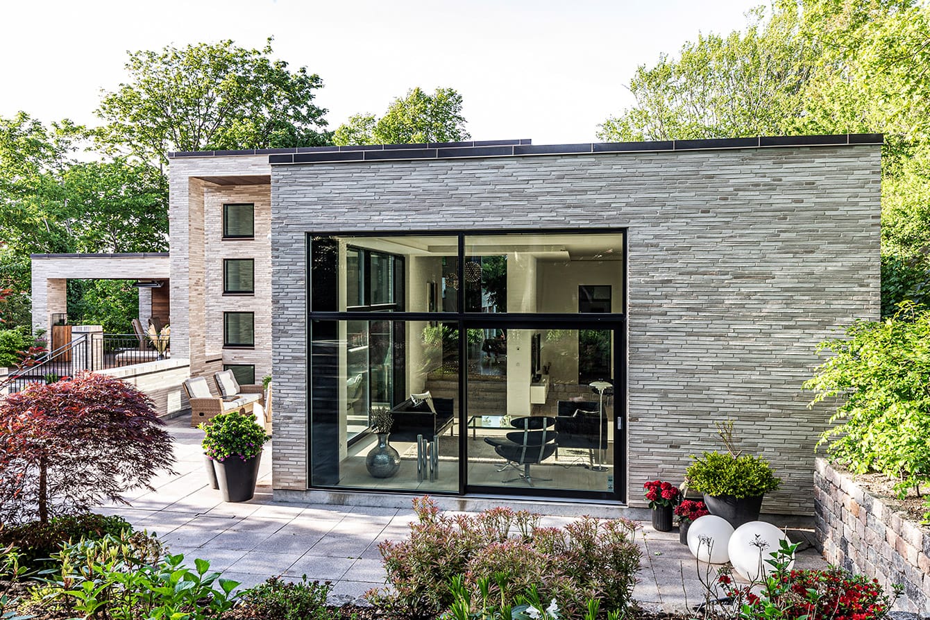 Far away from the everyday hustle, this high-end contemporary gem is hidden away in the woods. Featuring RT 150 Ultima Linear Bricks in vivid black.