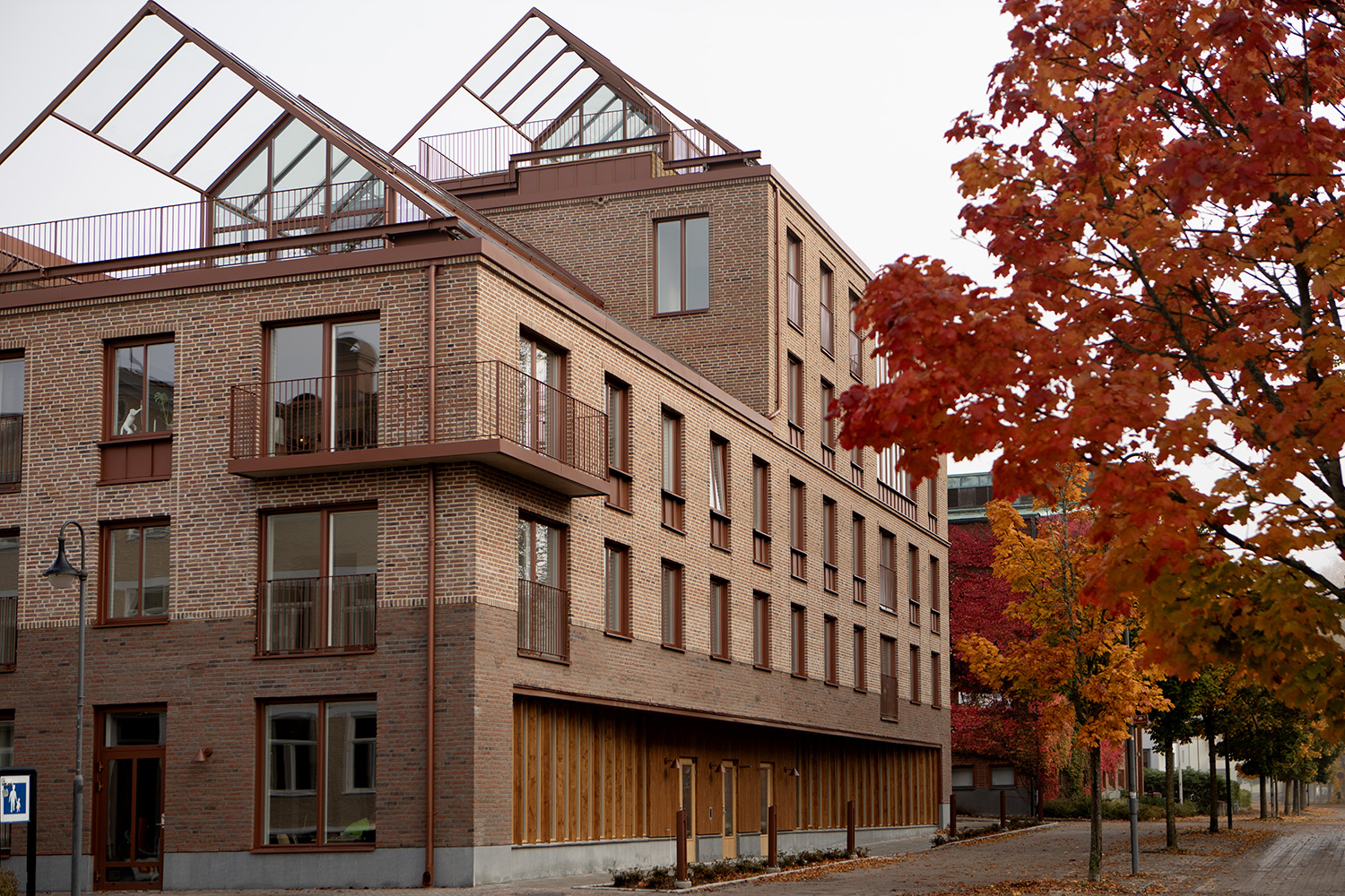 Choosing brick as a facade material has many advantages. We think that a brick facade gives a feeling that the houses are solid and lavish and that in turn gives a social sustainability. You want to both live in and preserve a solid building for future generations. In our Scandinavian climate, with its colour scale, which during large parts of the year goes in grey, brick is also a good choice of facade material as it with its colour scales blends well into the landscape and counteracts the "grey ash". This is very difficult to create with other facade materials such as concrete or sheet metal. Brick also becomes more beautiful over the years with its patina and lively expression, which it can take a hundred years to achieve.